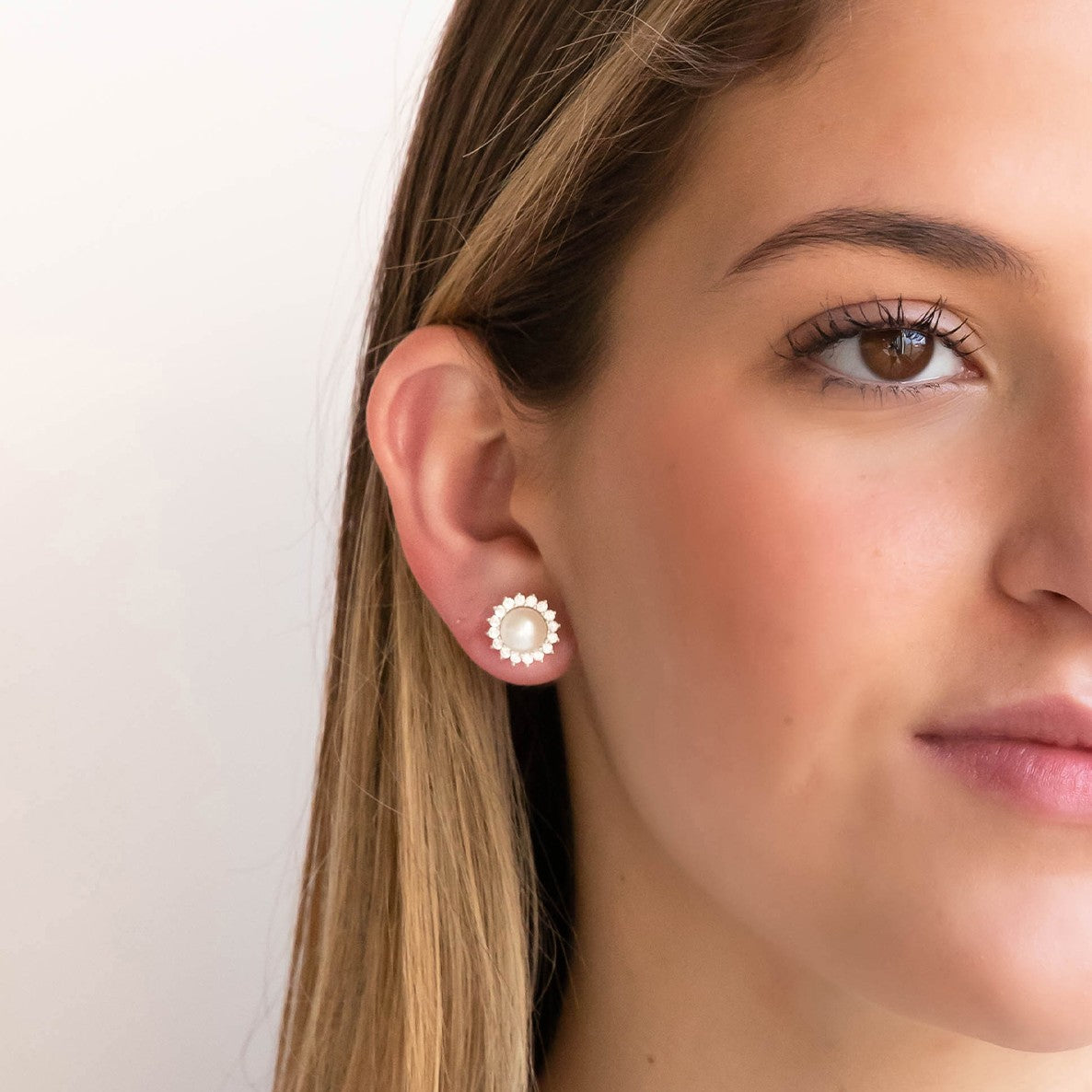 Blossom Freshwater Pearl & Diamond Studs in Silver