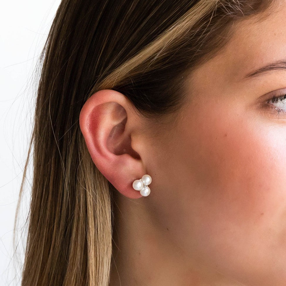 Trinity Freshwater Pearl & Diamond Studs in Silver