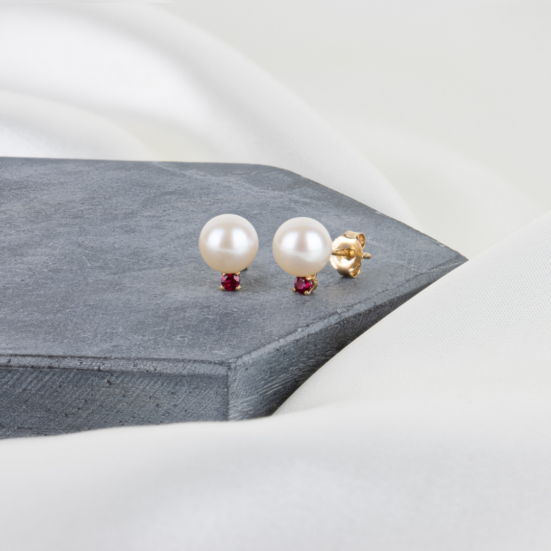 Freshwater Pearl Gemstone Stud in 14k Yellow Gold