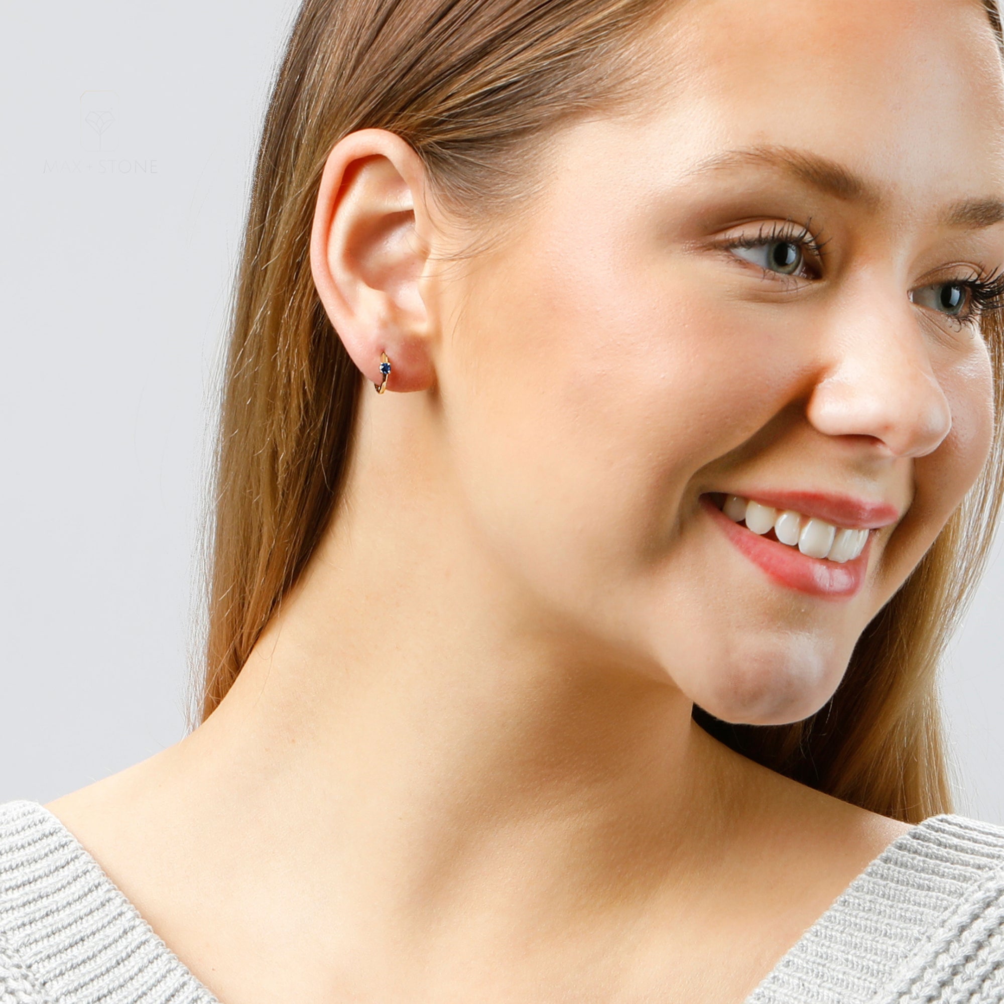 Celeste Diamond Gemstone Hoops in Sterling Silver
