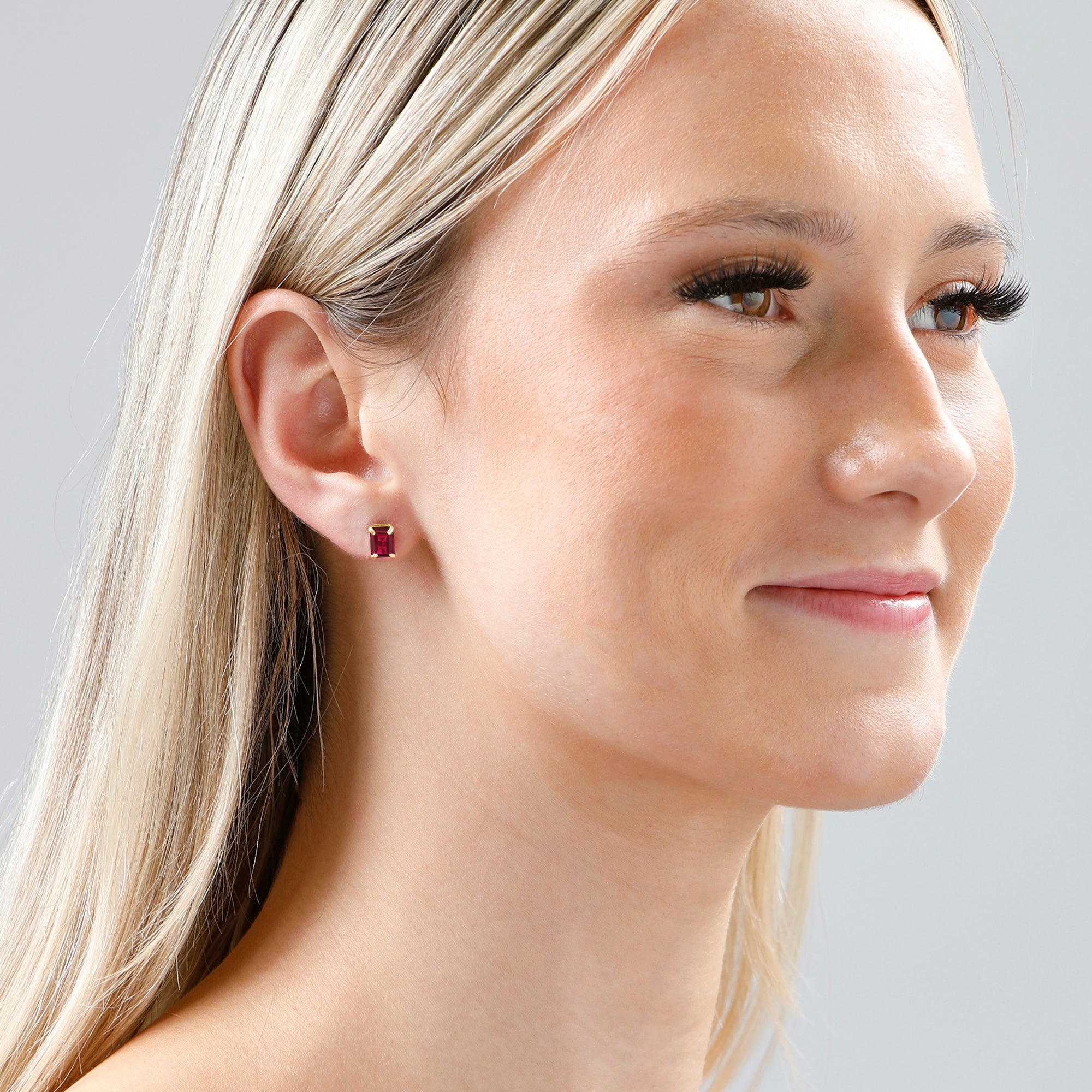 Emerald-Cut Solitaire Gemstone Studs in 14k Gold