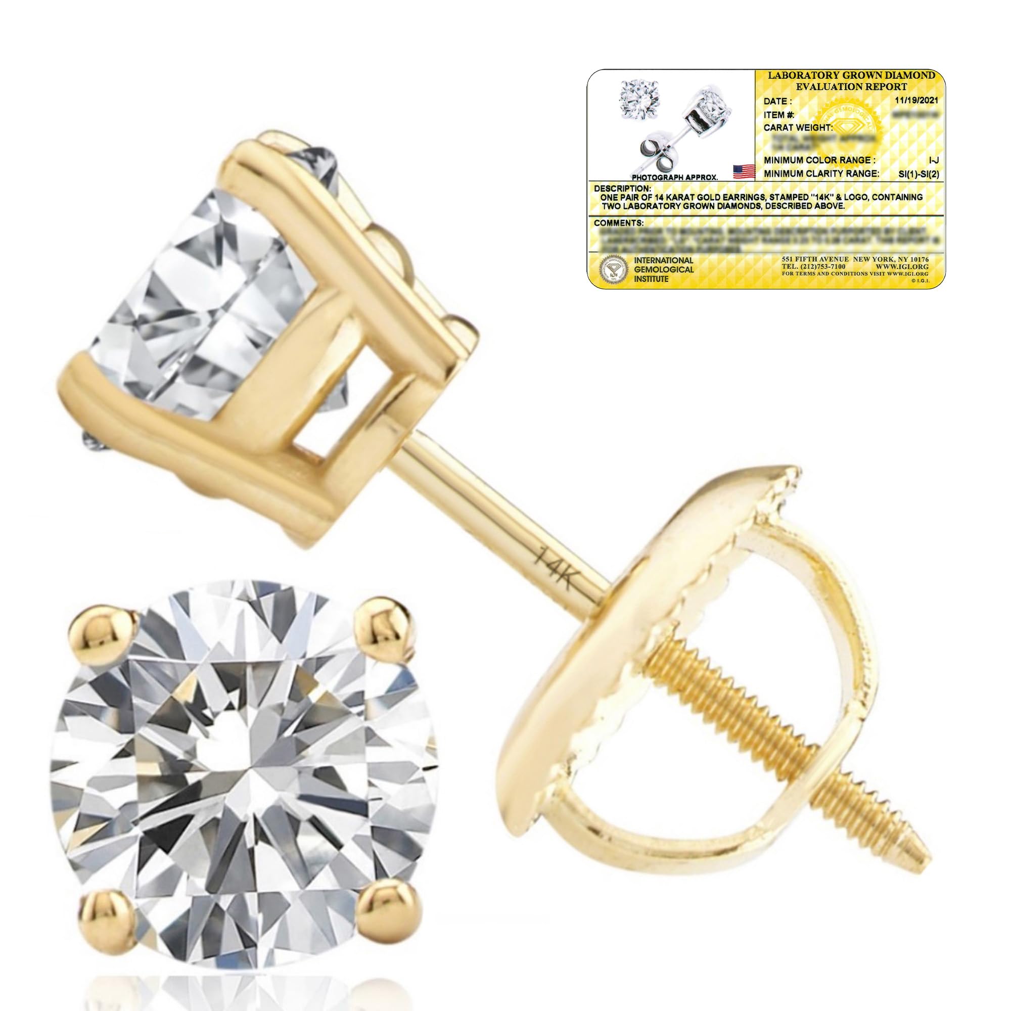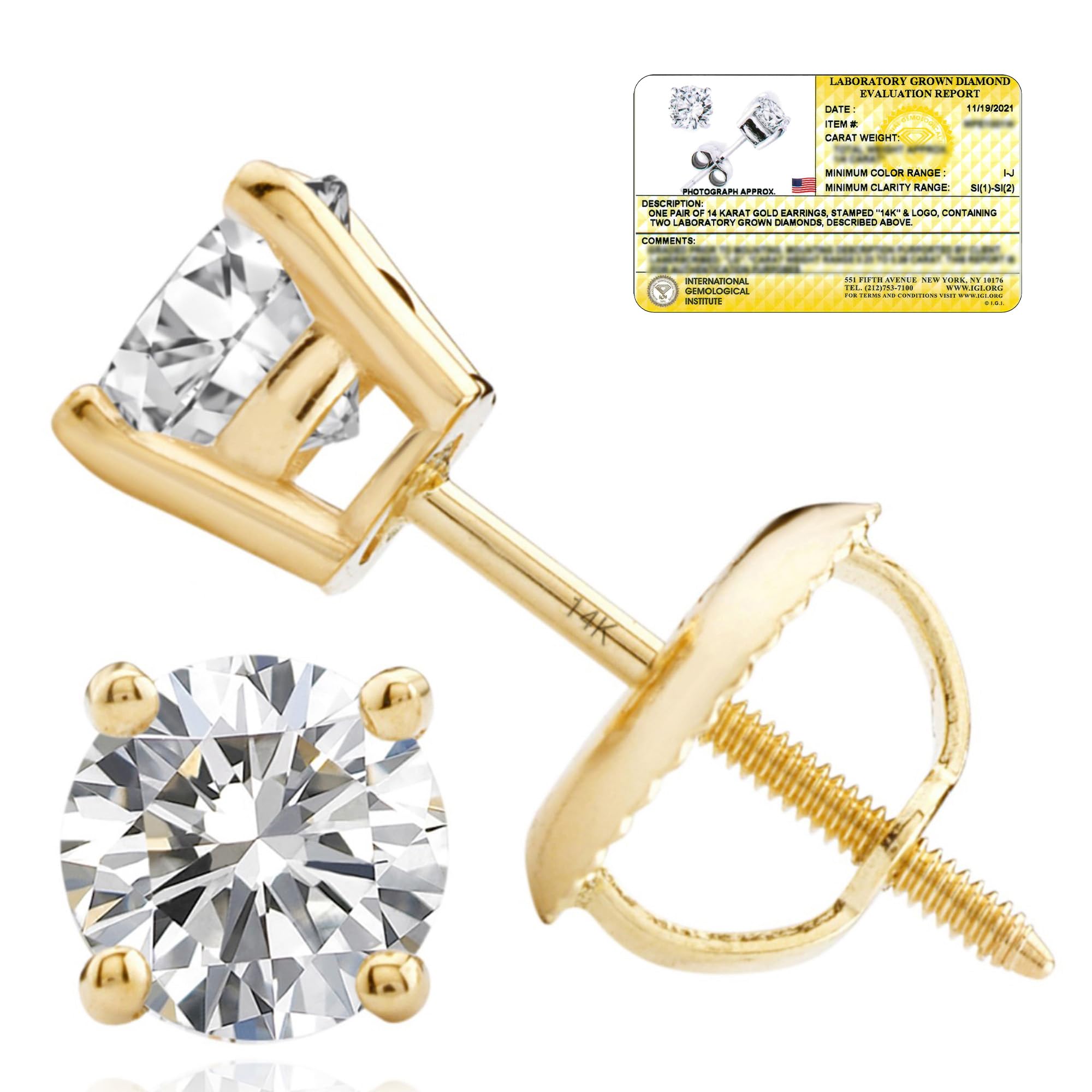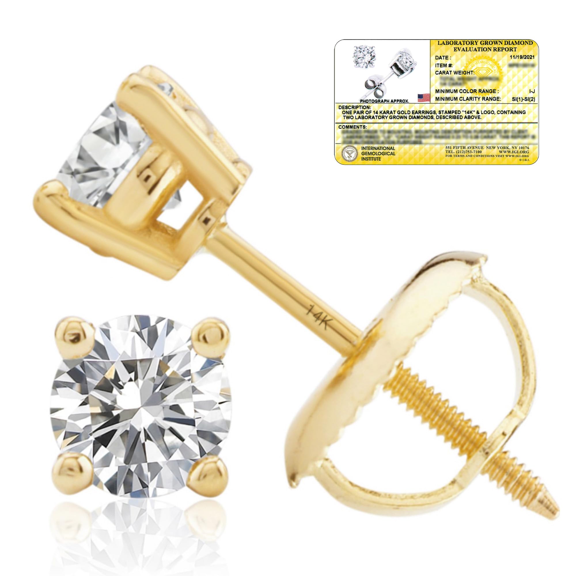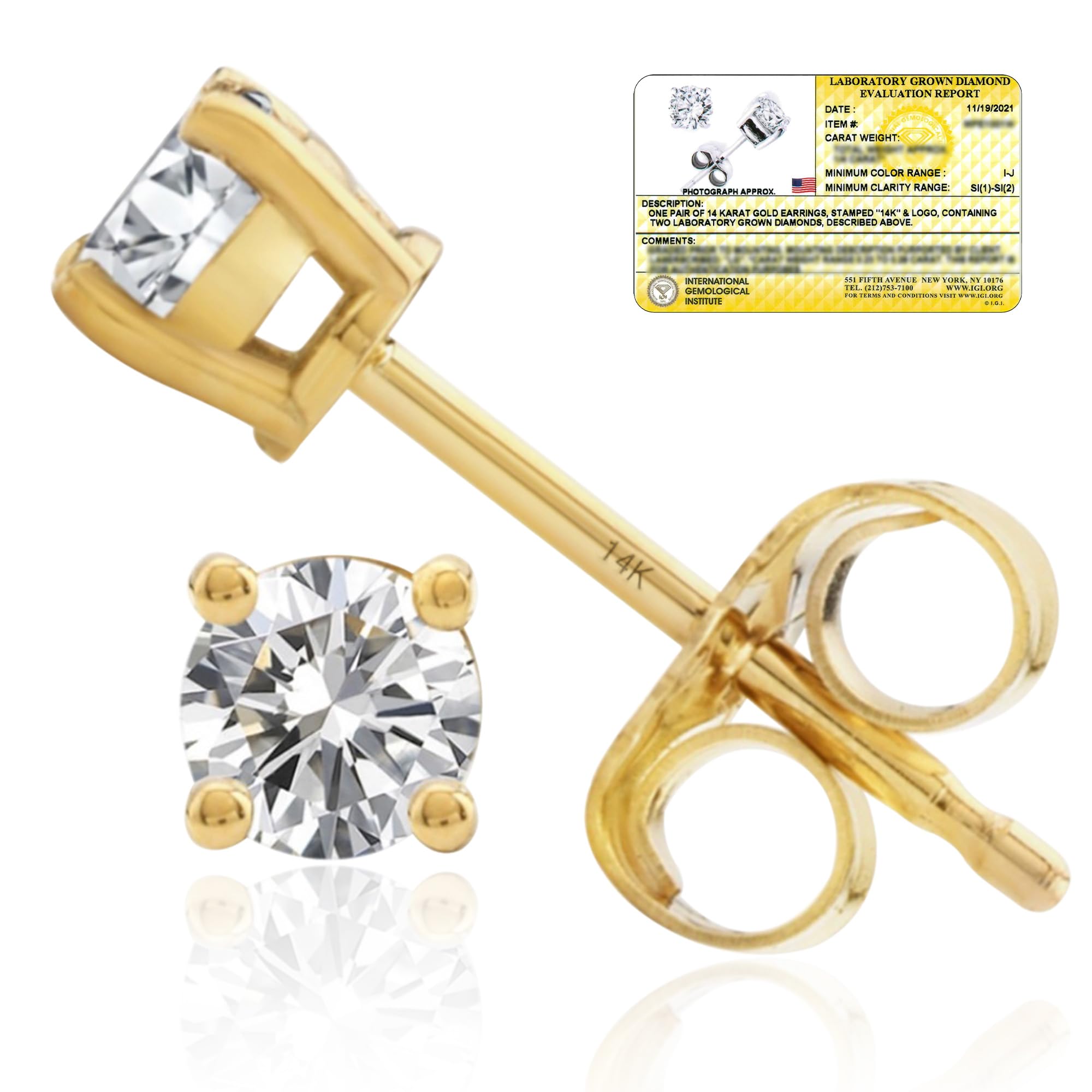 Everyday Solitaire Lab Diamond Studs in 14k Gold, IGI Certified