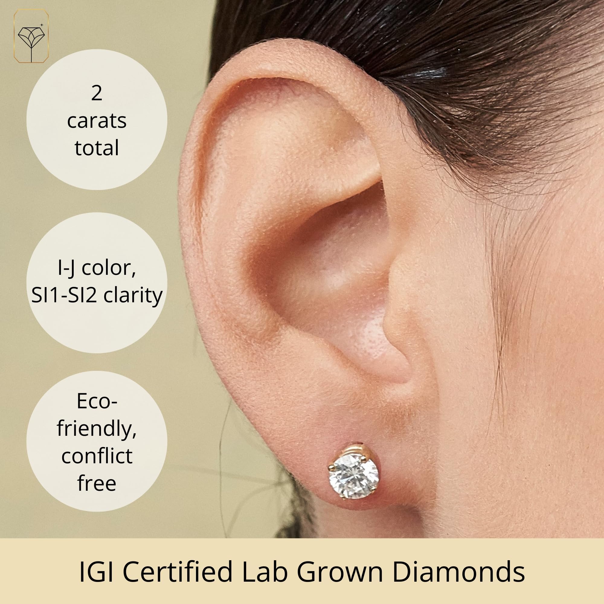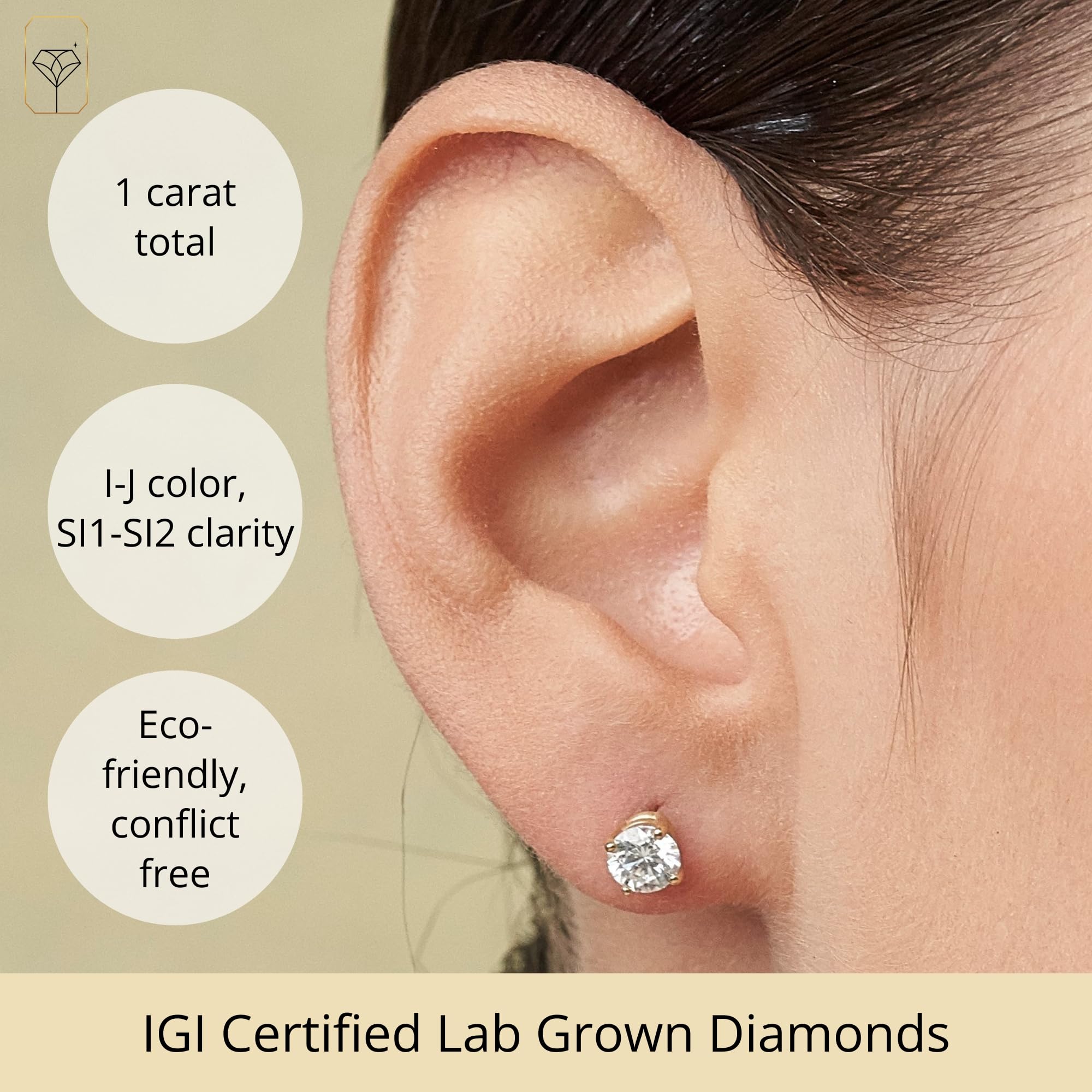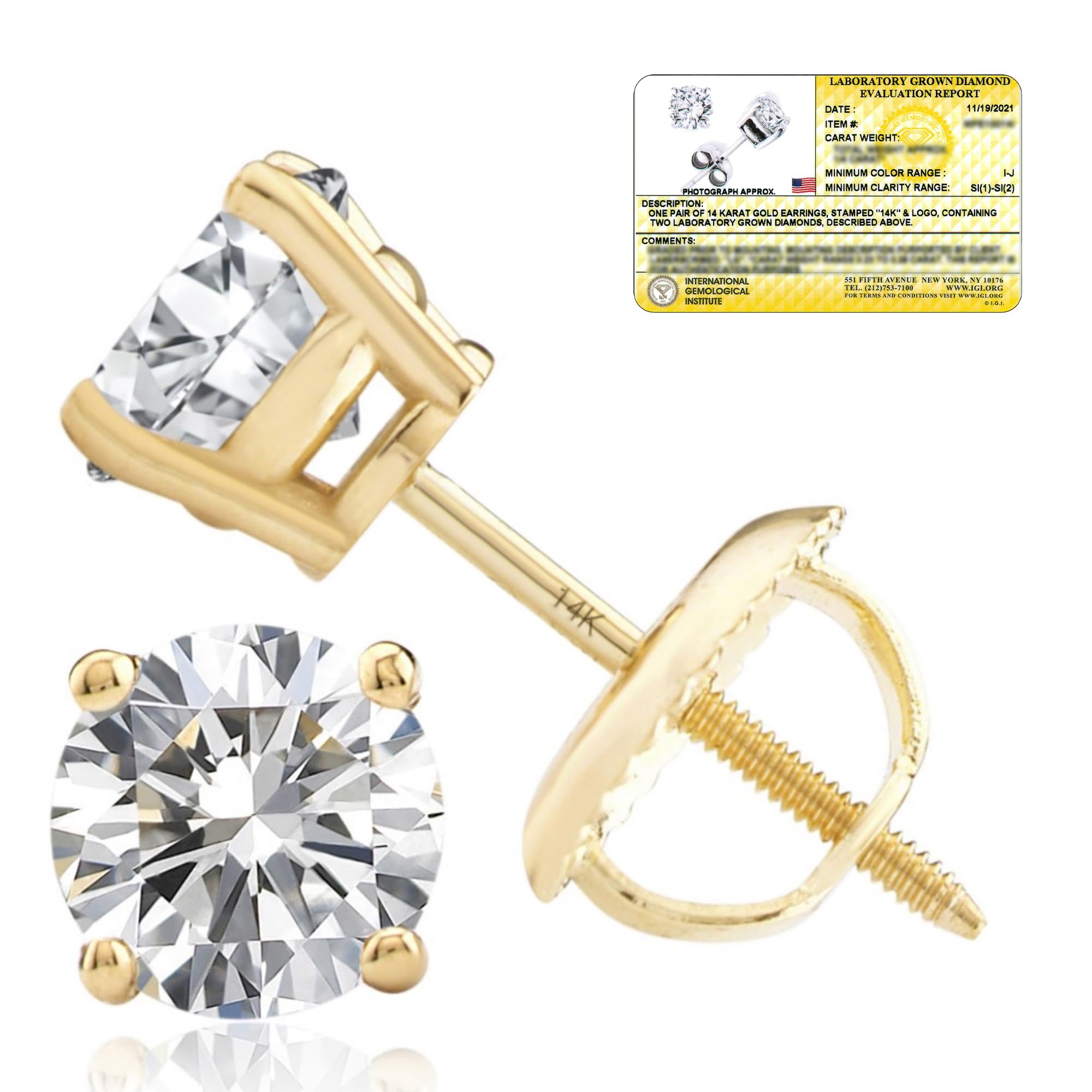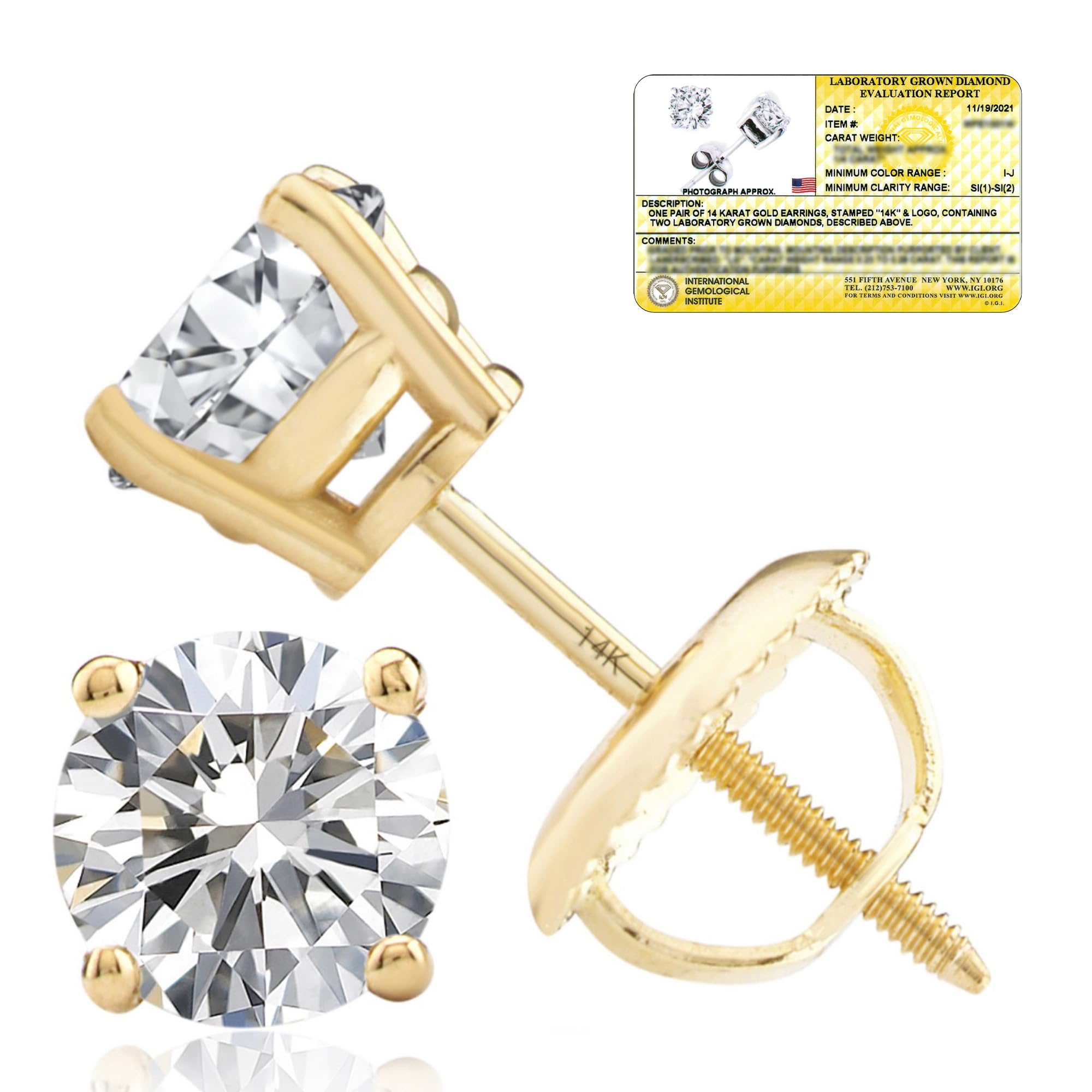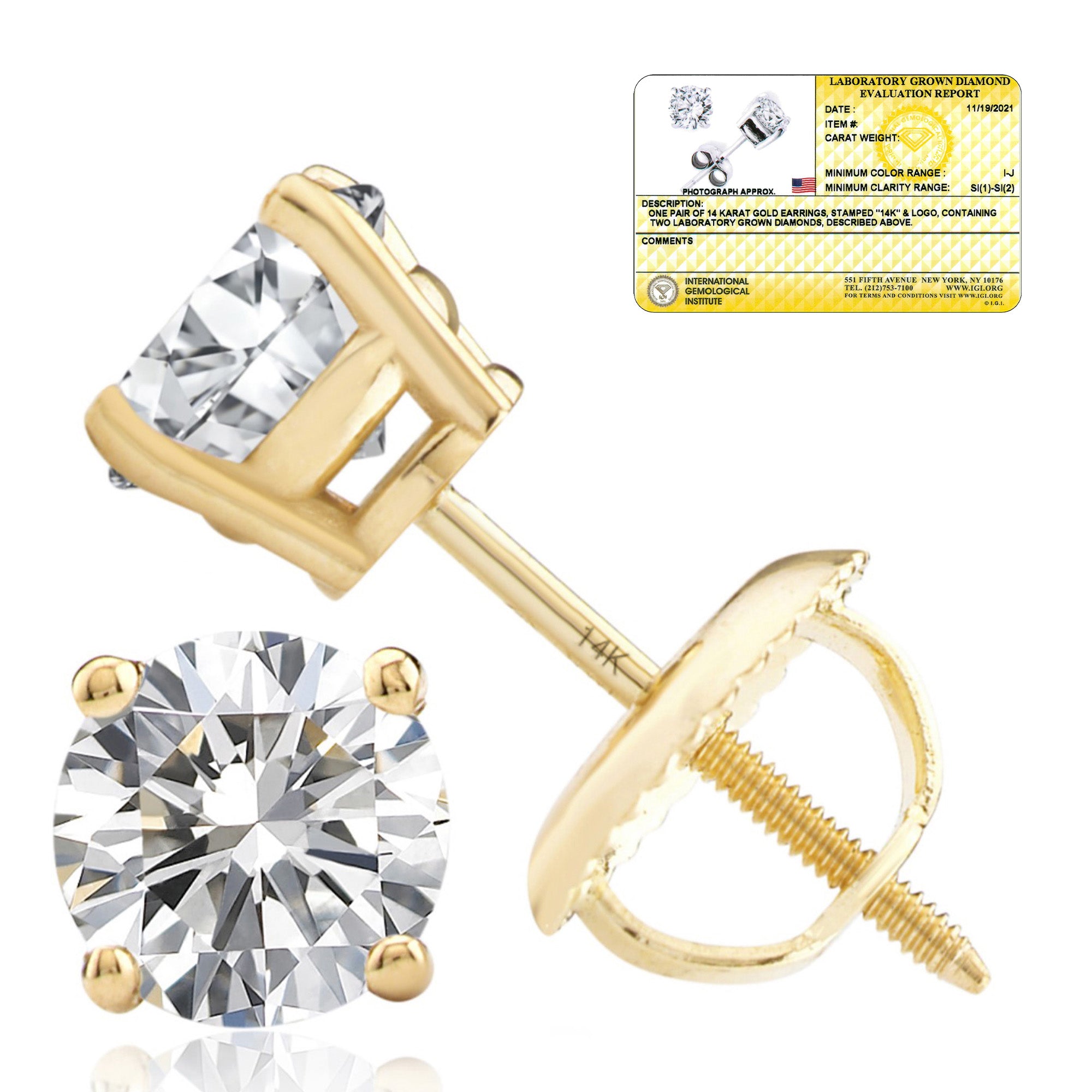 Everyday Solitaire Lab Diamond Studs in 14k Gold, IGI Certified