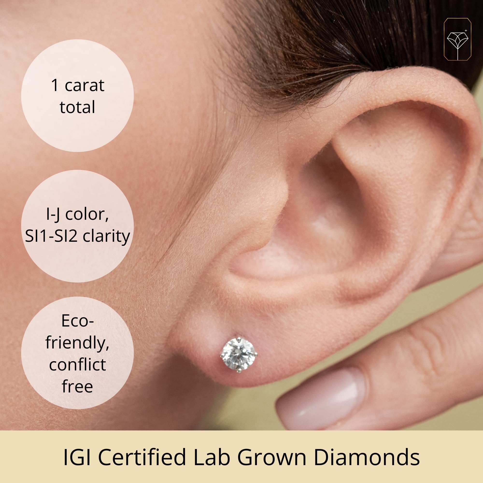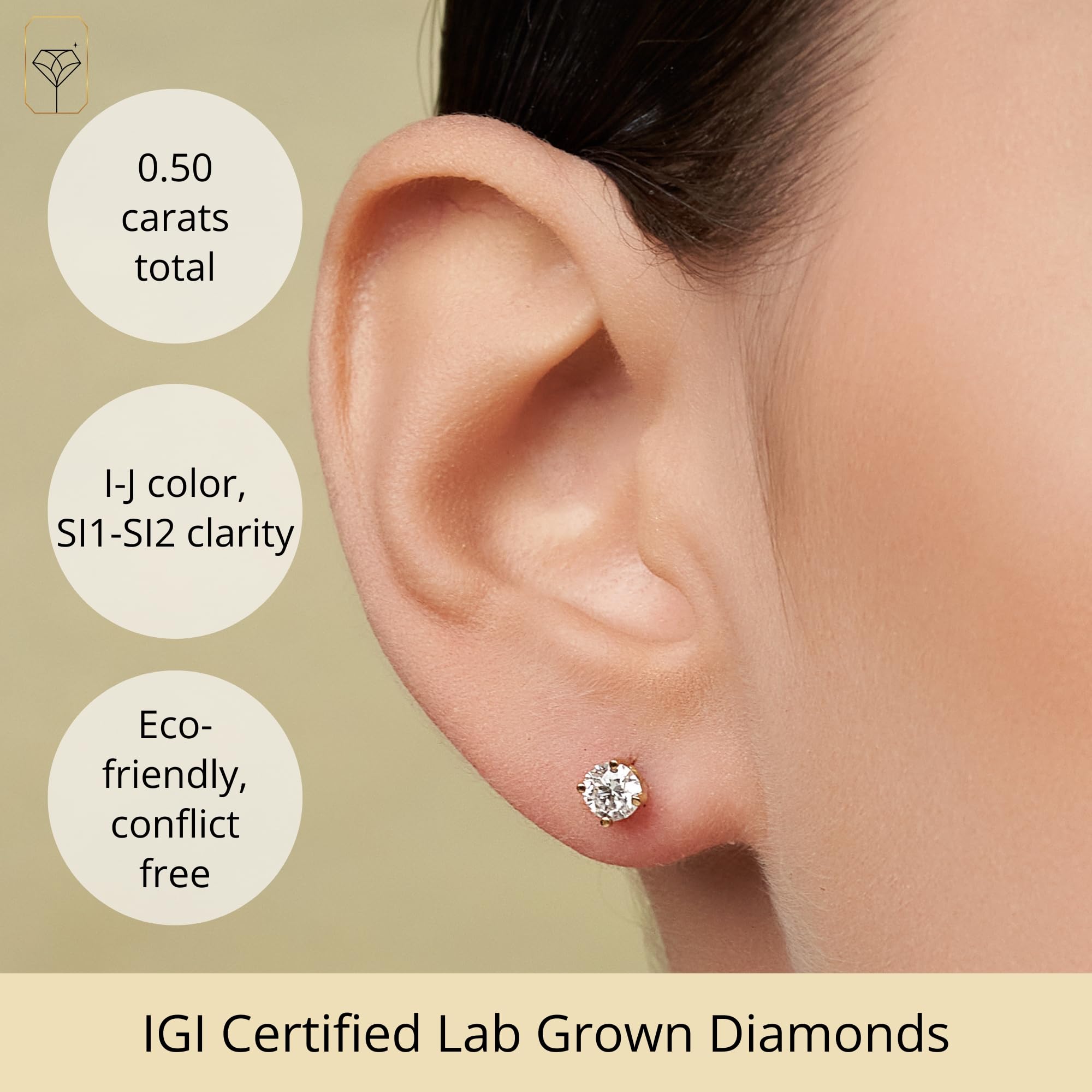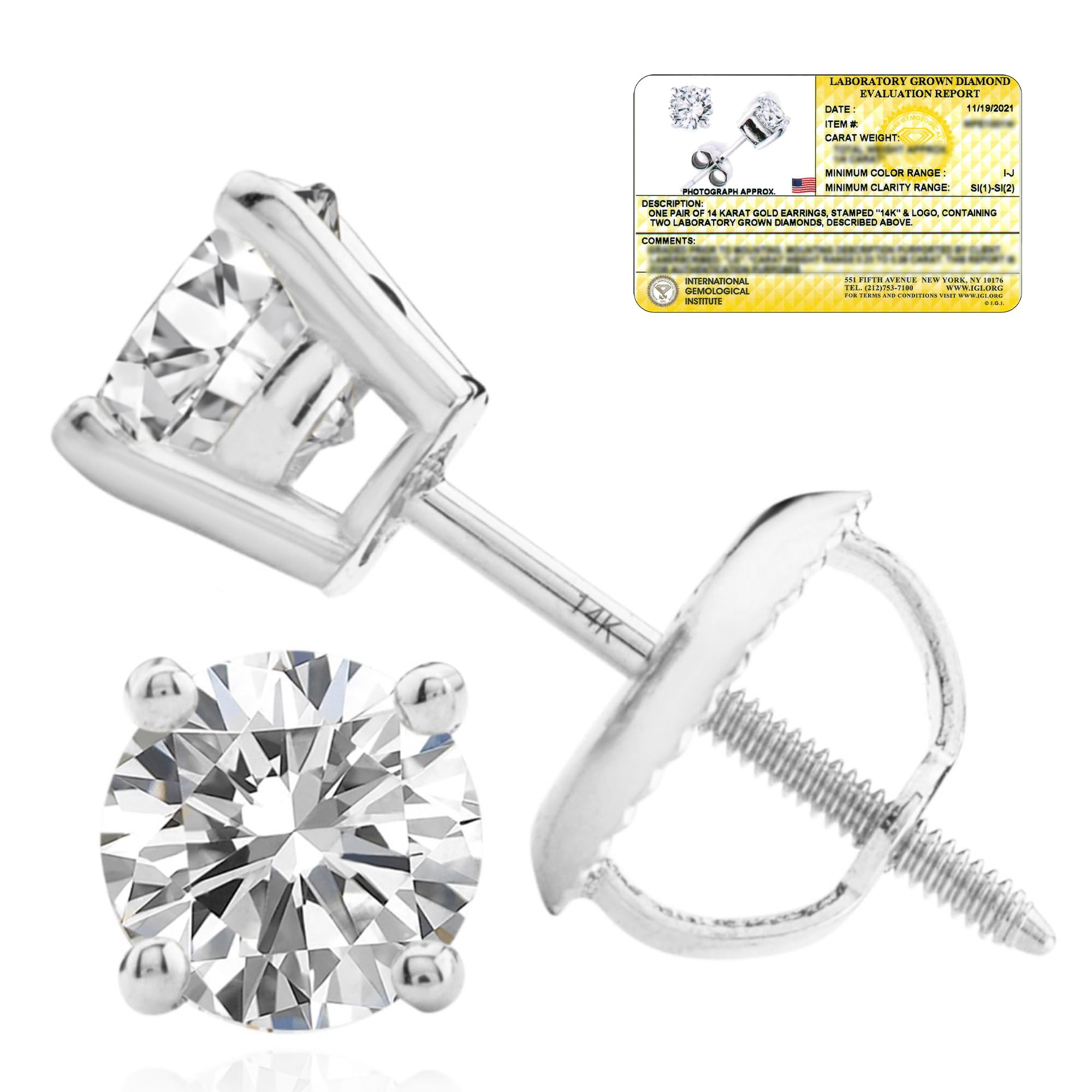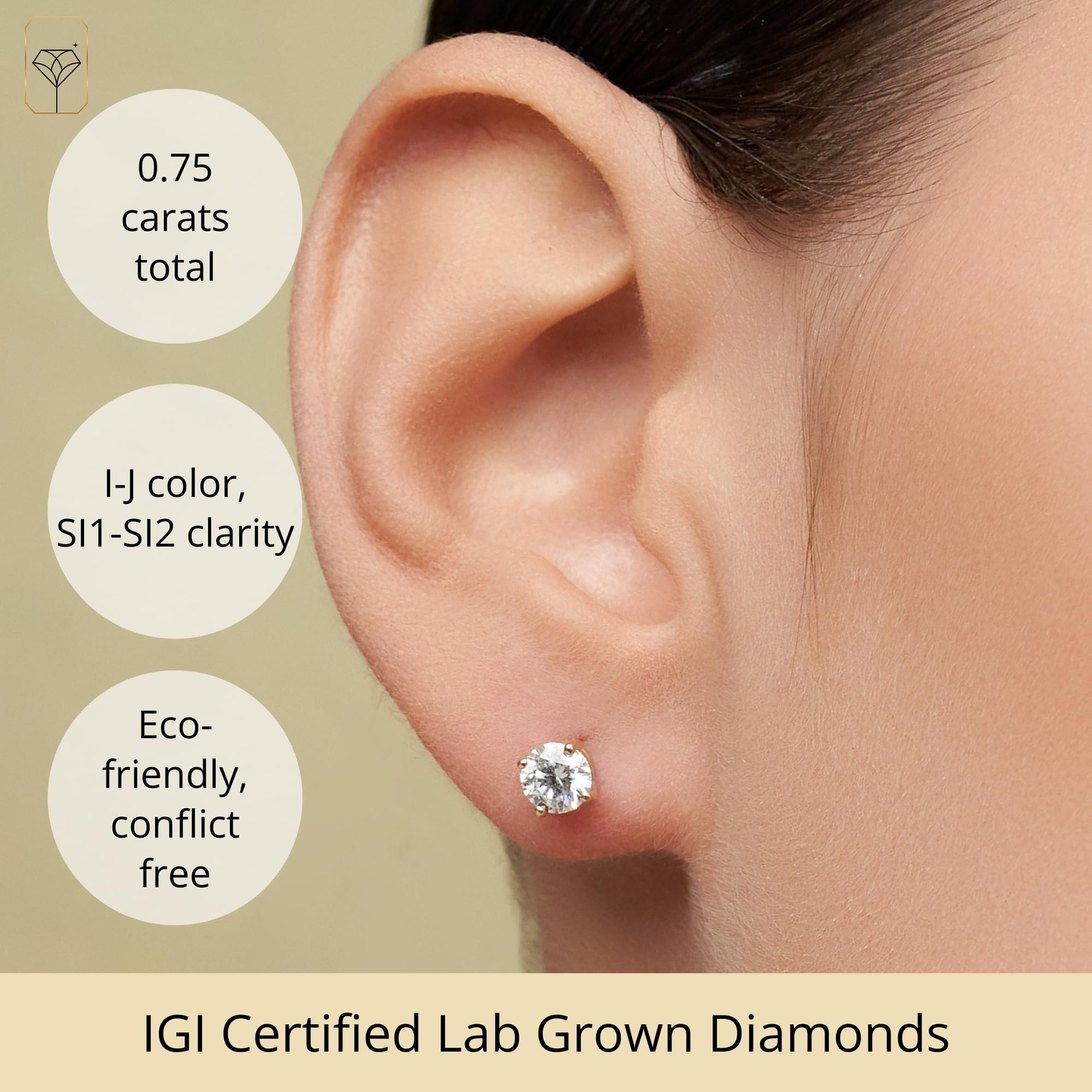 Everyday Solitaire Lab Diamond Studs in 14k Gold, IGI Certified