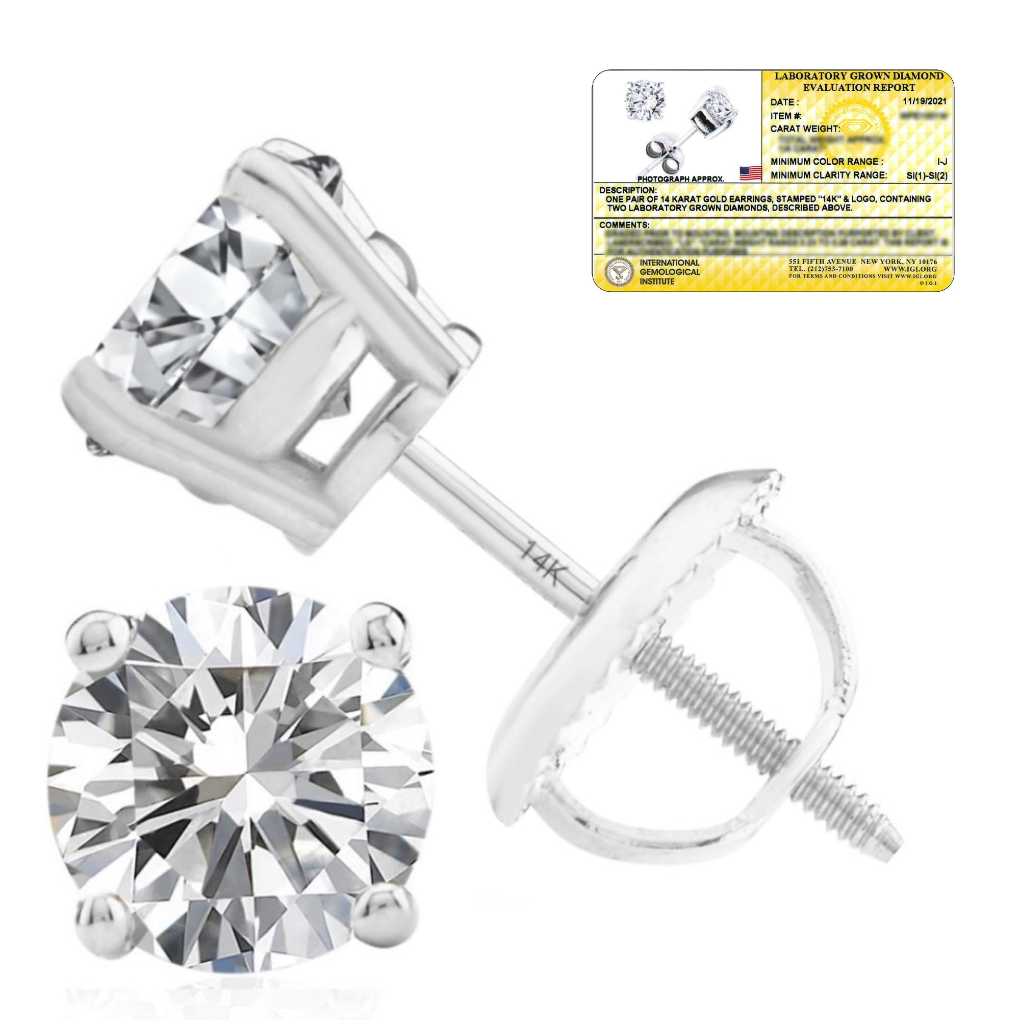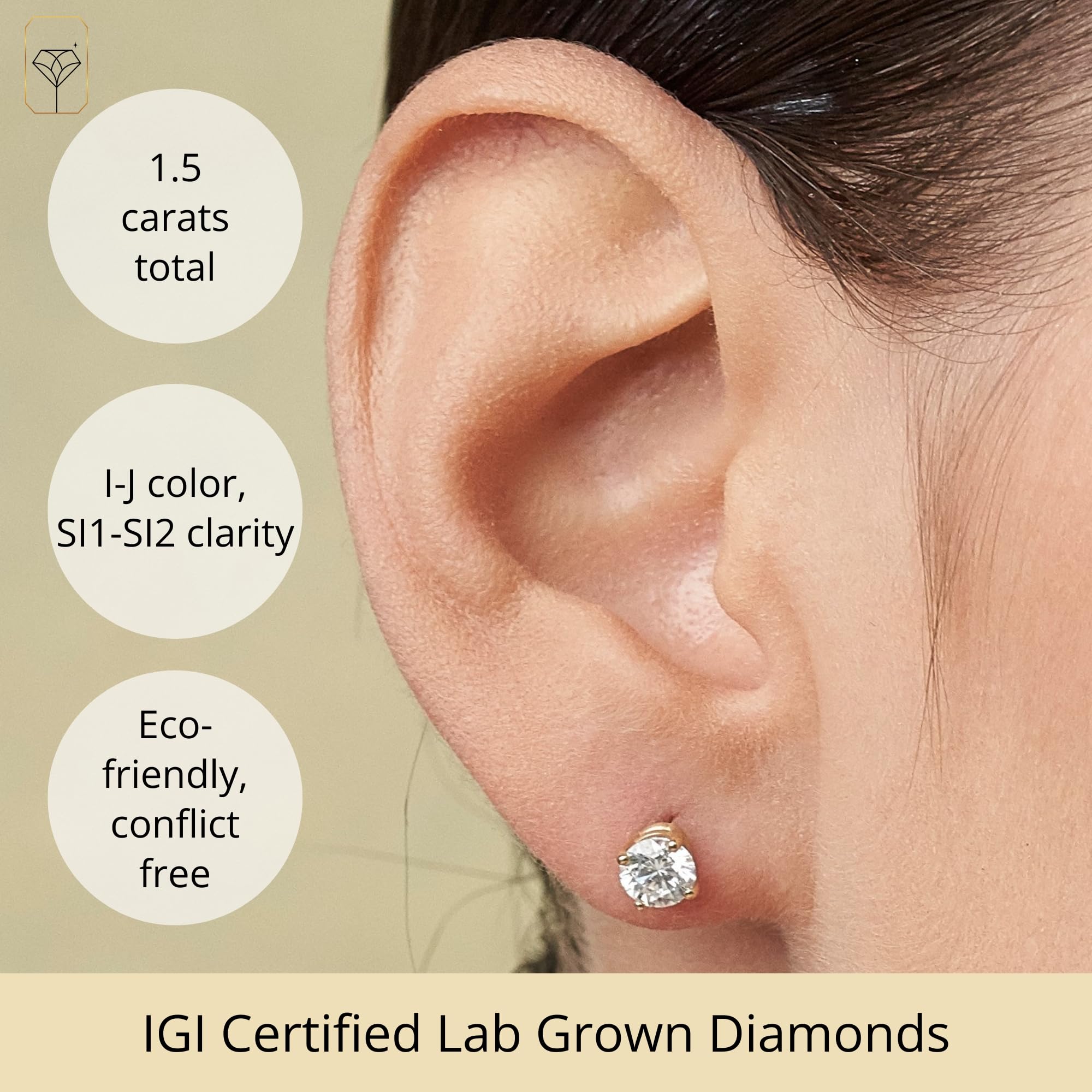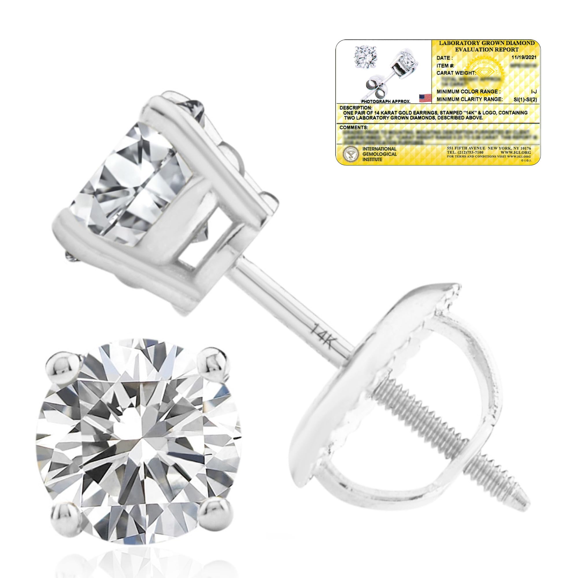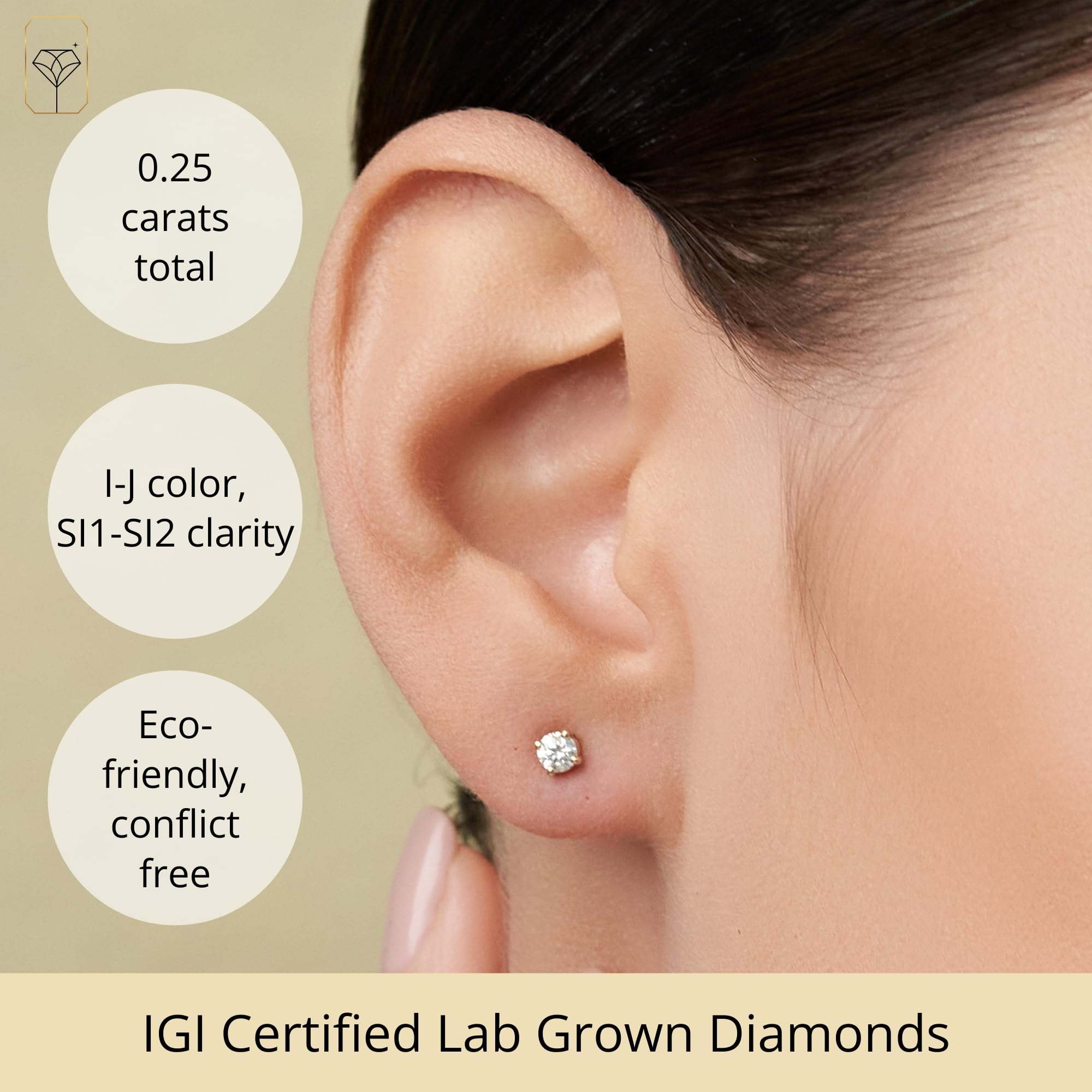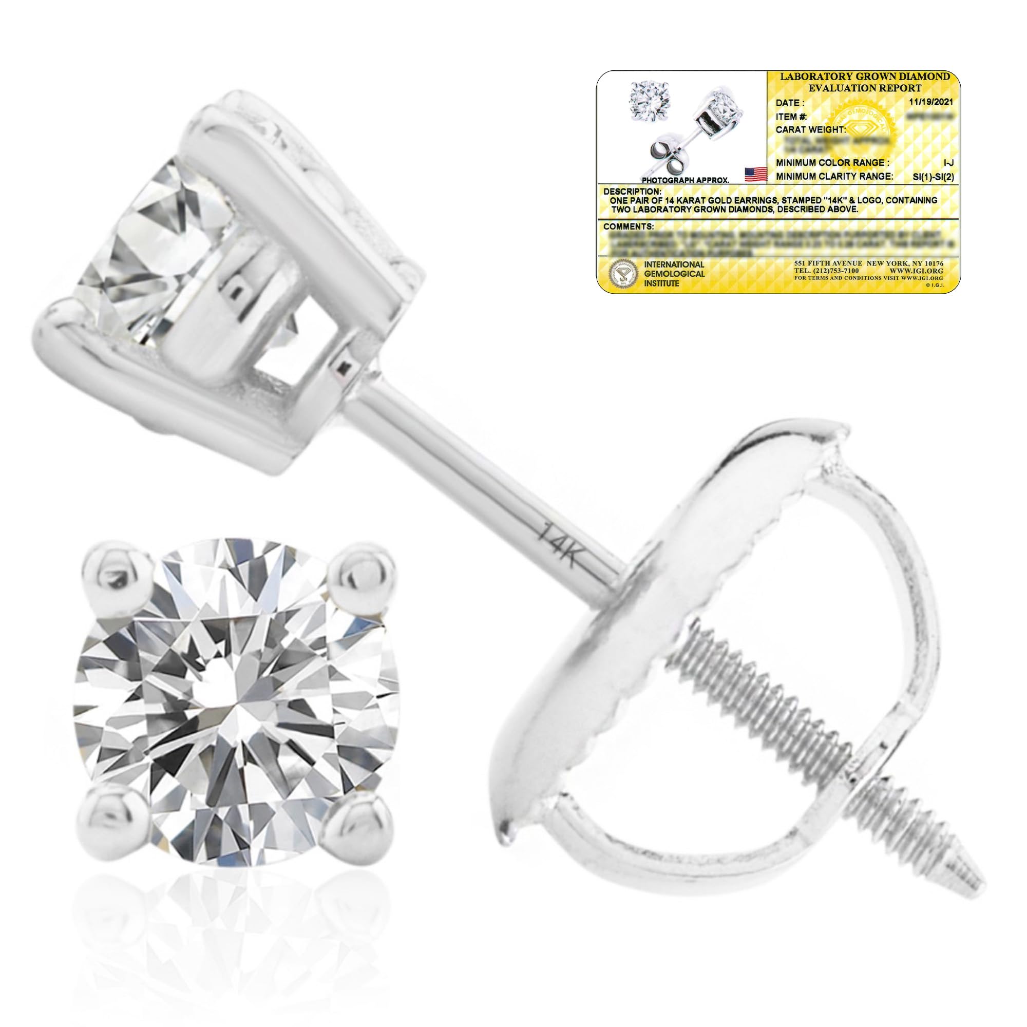 Everyday Solitaire Lab Diamond Studs in 14k Gold, IGI Certified
