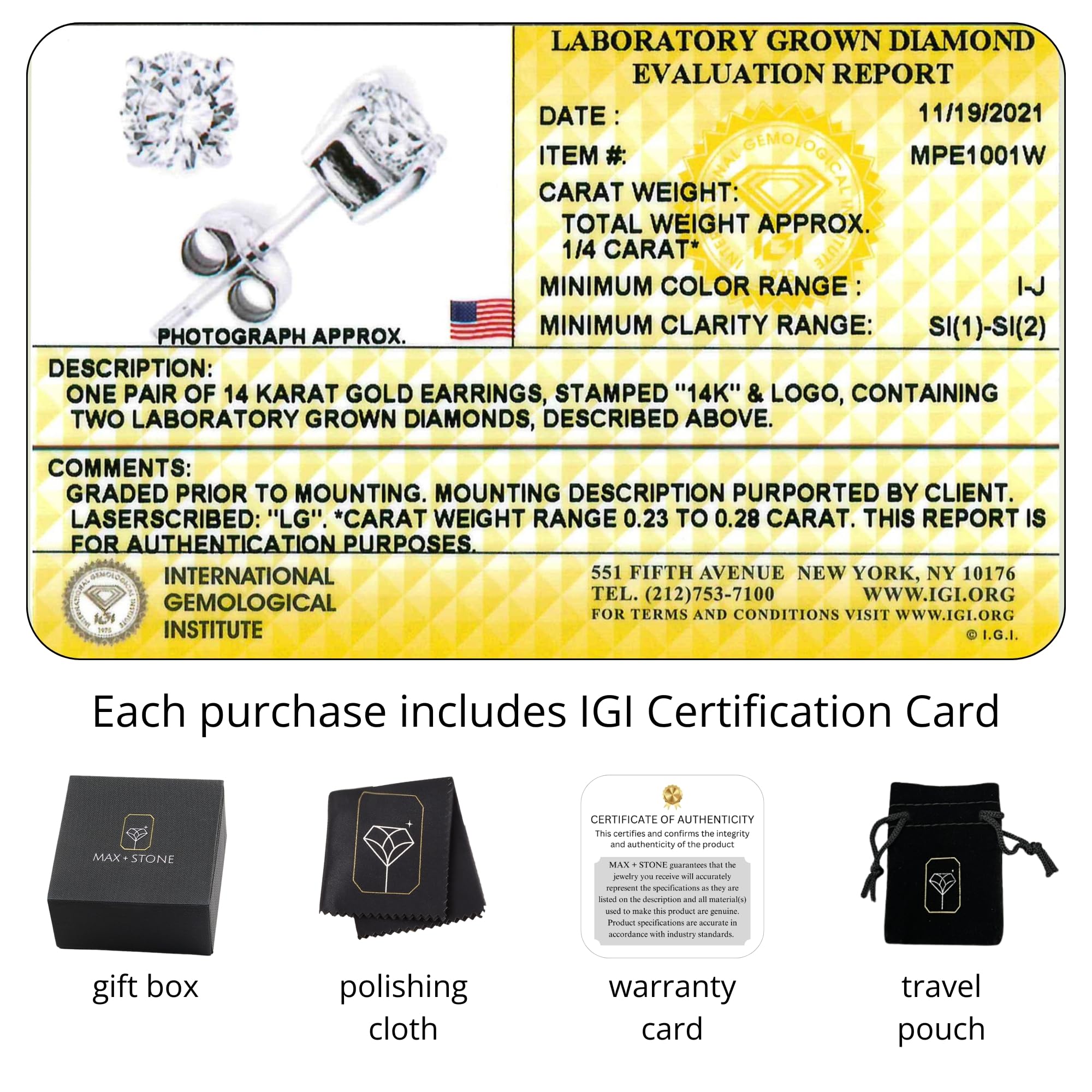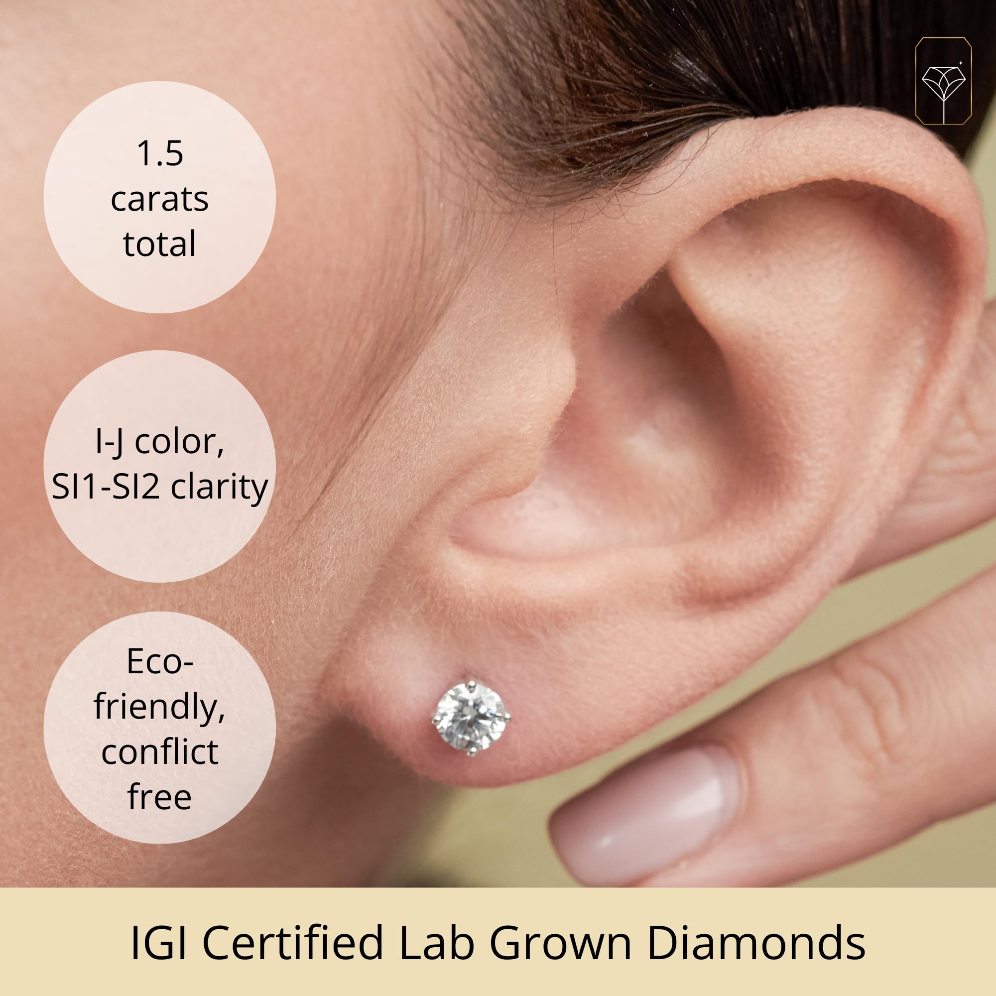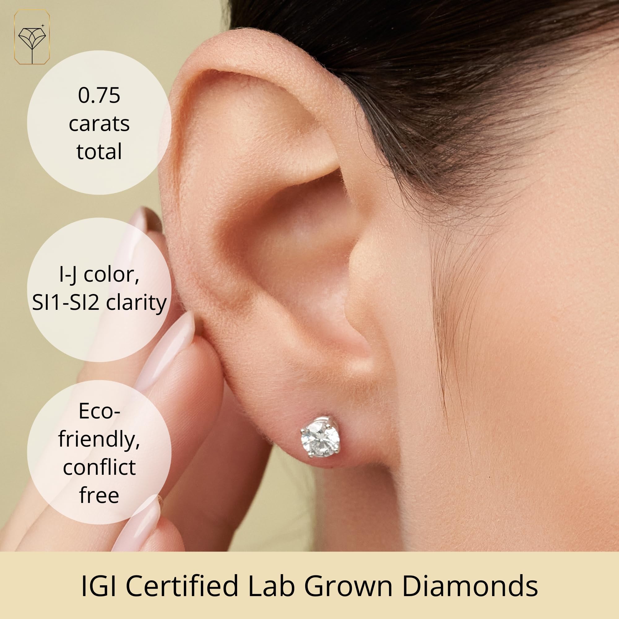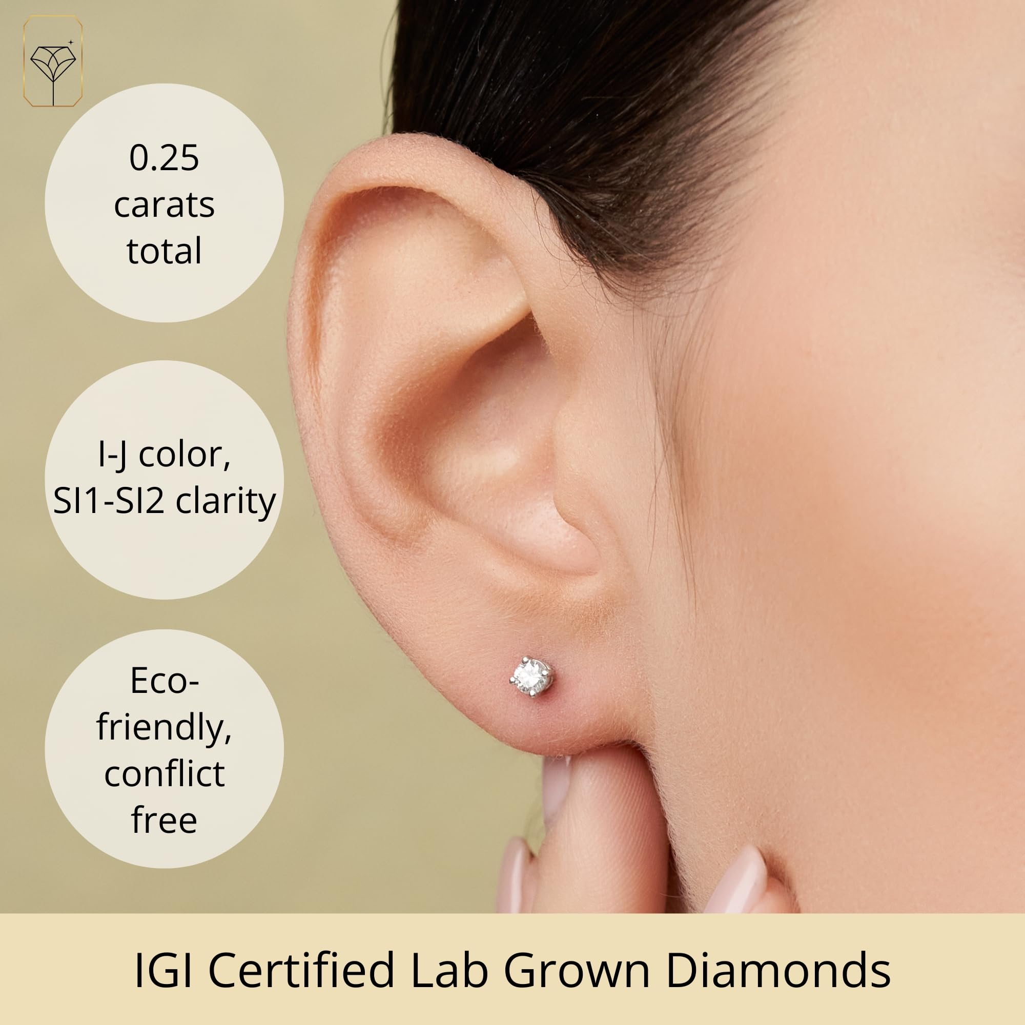 Everyday Solitaire Lab Diamond Studs in 14k Gold, IGI Certified