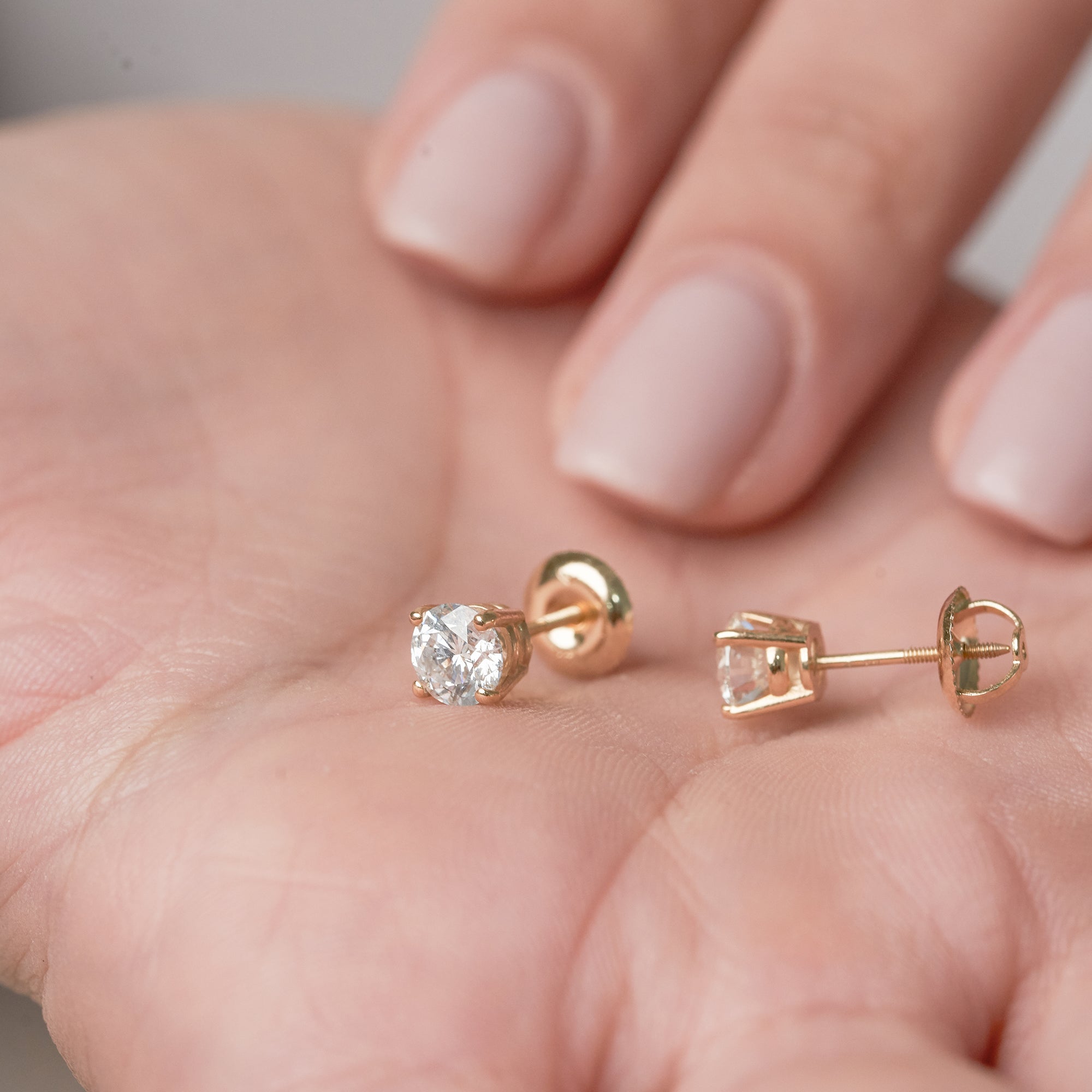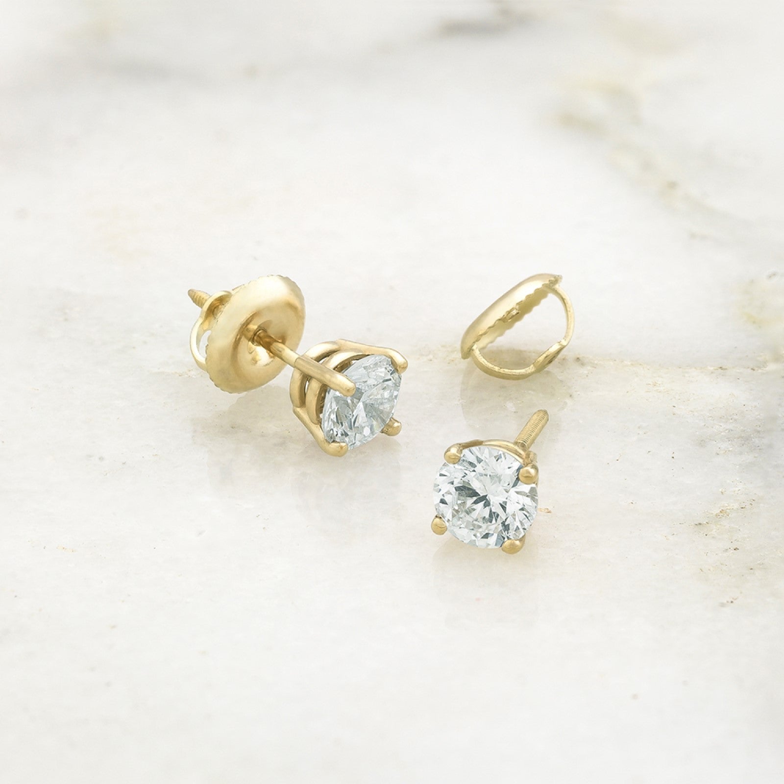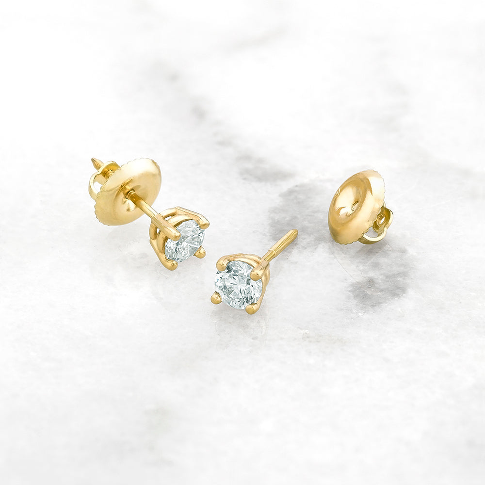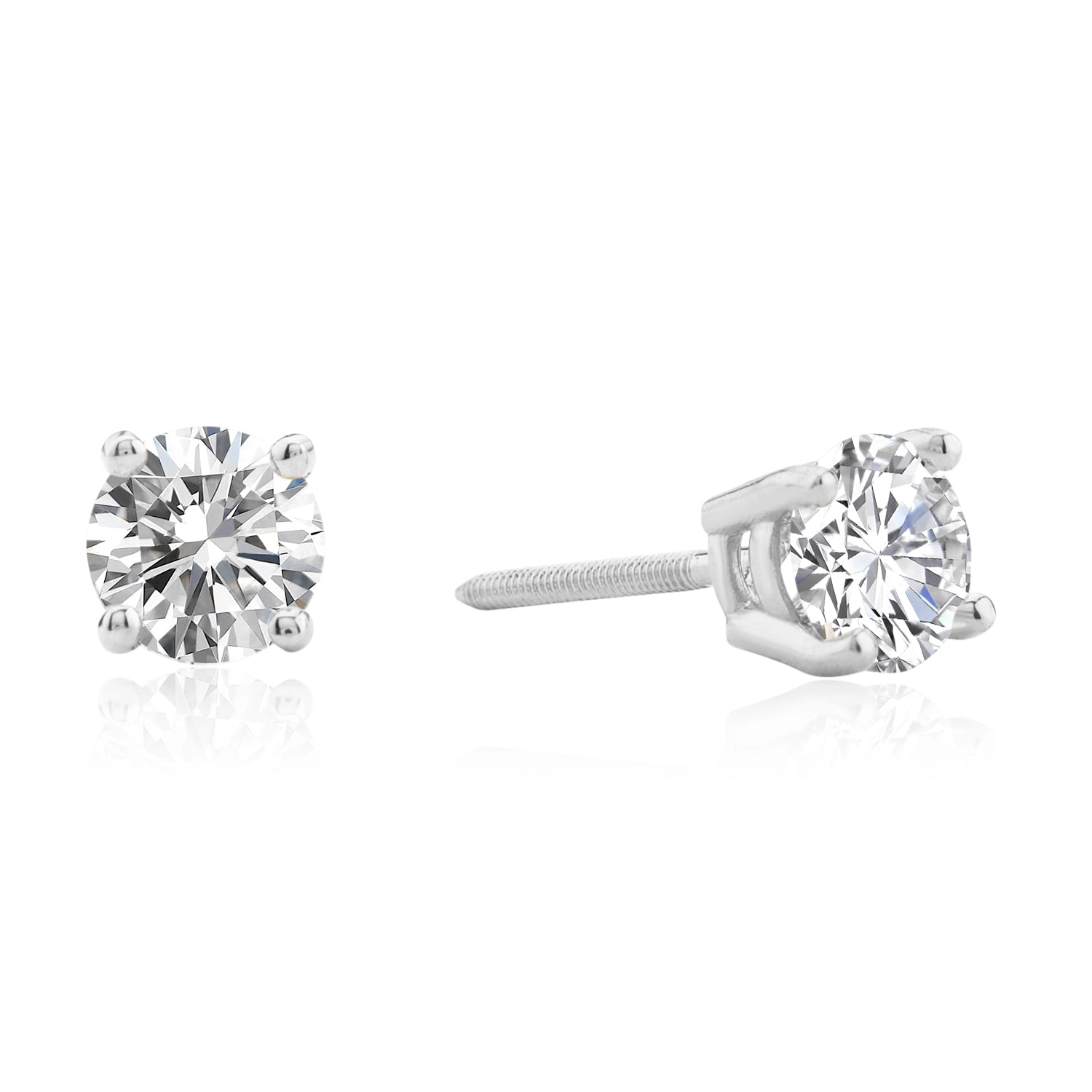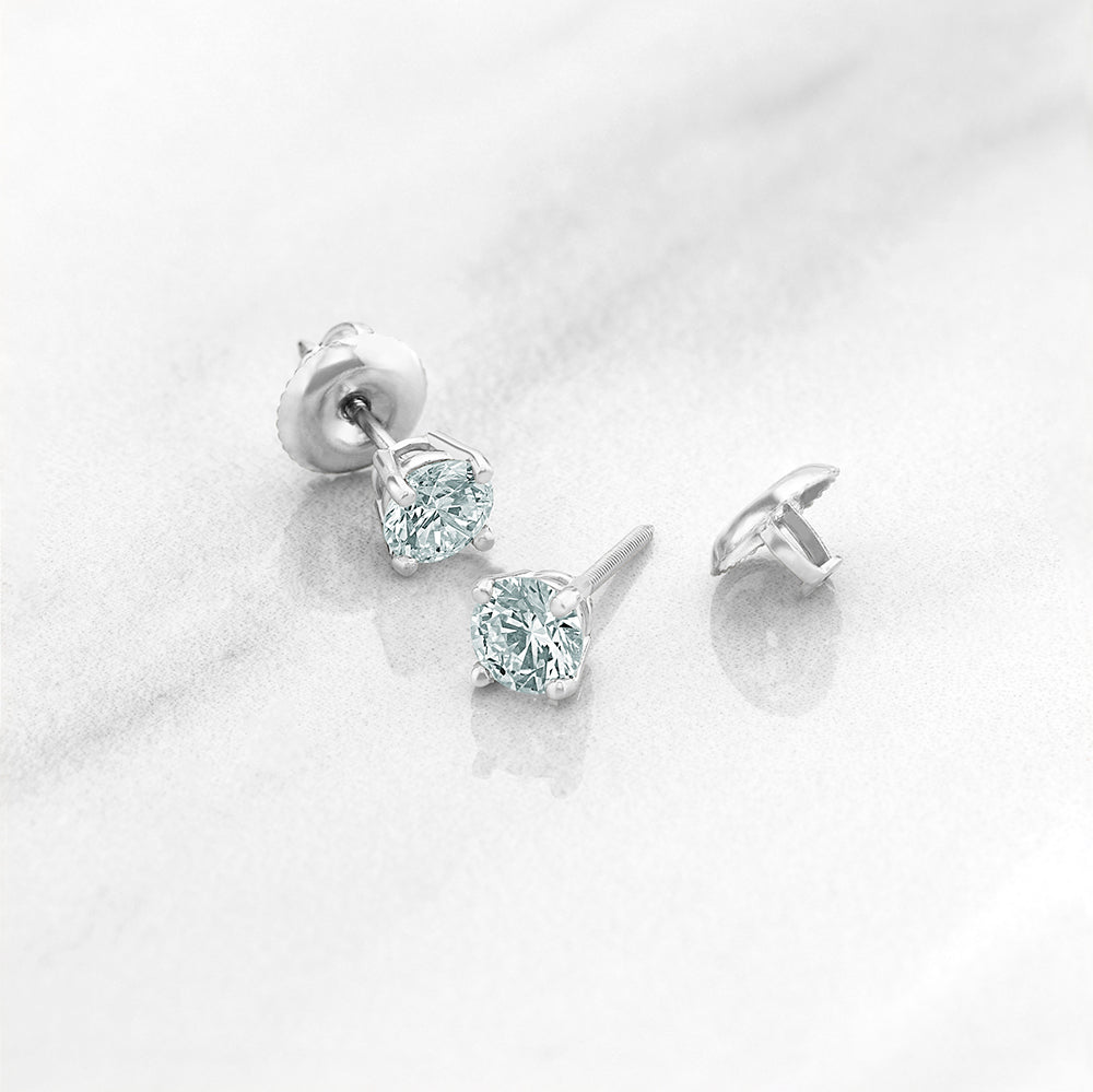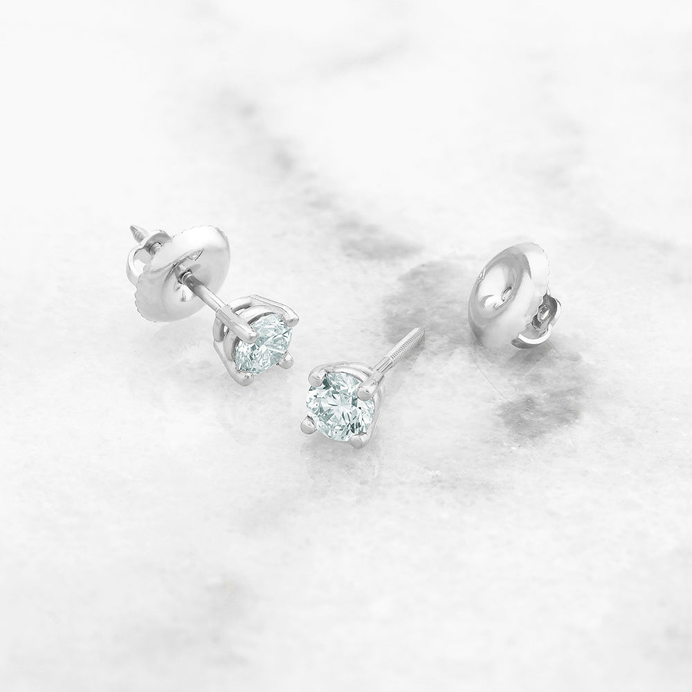 The 1/4 carat pair comes with butterfly pushbacks while all bigger sizes are accompanied with screw back closures.
