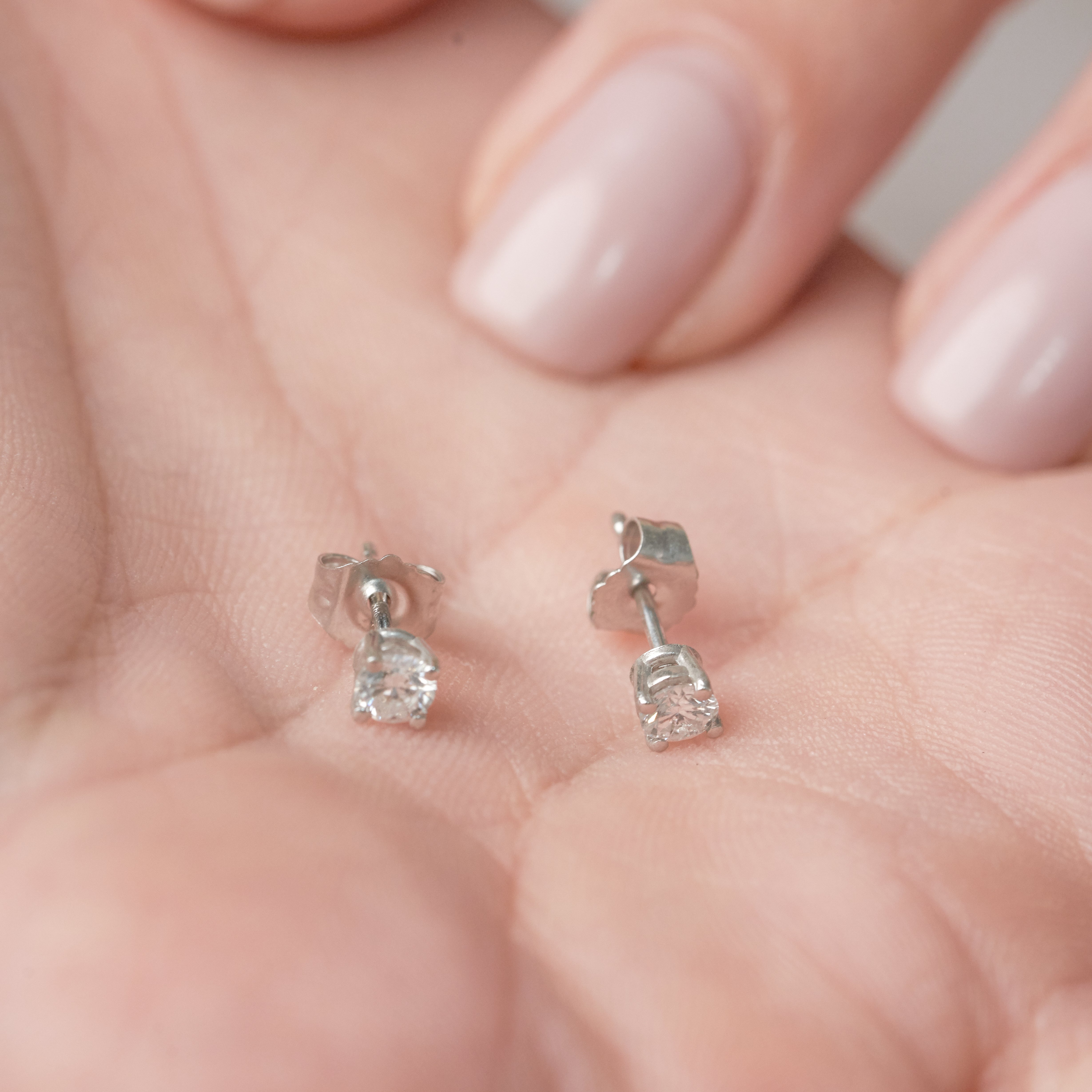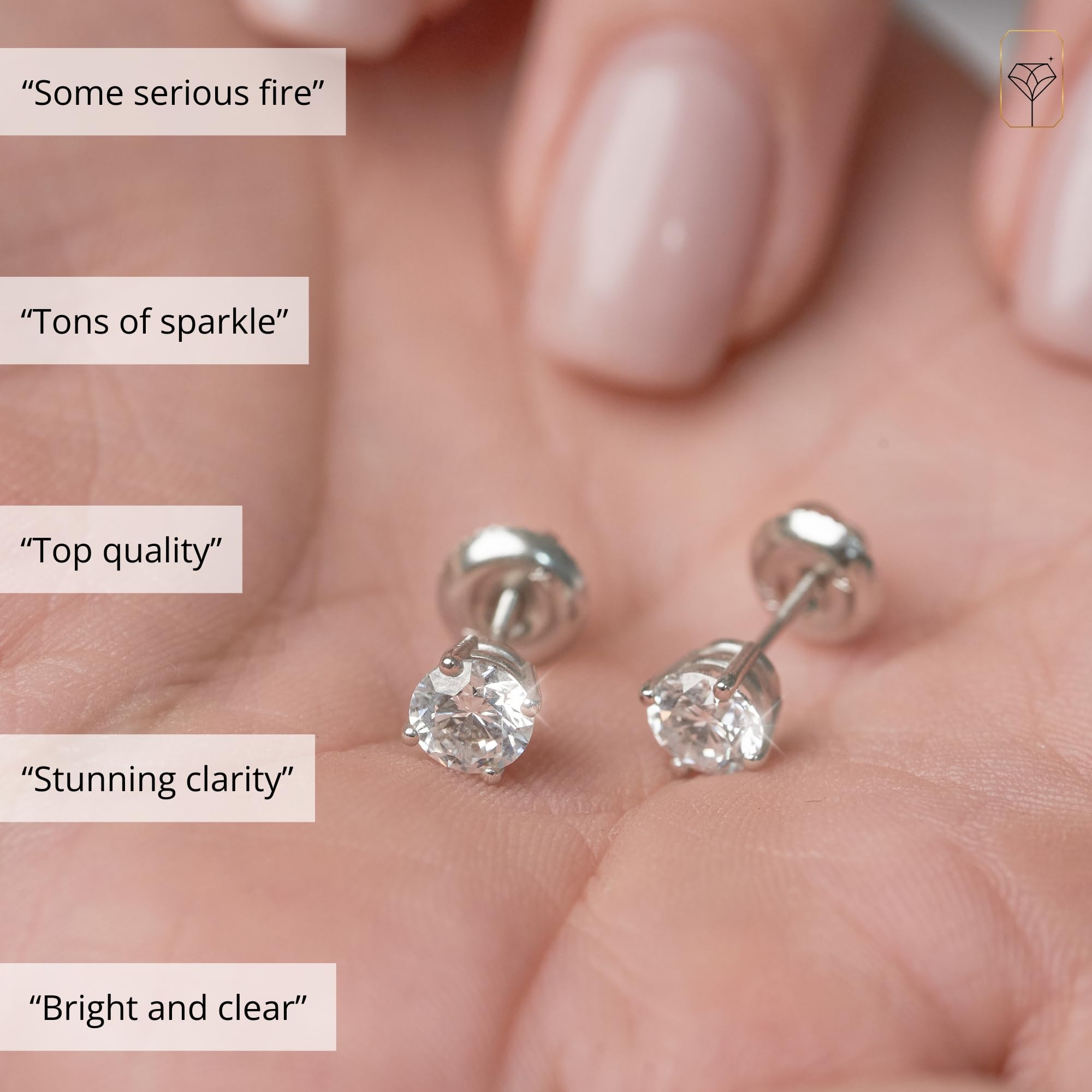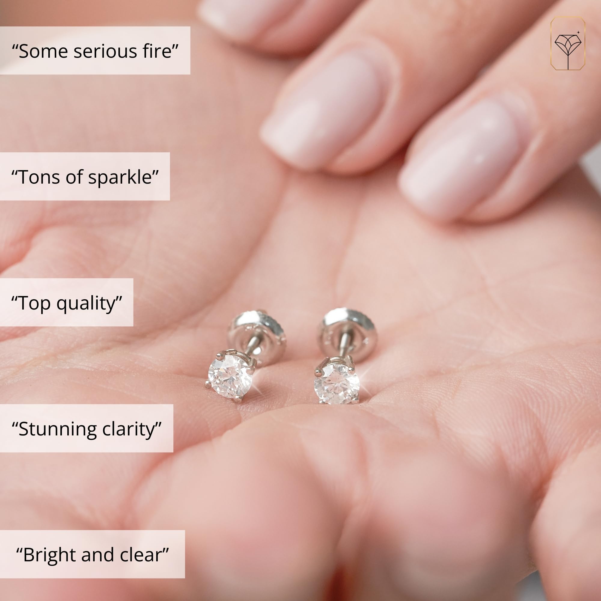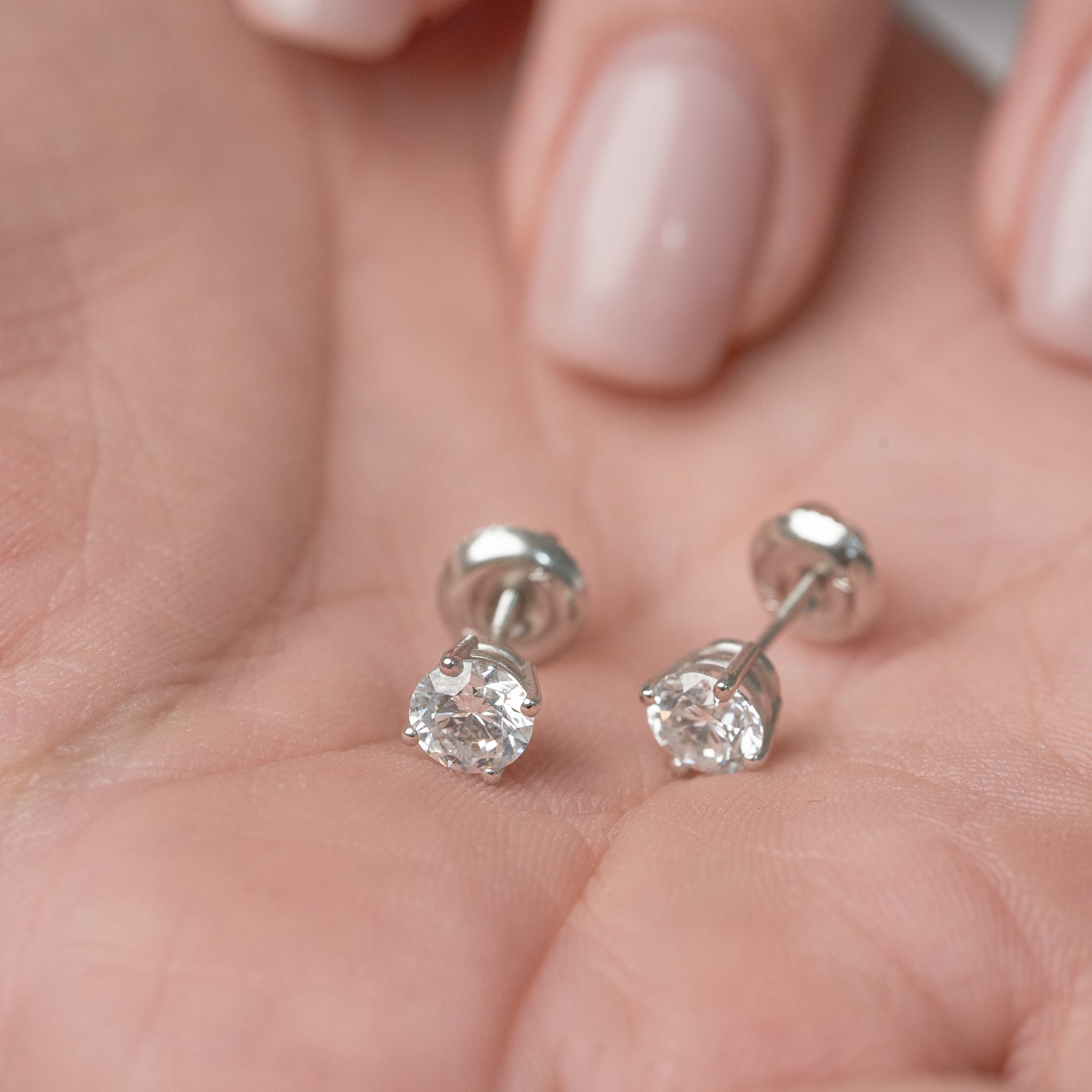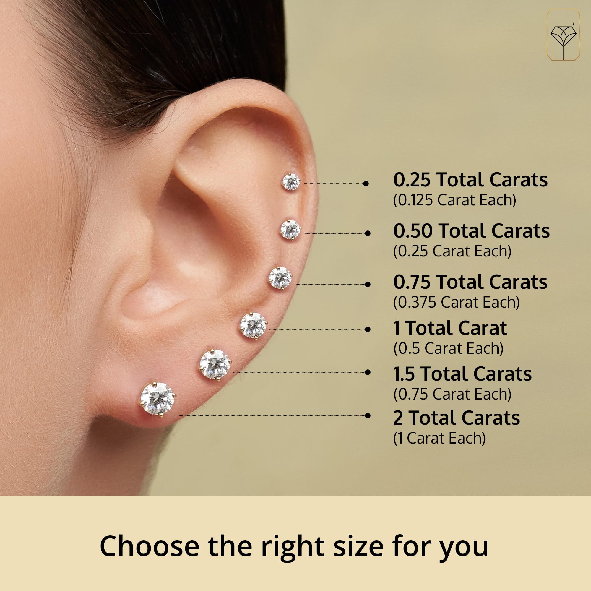 The 1/4 carat pair comes with butterfly pushbacks while all bigger sizes are accompanied with screw back closures.