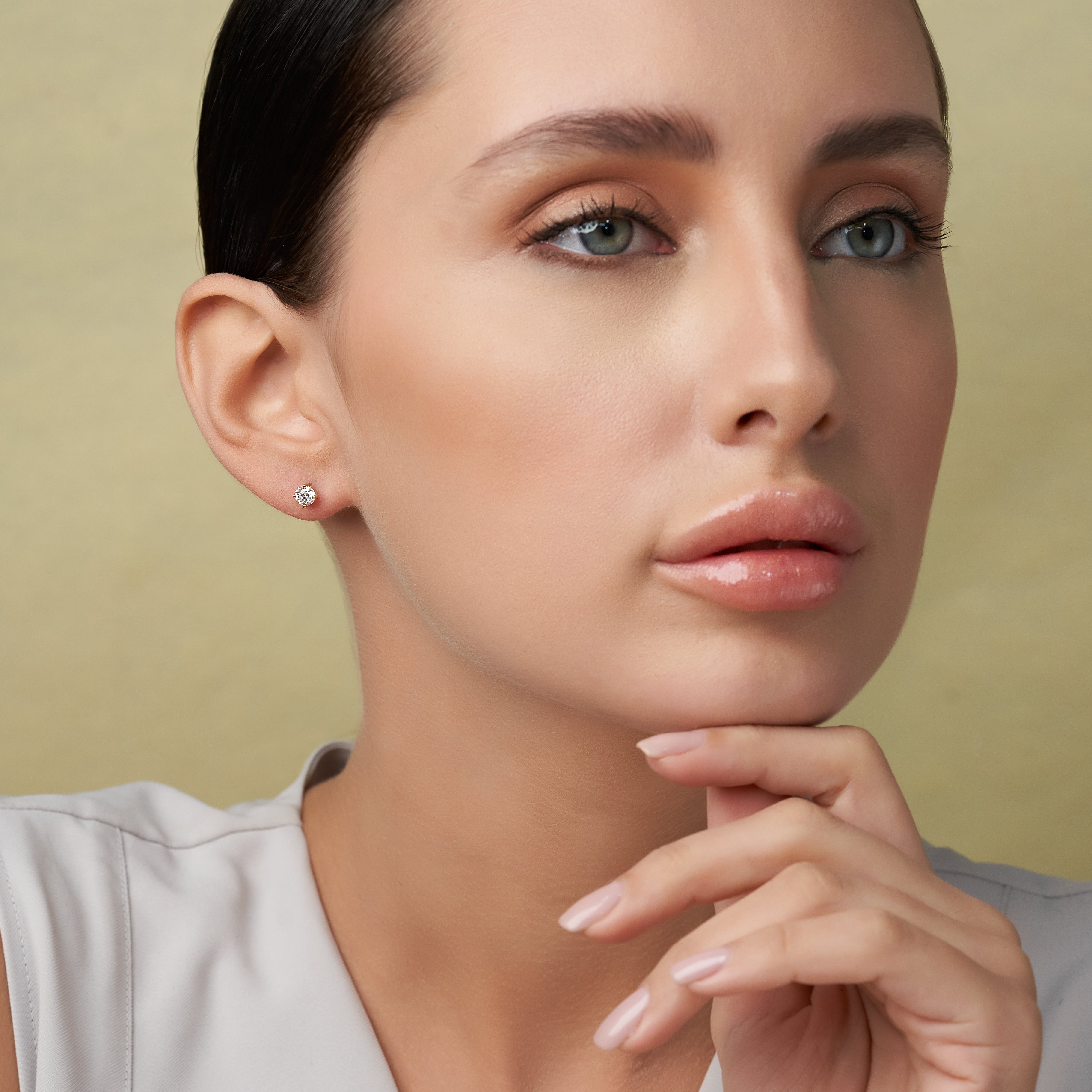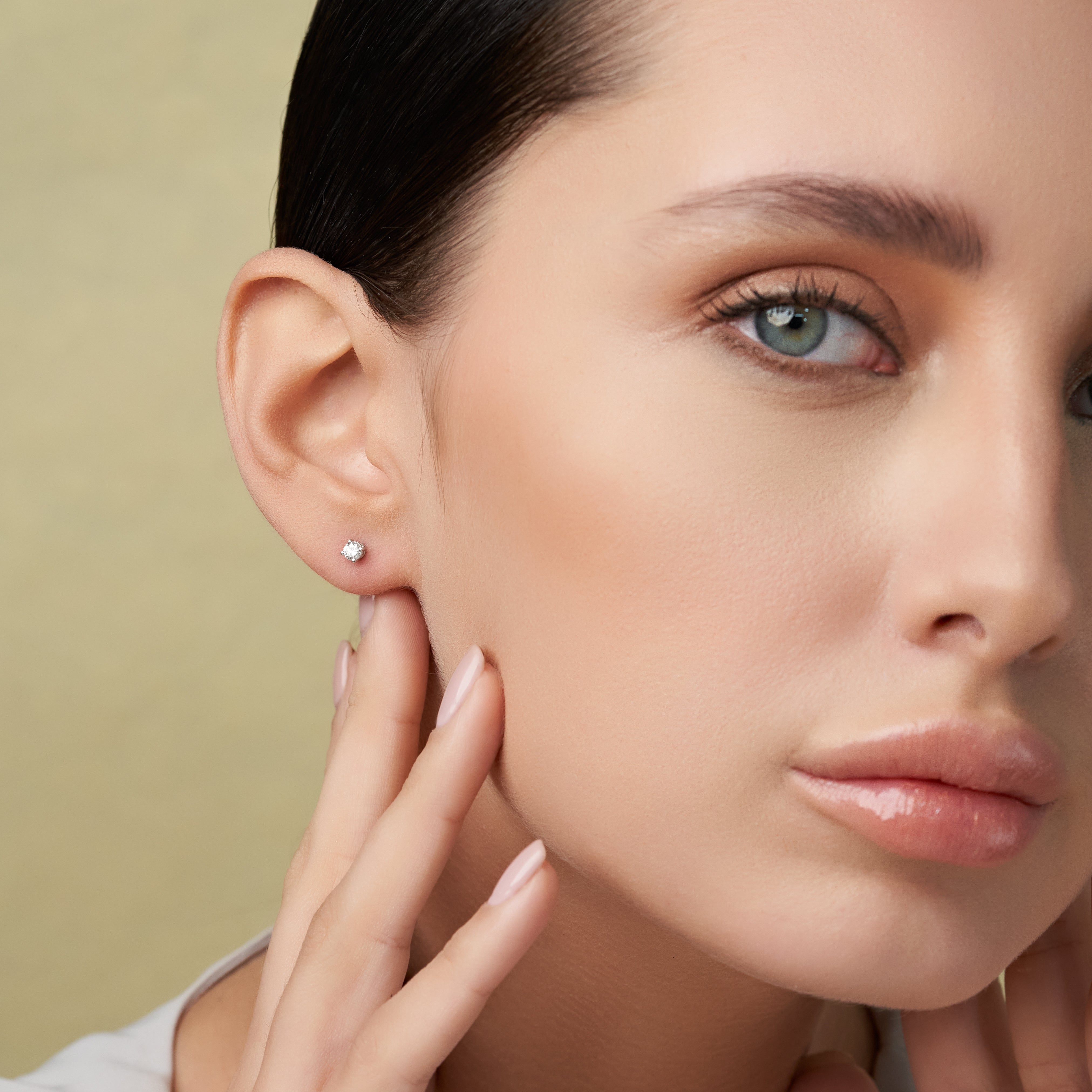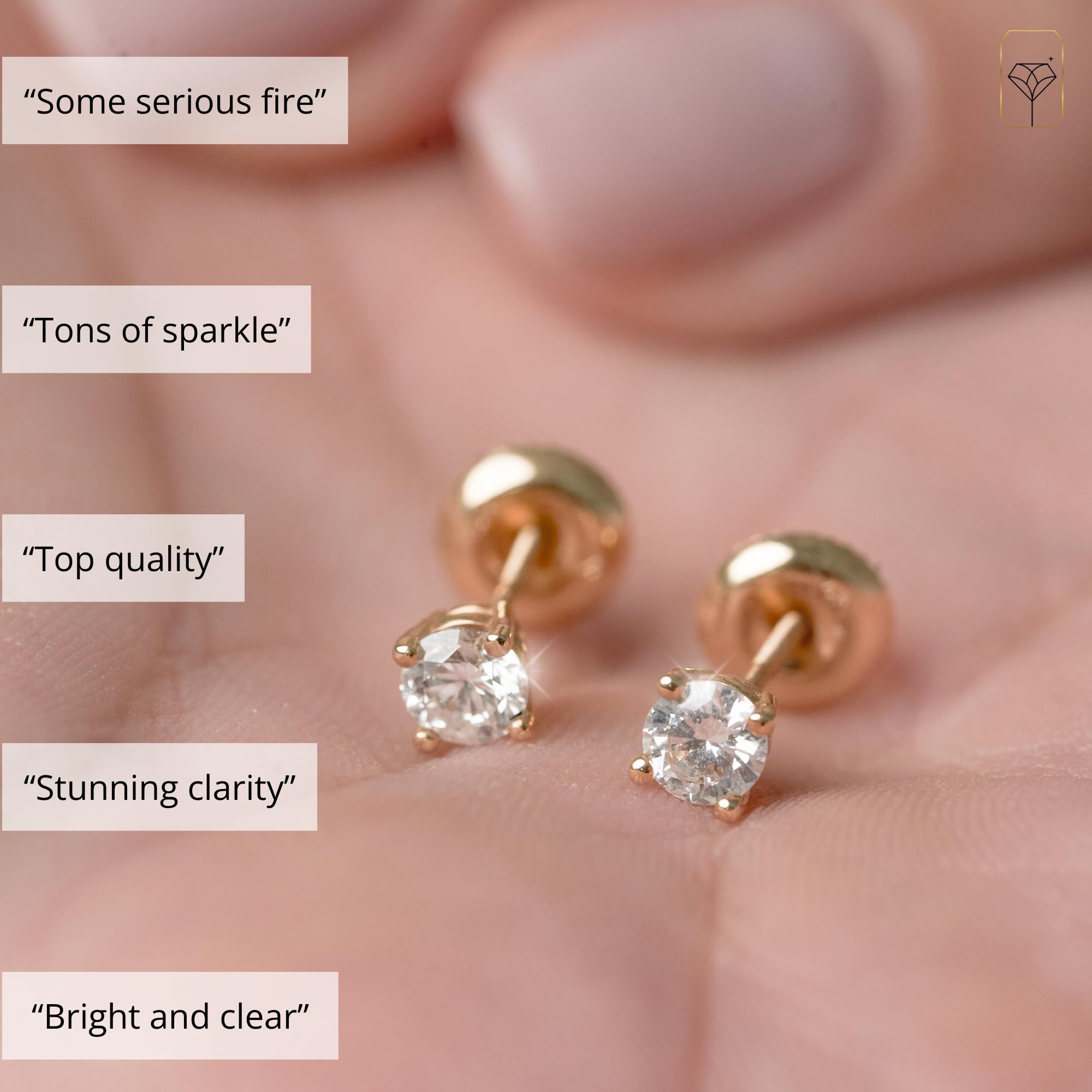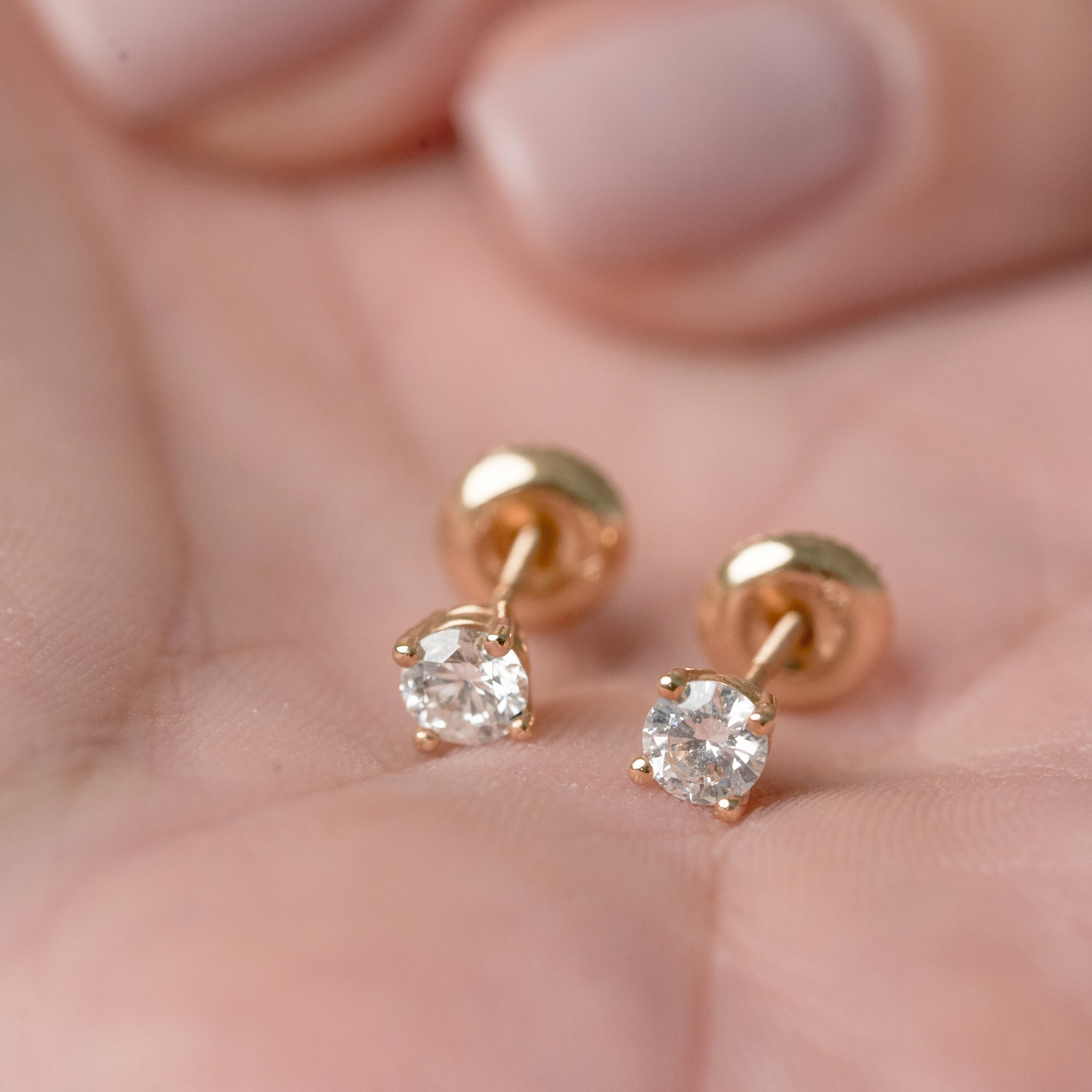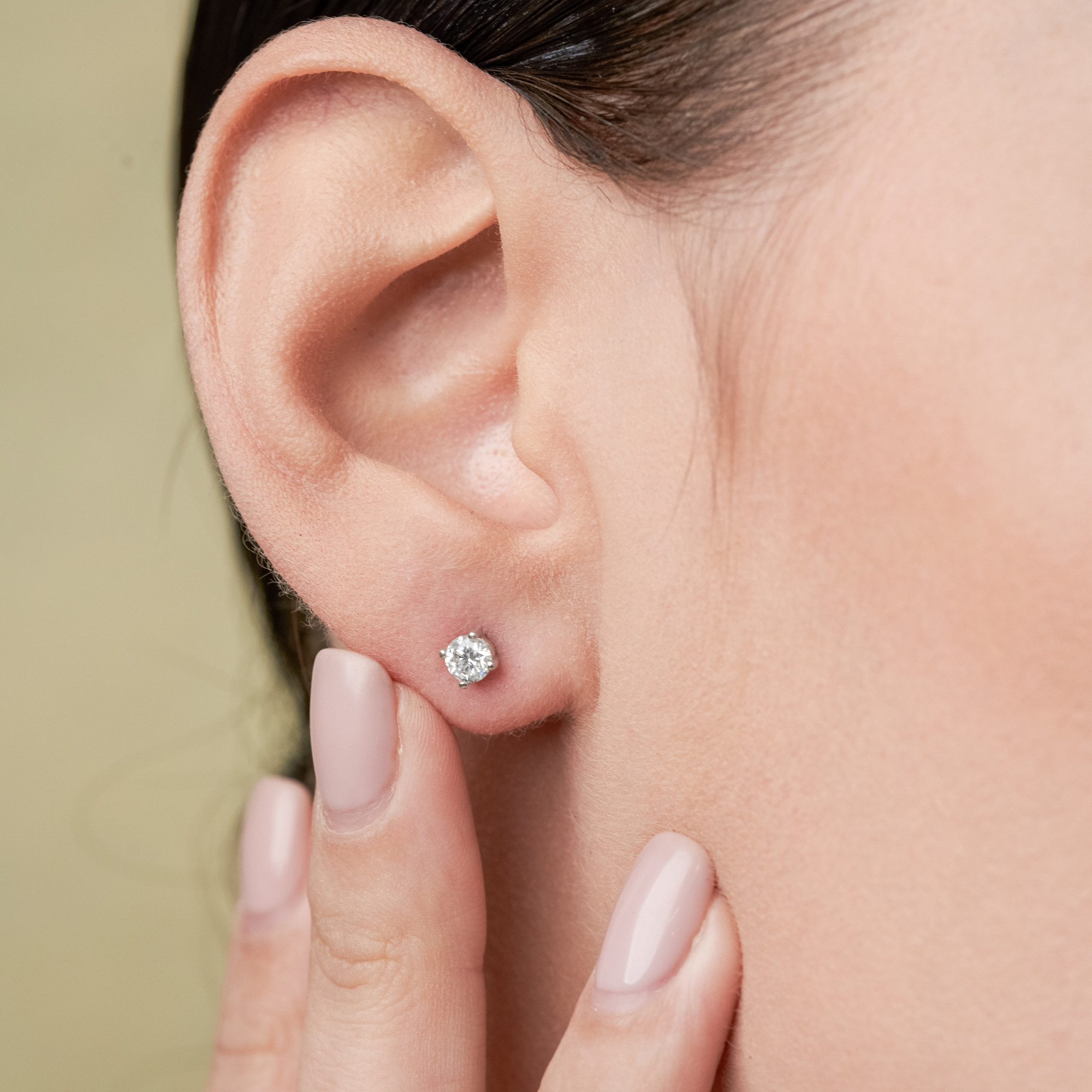 The 1/4 carat pair comes with butterfly pushbacks while all bigger sizes are accompanied with screw back closures.