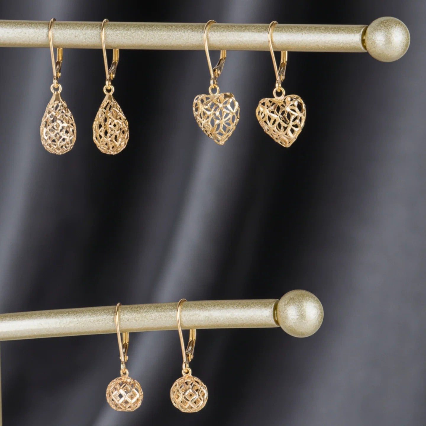 Golden drops that glow with detail. Crafted in 14k solid gold with a delicate filigree design, these teardrop dangles move gracefully with every step—lightweight, secure, and made to shine every day.