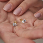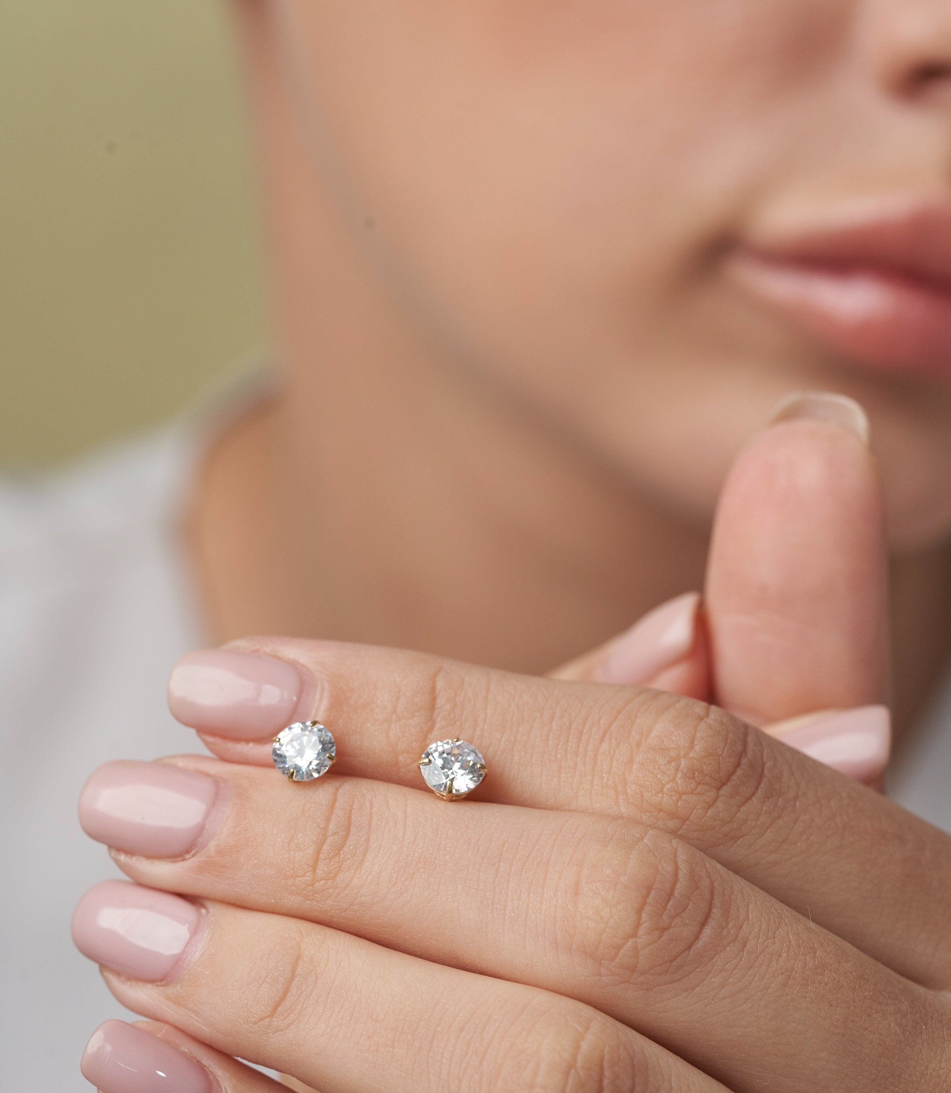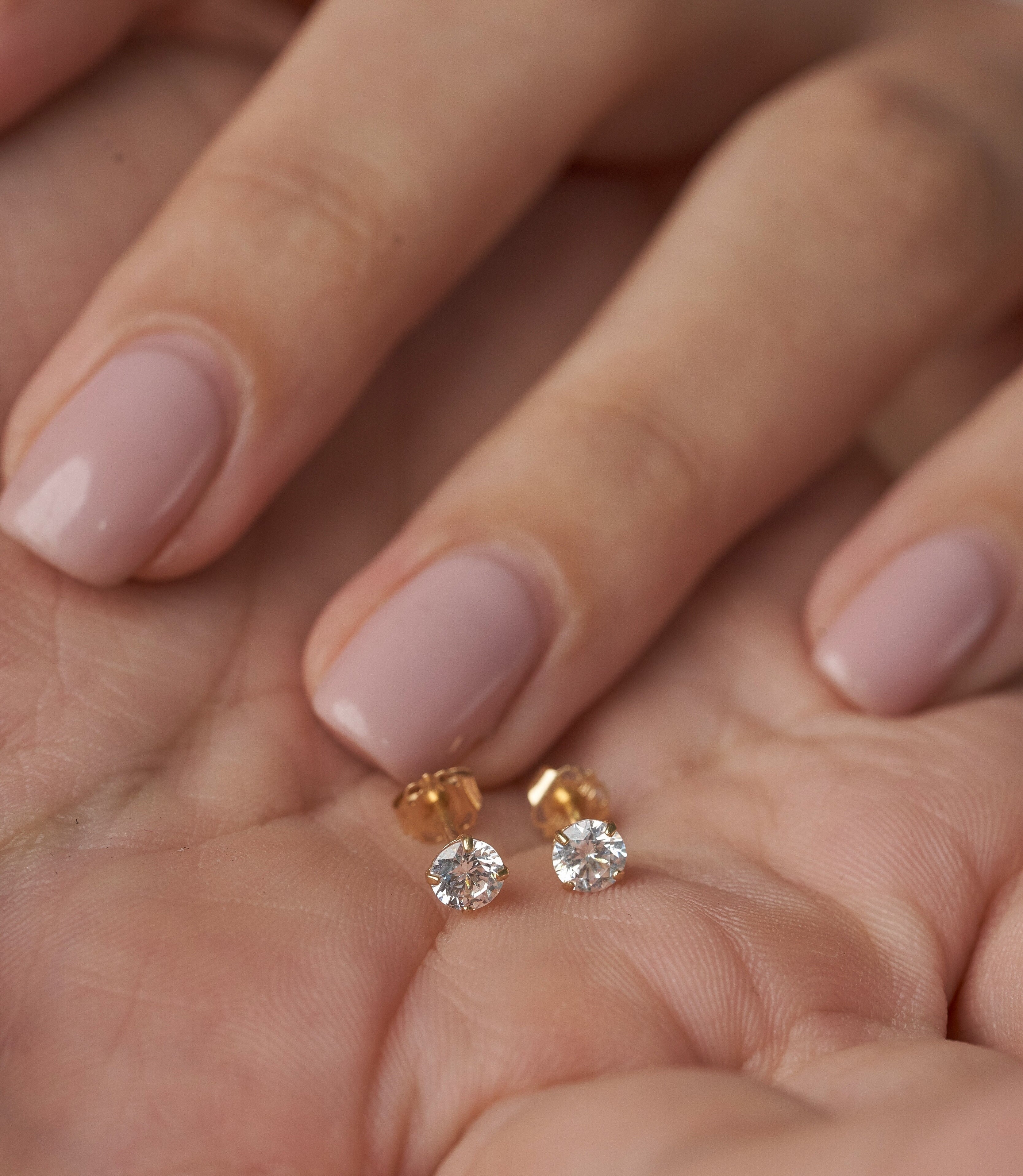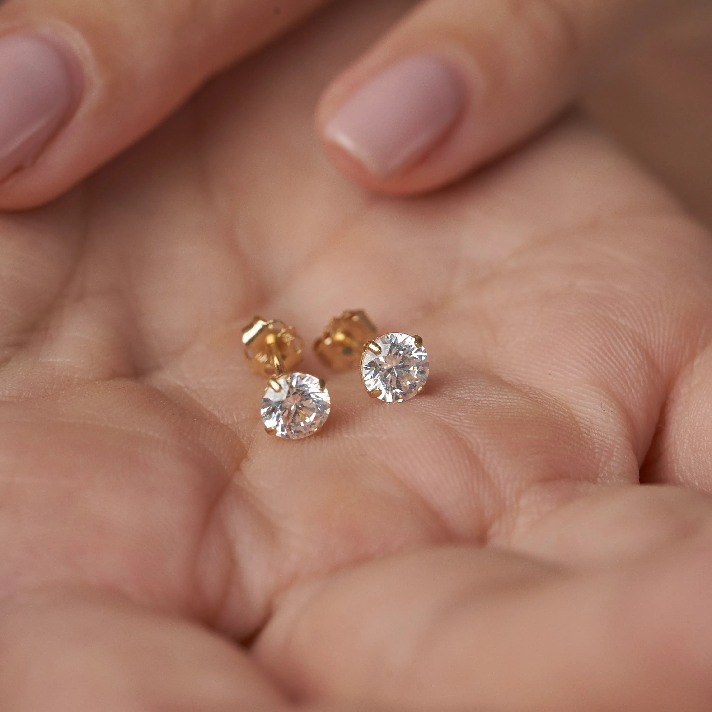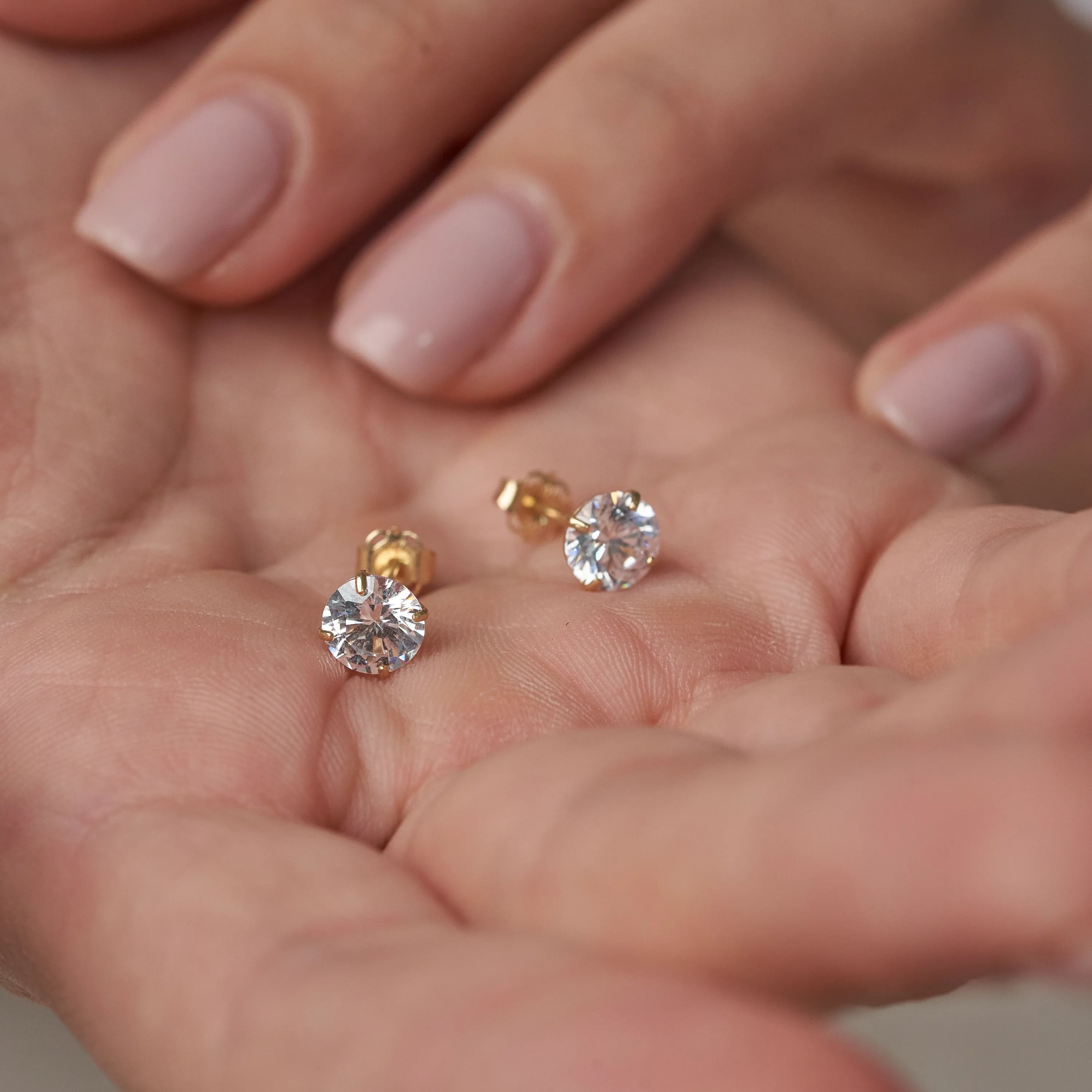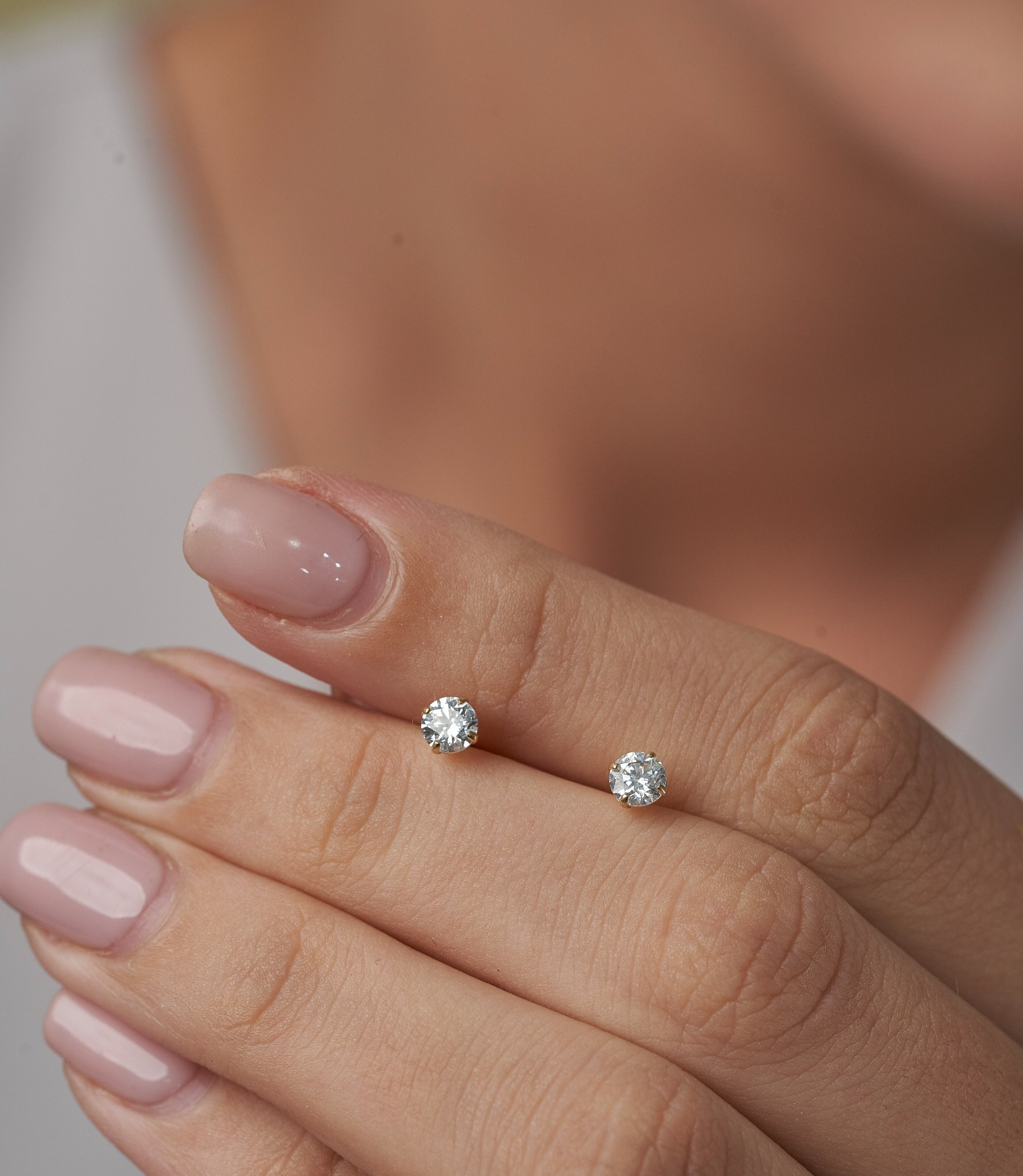 Your everyday signature. Brilliant cubic zirconia stones set in genuine 14K gold, designed to be lived in — shower, sweat, sleep, and shine without ever taking them off.
