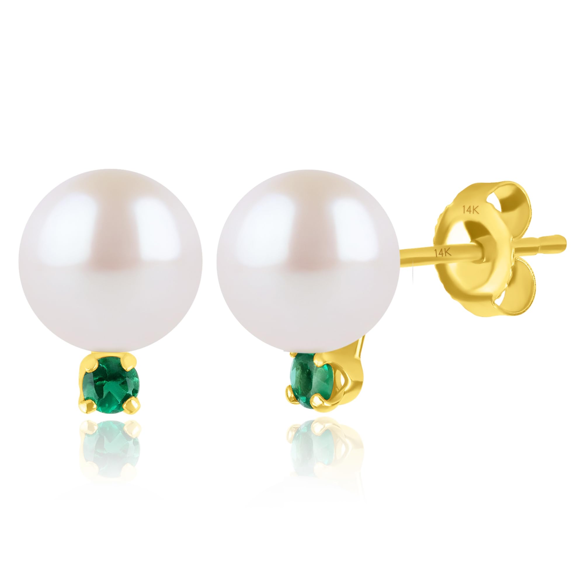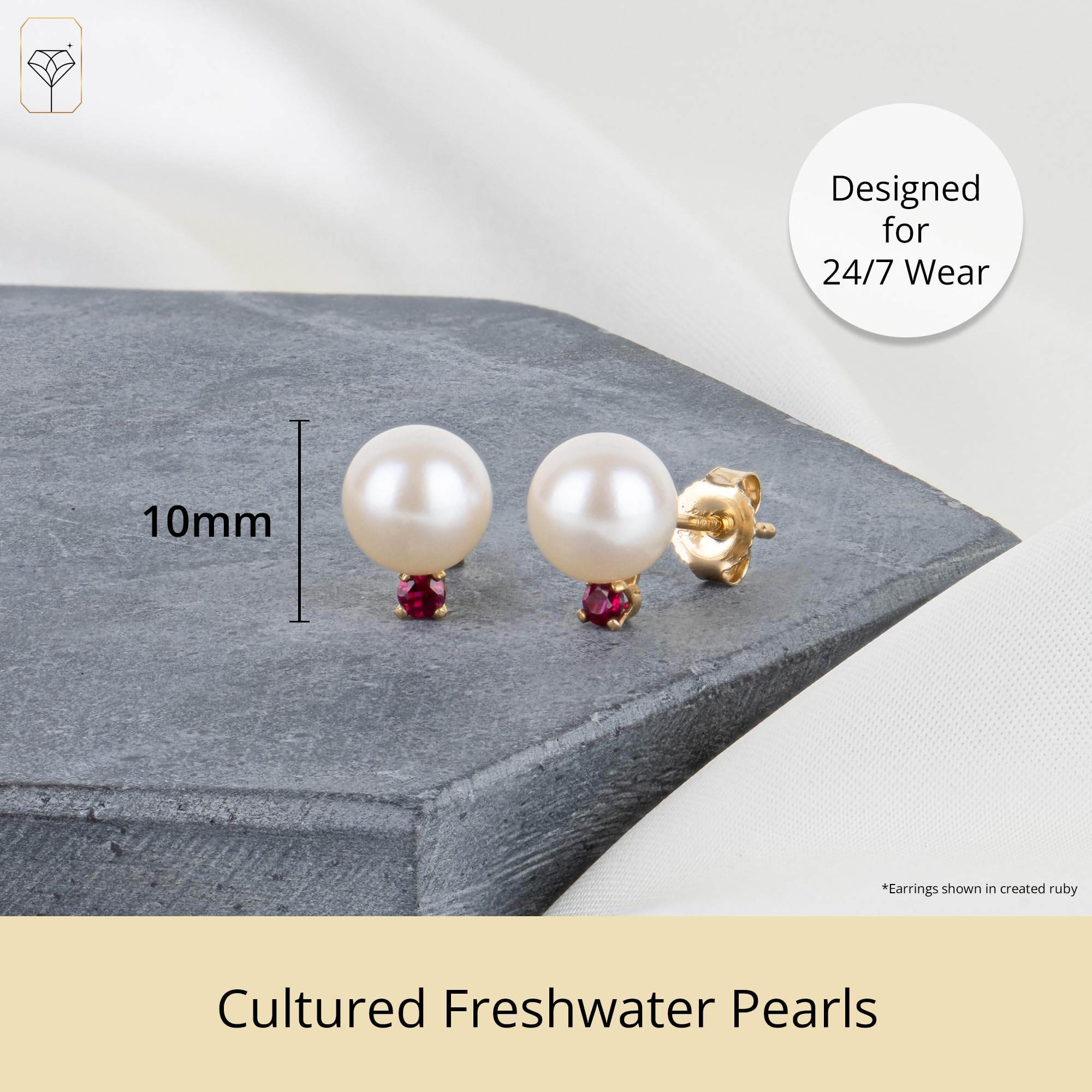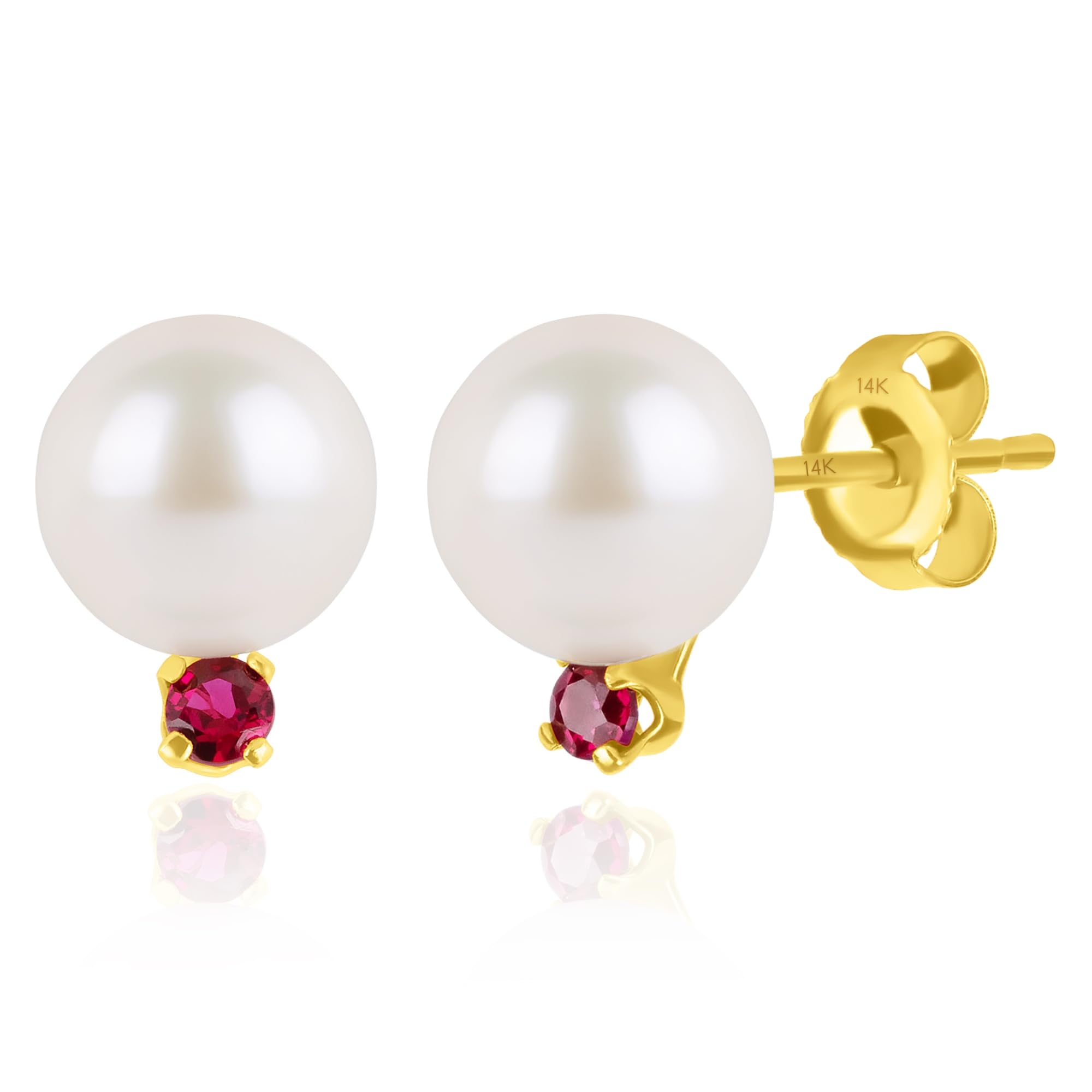 Freshwater Pearl Gemstone Stud in 14k Yellow Gold