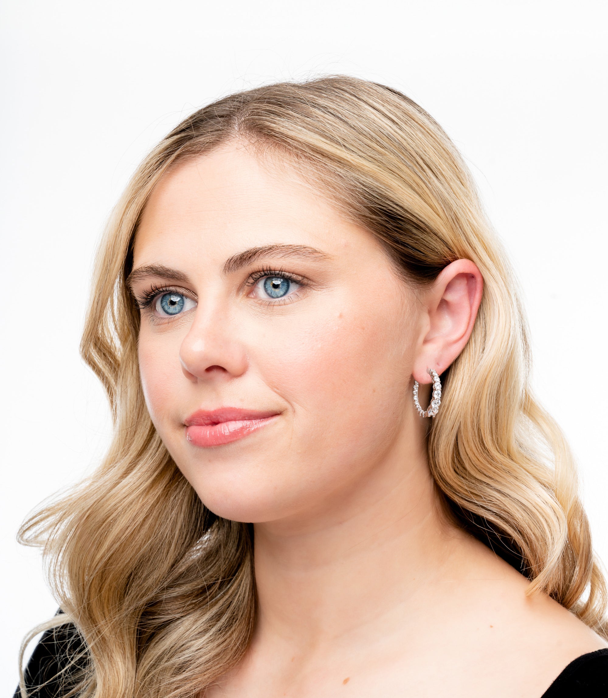 Like a circle of light, these sterling silver inside-out hoops are lined with sparkling CZ stones inside and out. Lightweight and hypoallergenic, they create a look that feels both effortless and memorably graceful.