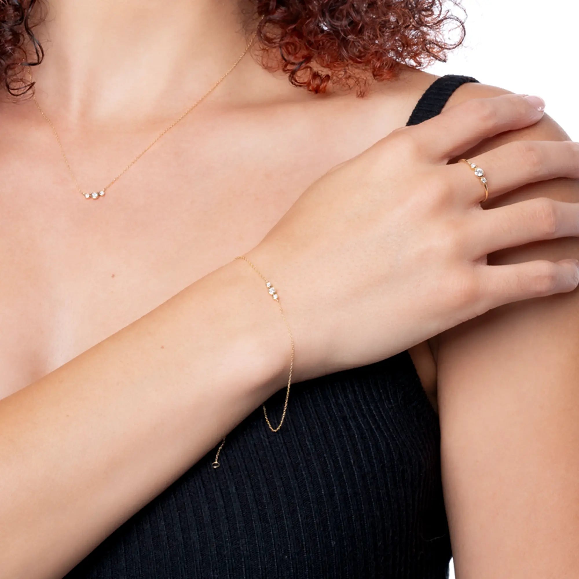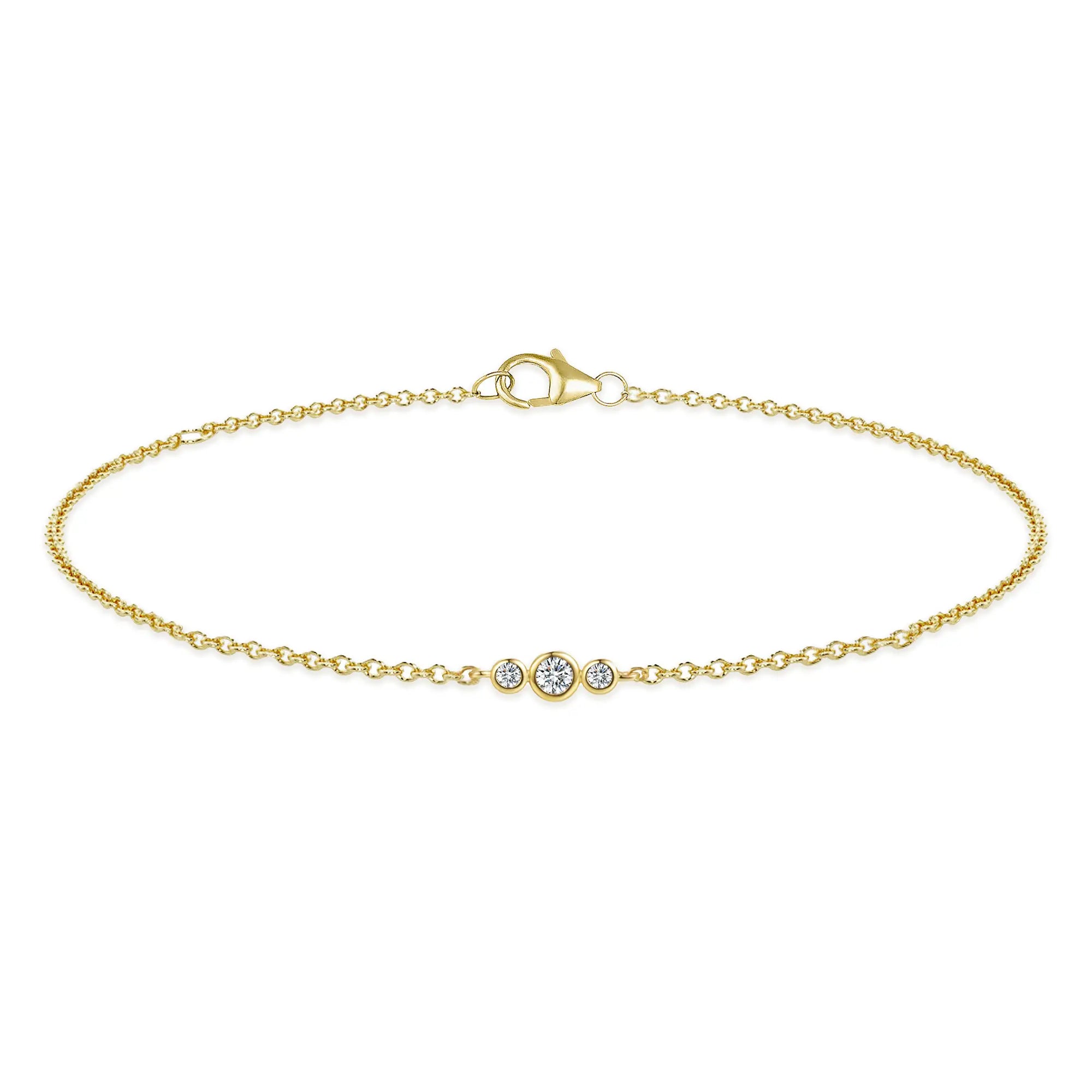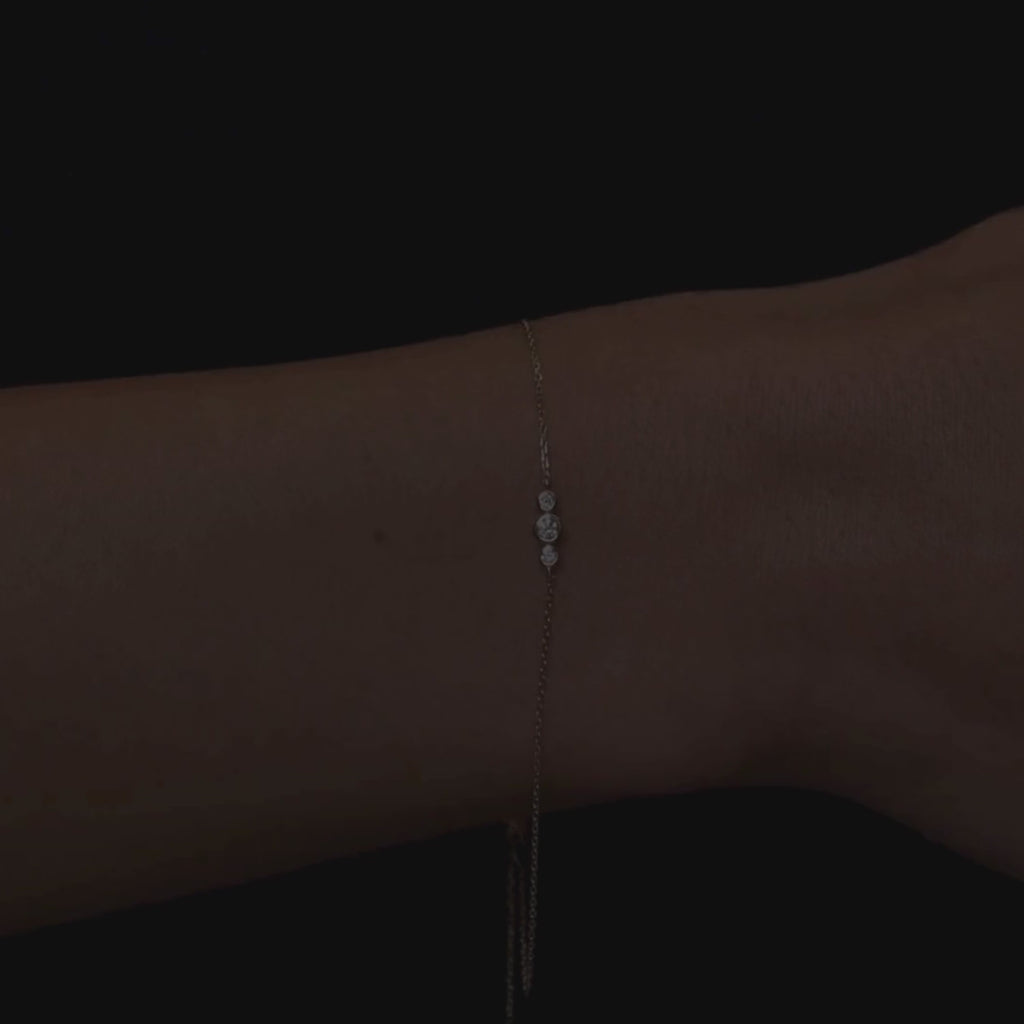 Three times the sparkle, one timeless piece. The Golden Dew Trio Bracelet features a graduating trio of bezel-set lab-grown diamonds in 10K solid gold — dainty, modern, and perfect for everyday wear.