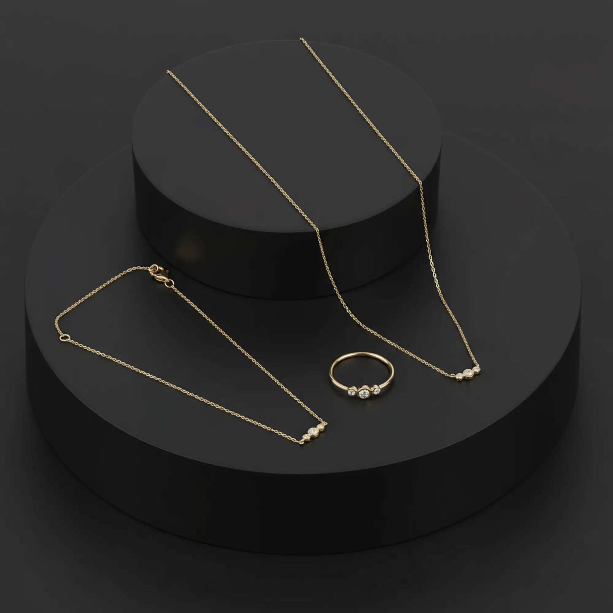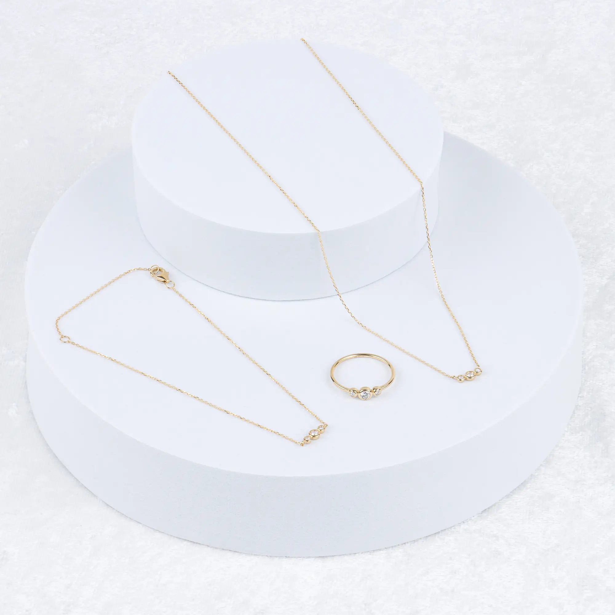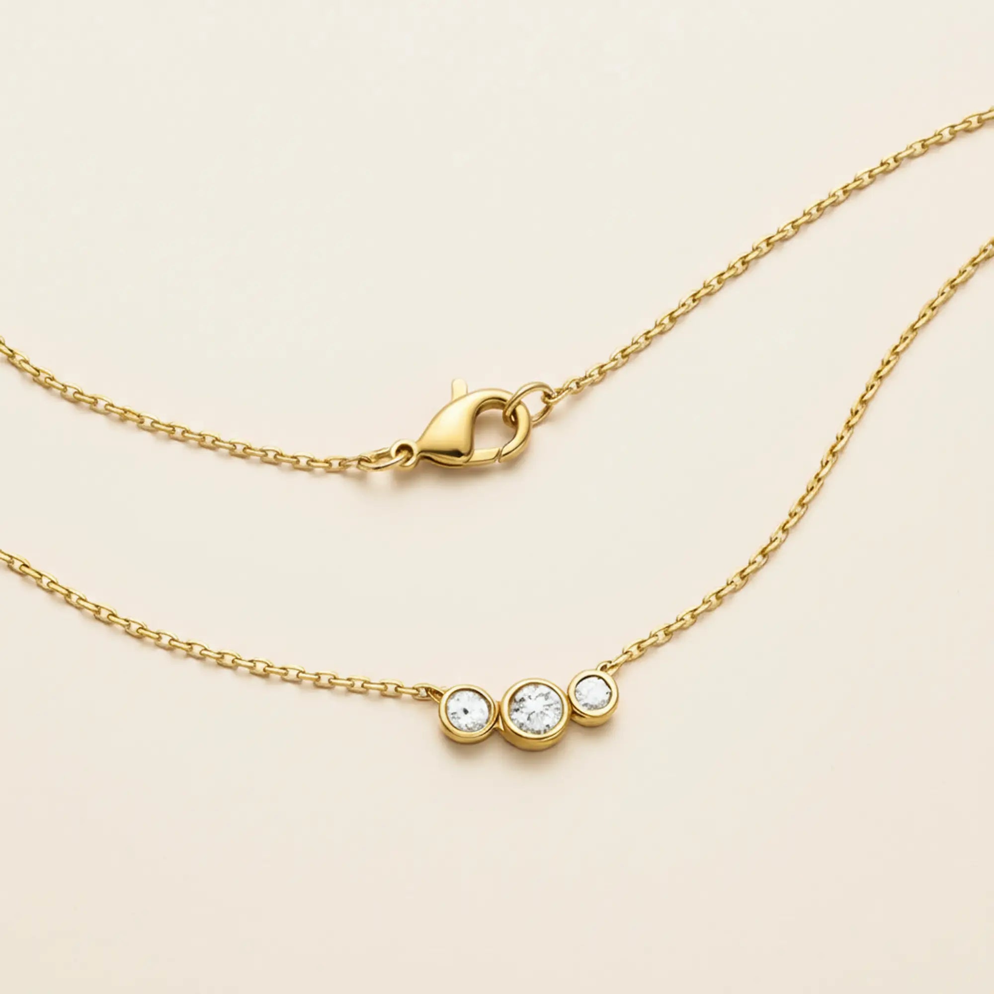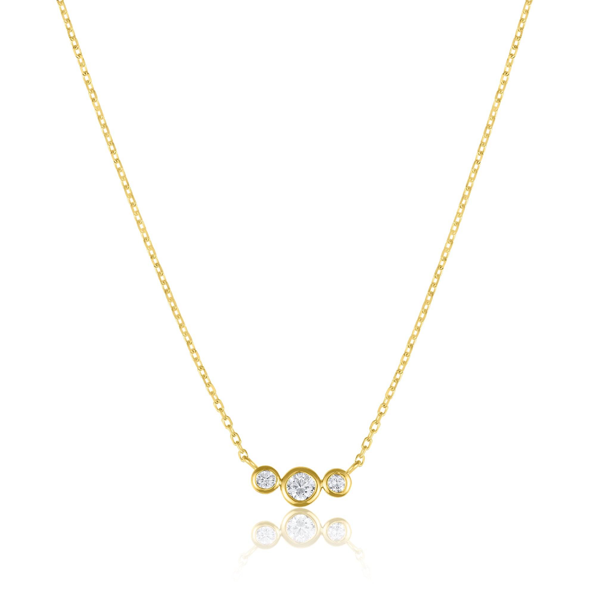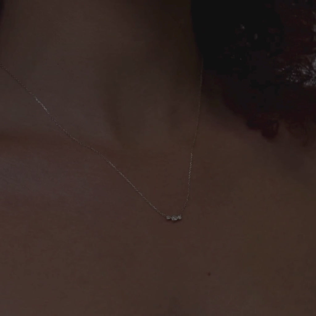 Good things come in threes. The Trio Necklace lines up a sleek set of bezel-set lab grown diamonds in solid 10K gold for a statement of everyday luxury.