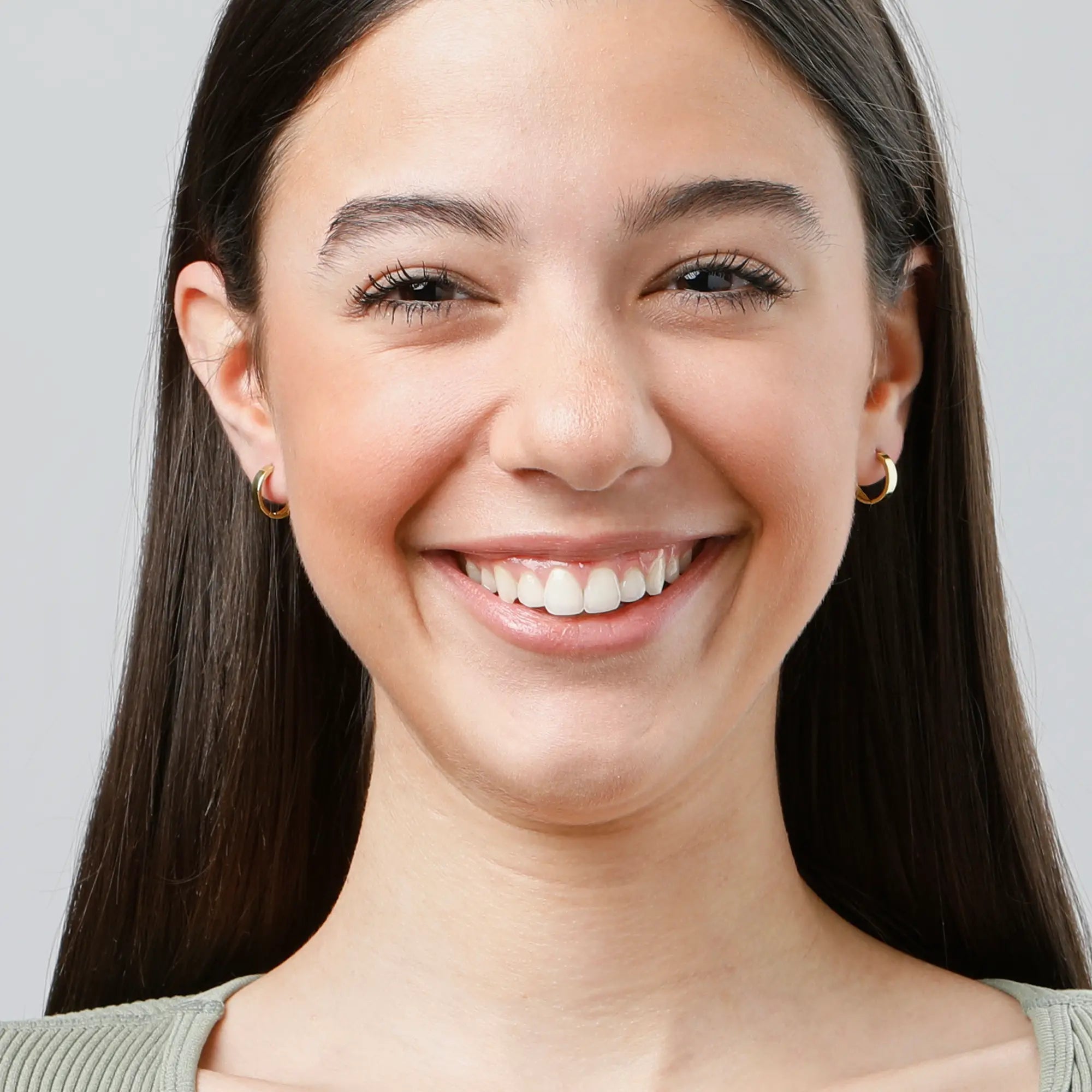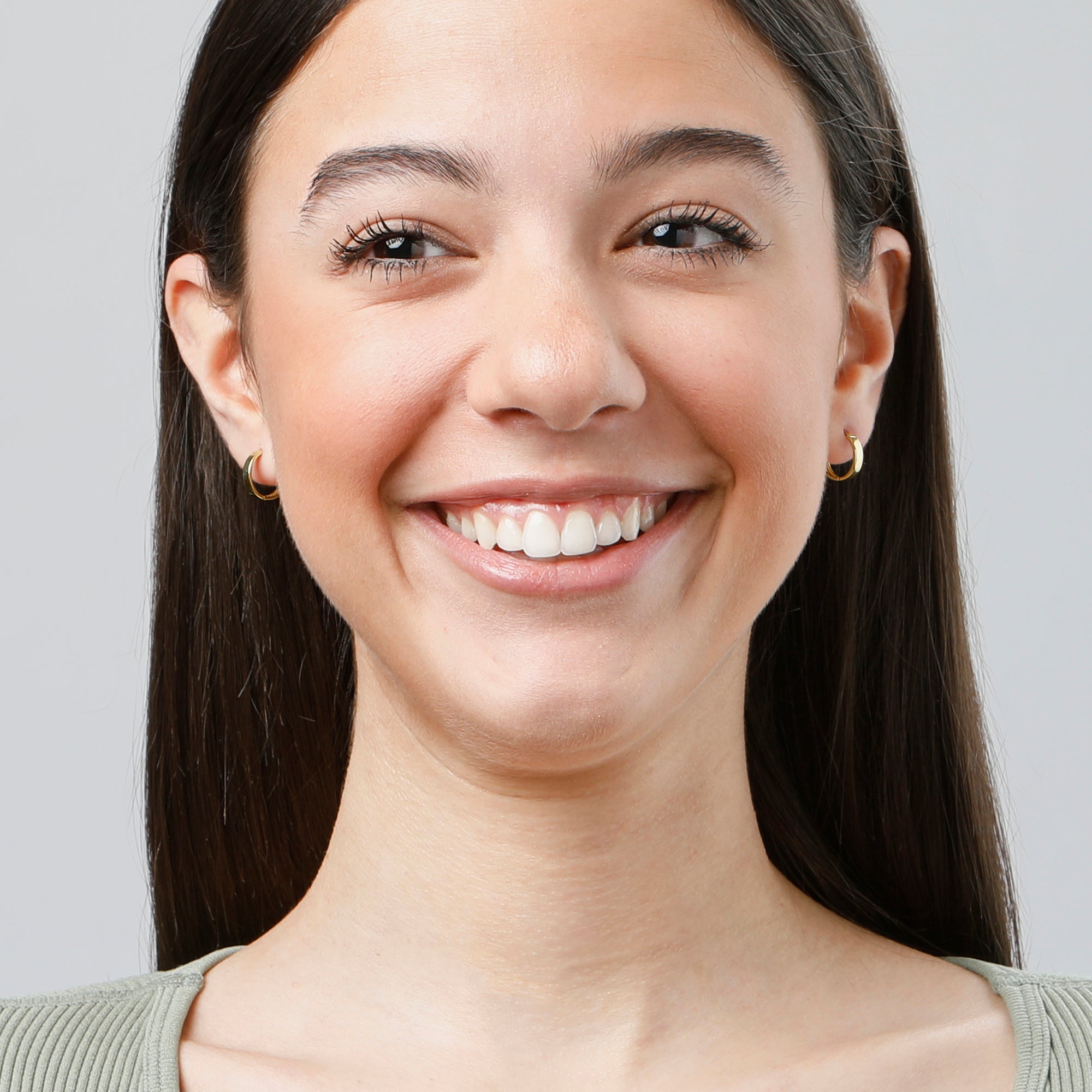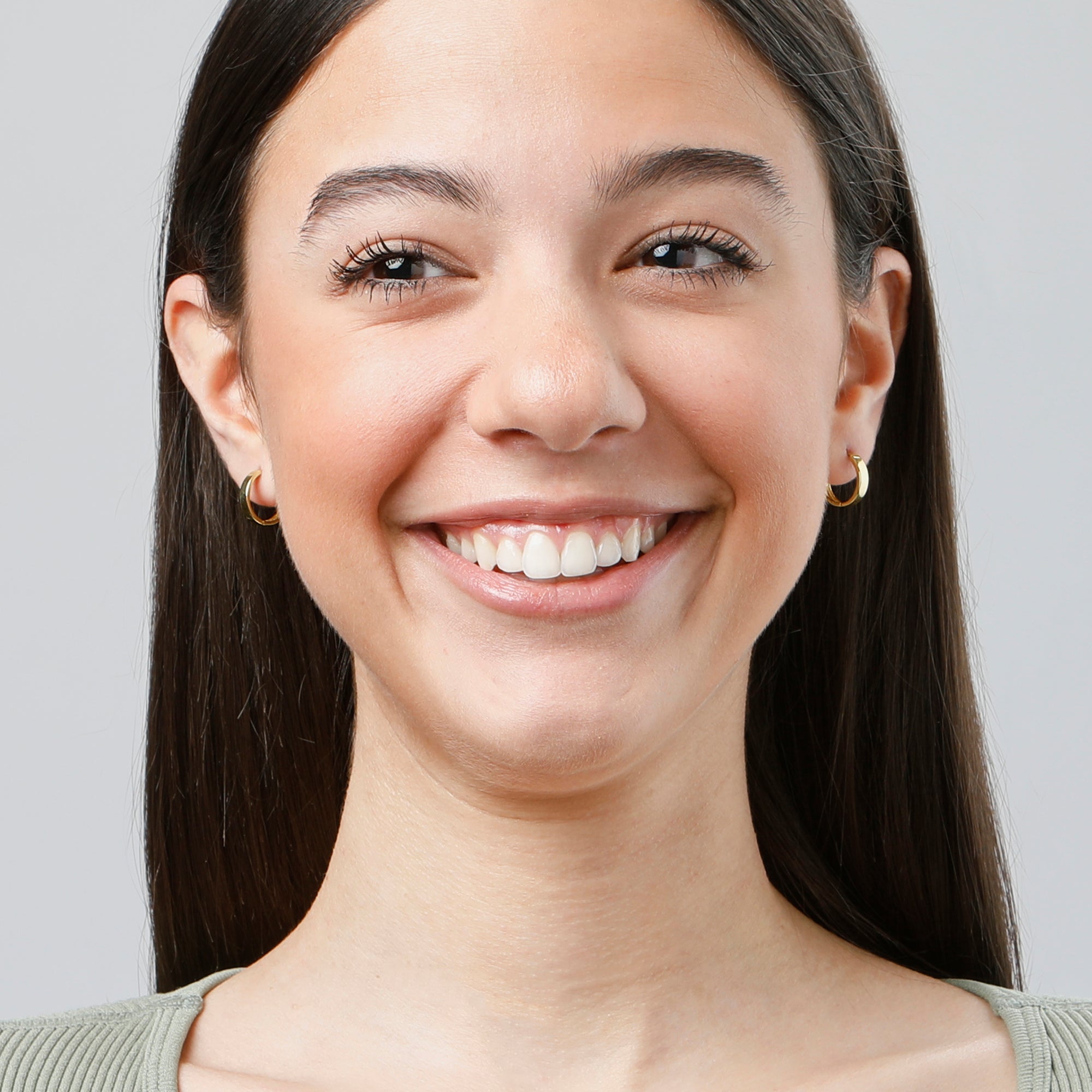 Our Round the Clock Flat Mini Huggies are designed for continuous wear, with a lightweight fit and solid 14k build that's waterproof, sweat-resistant and shower-safe. A seamless essential you’ll never want (or need) to take off.