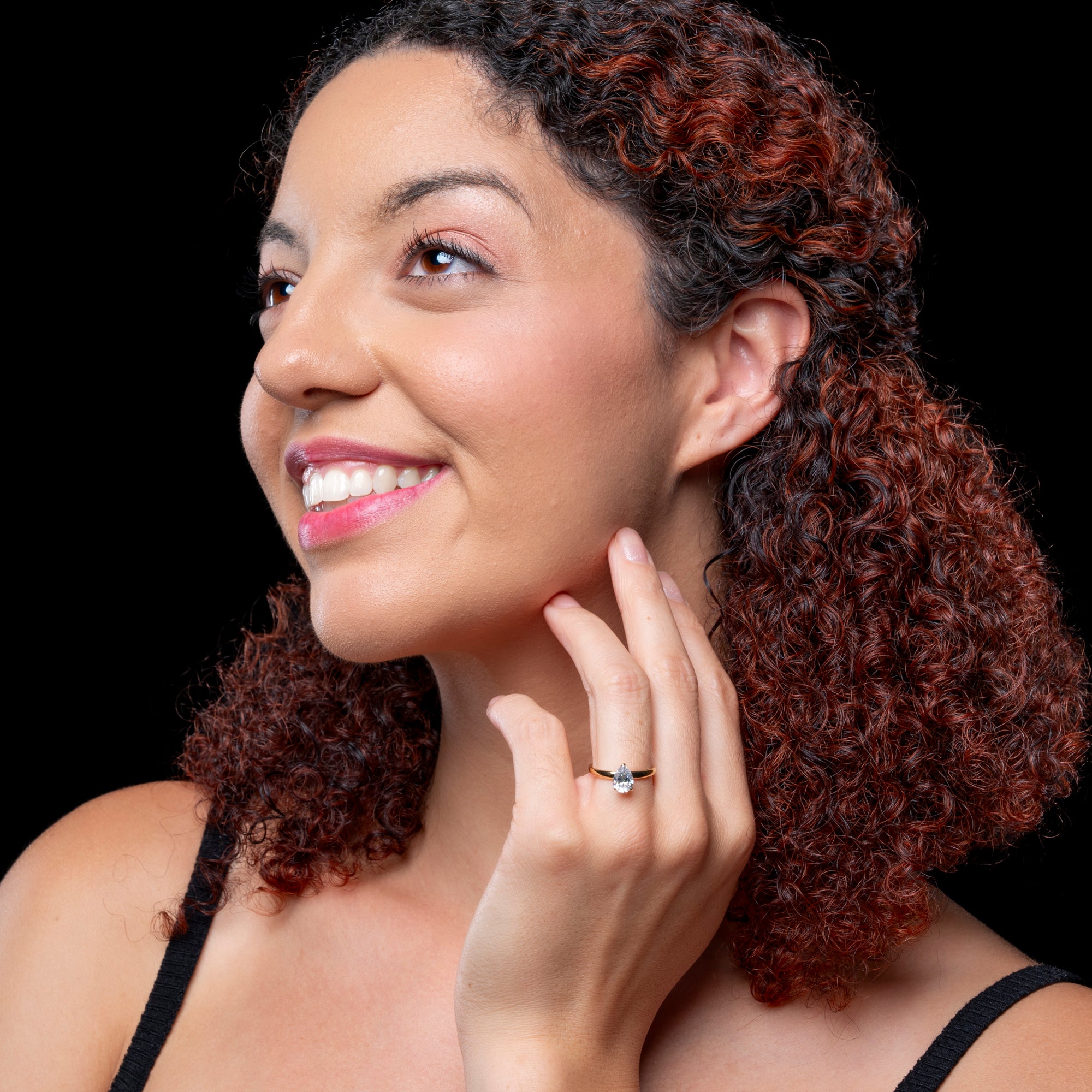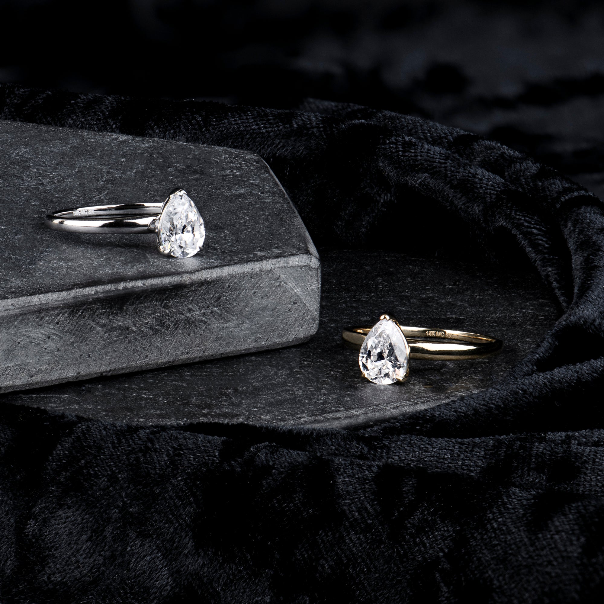 Not afraid to stand out, never one to settle. With its distinctive shape and 1.7ct sparkle, the pear solitaire makes her love story one of a kind.