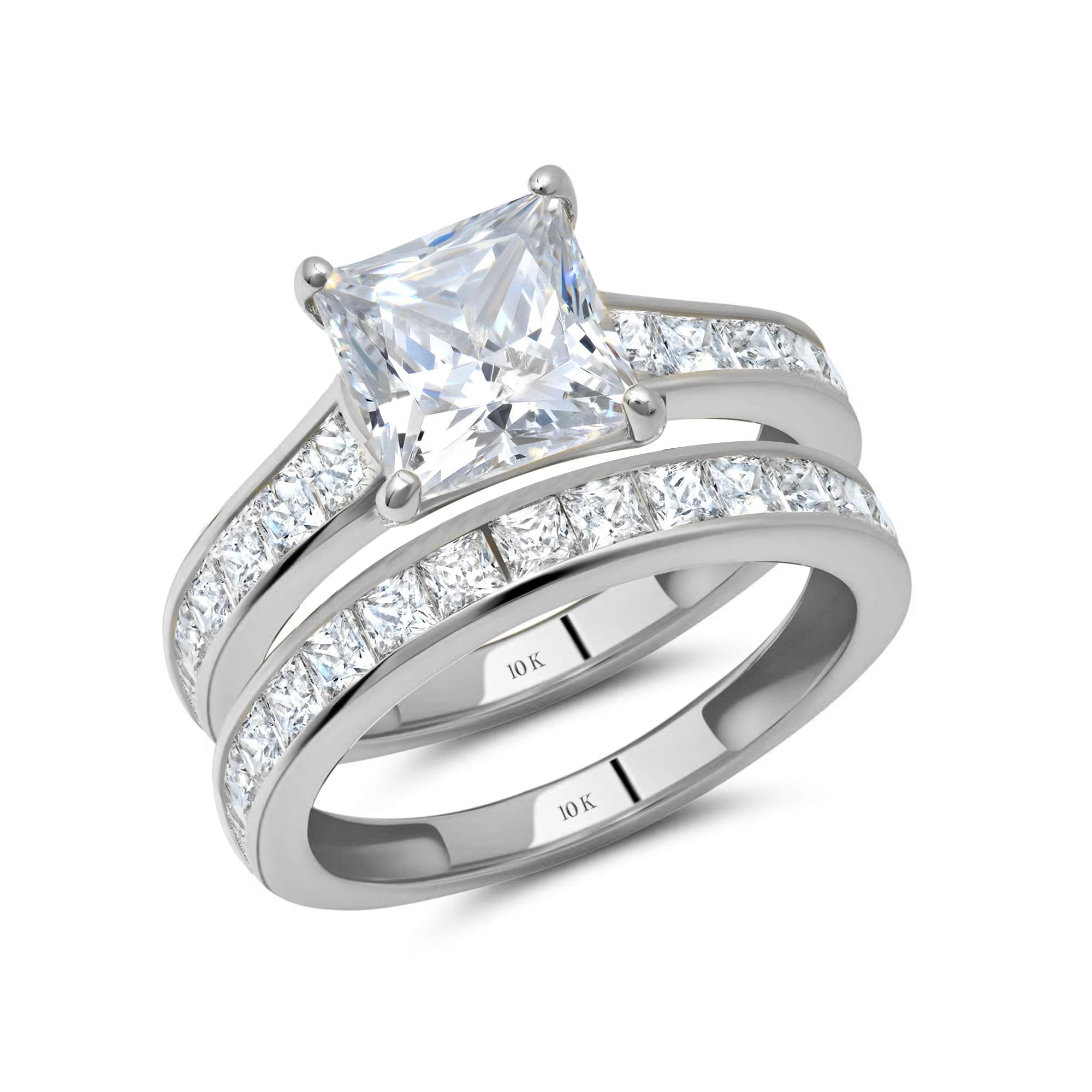 3 Carat Simulated Diamond Ring and Wedding Band Set in 10k Gold