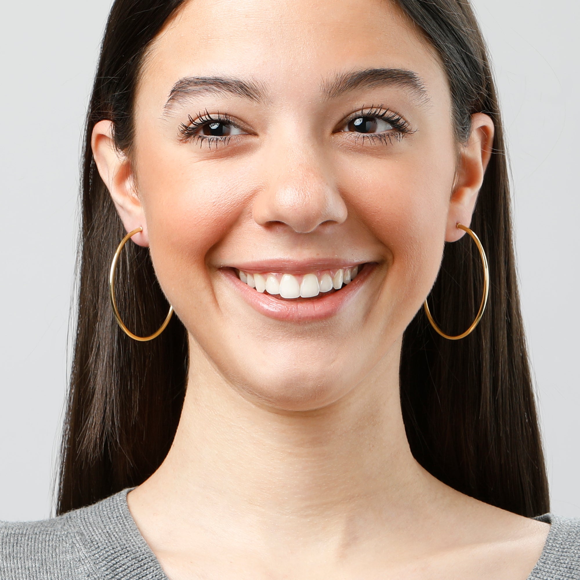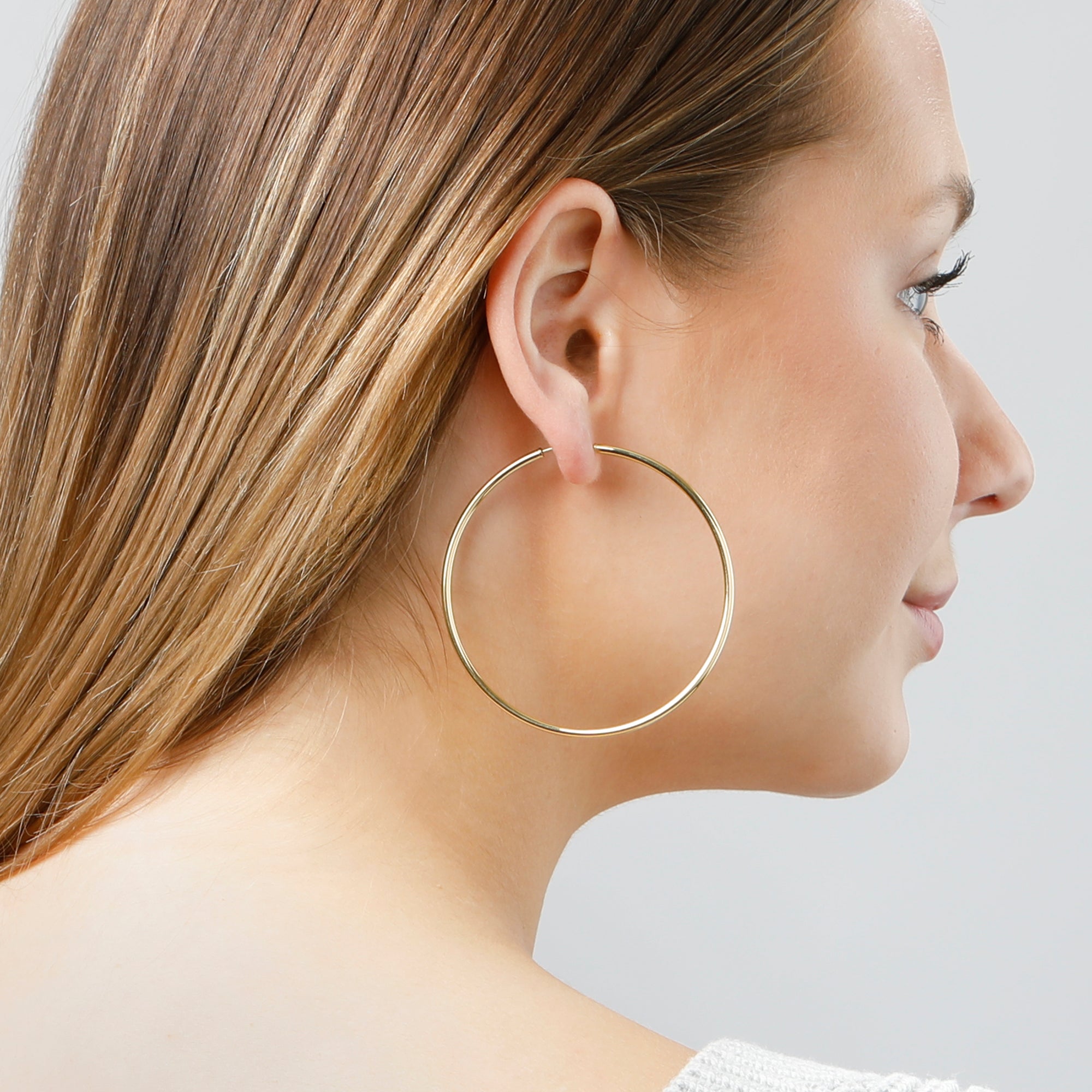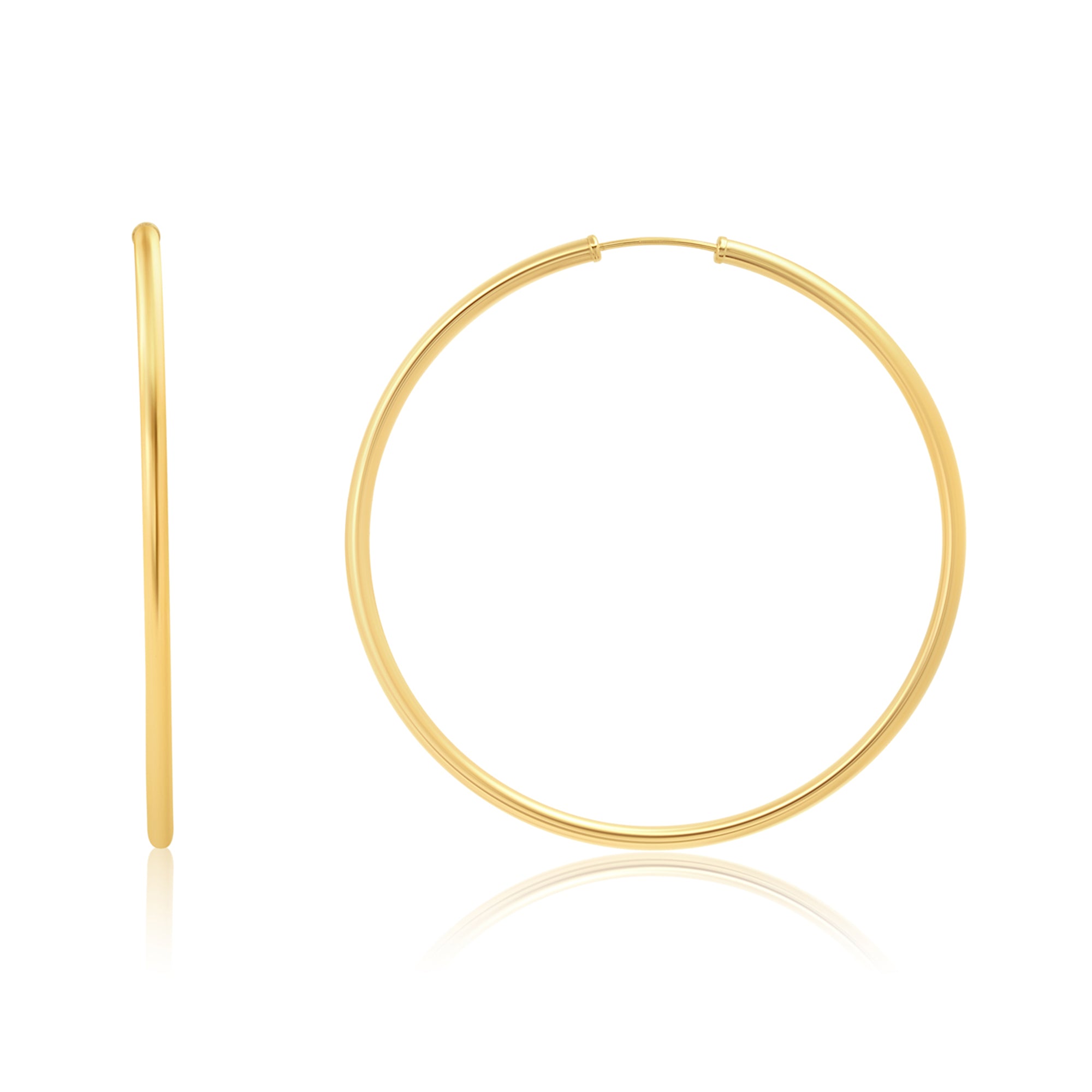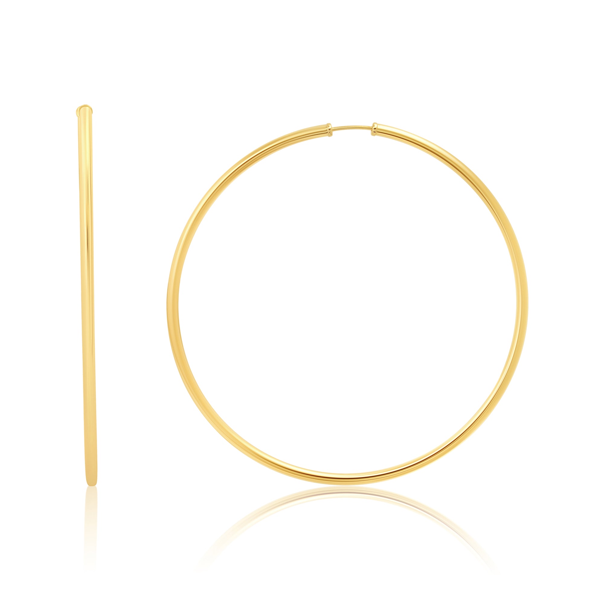 Big on style, light on feel. These 2mm continuous hoops in 14K yellow gold offer bold sizes, creating a statement look. Lightweight by design, they deliver impact without ever compromising on comfort.