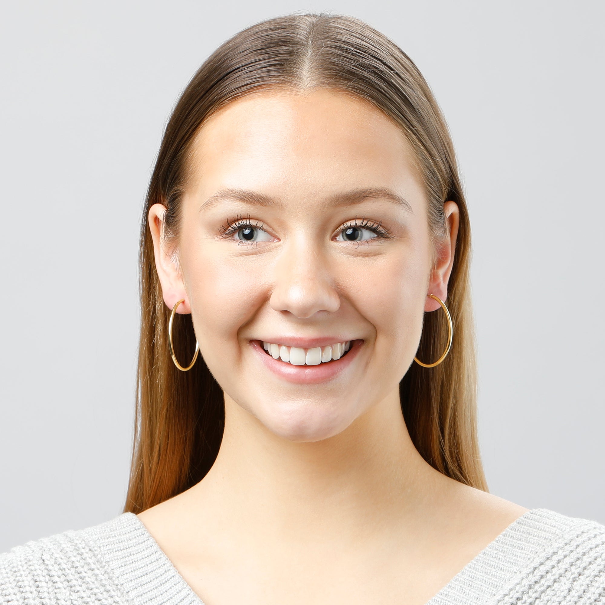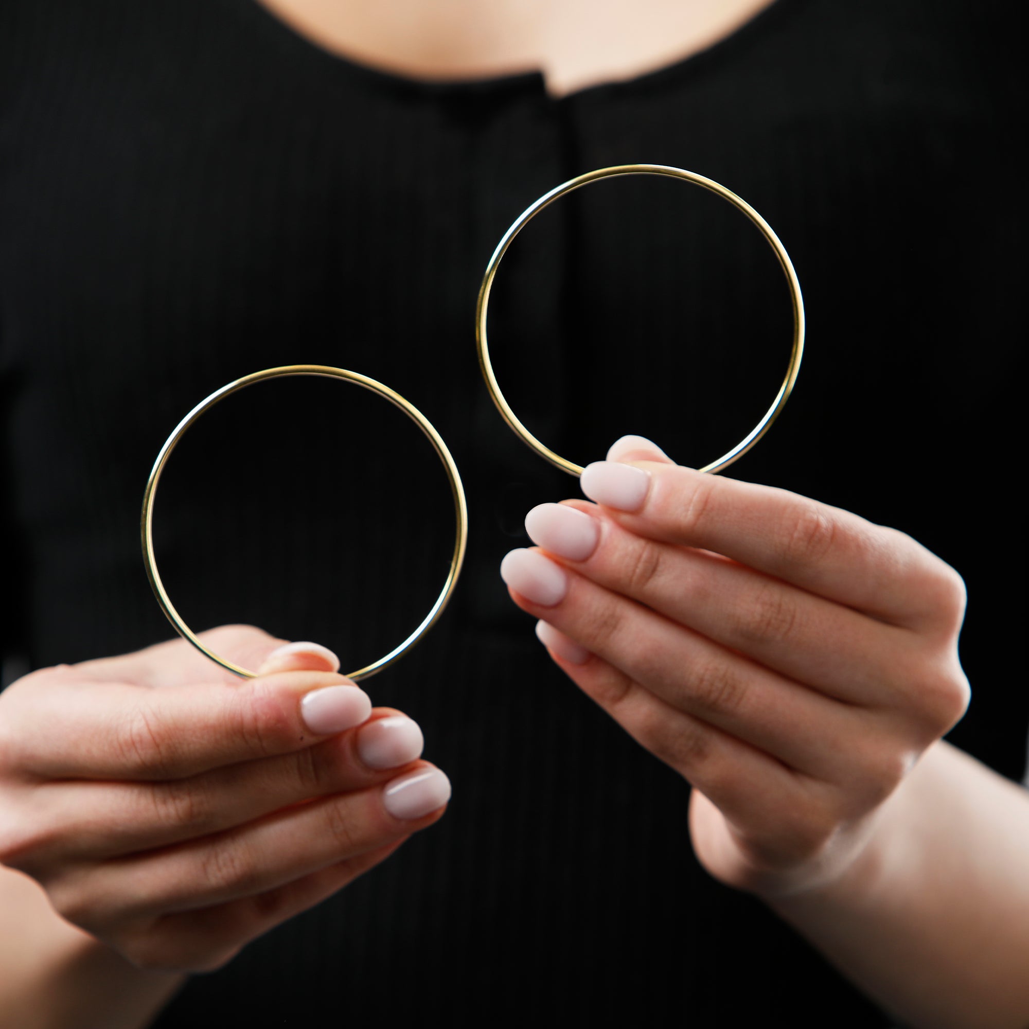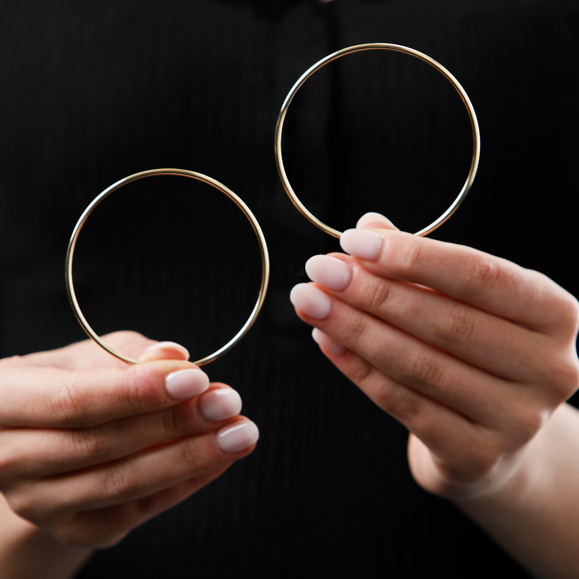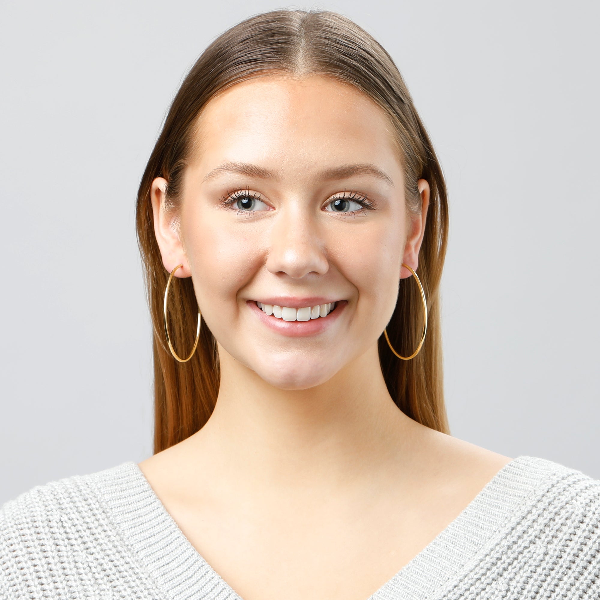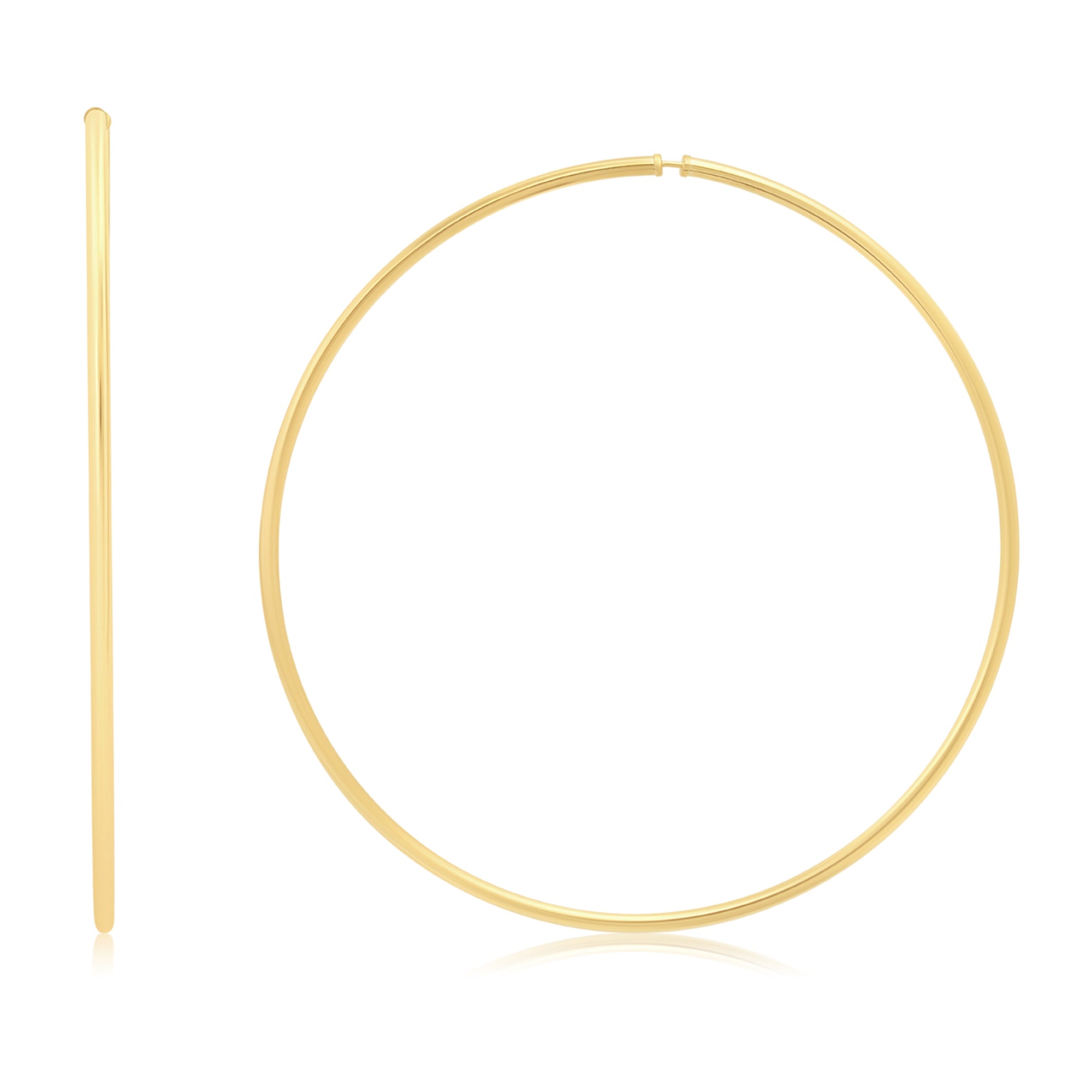 Big on style, light on feel. These 2mm continuous hoops in 14K yellow gold offer bold sizes, creating a statement look. Lightweight by design, they deliver impact without ever compromising on comfort.