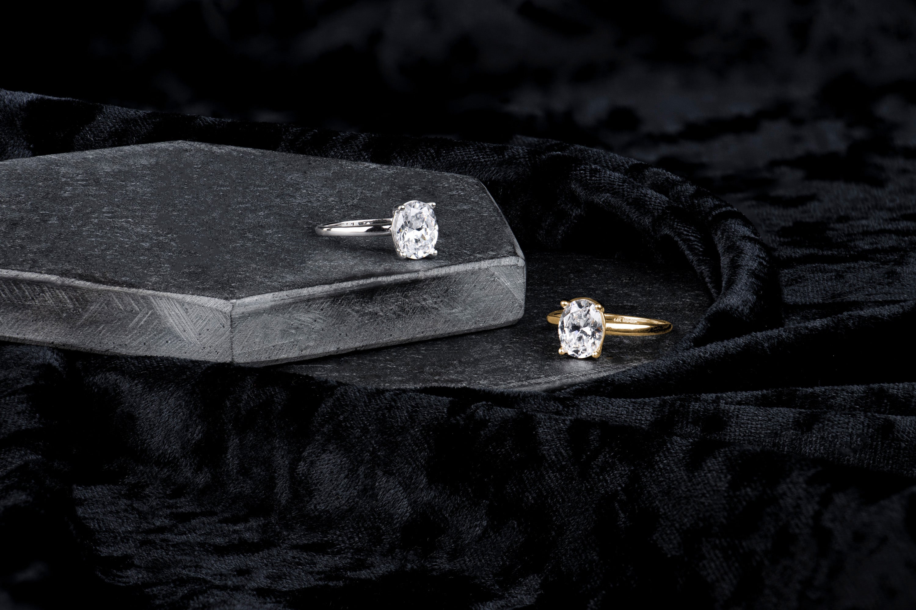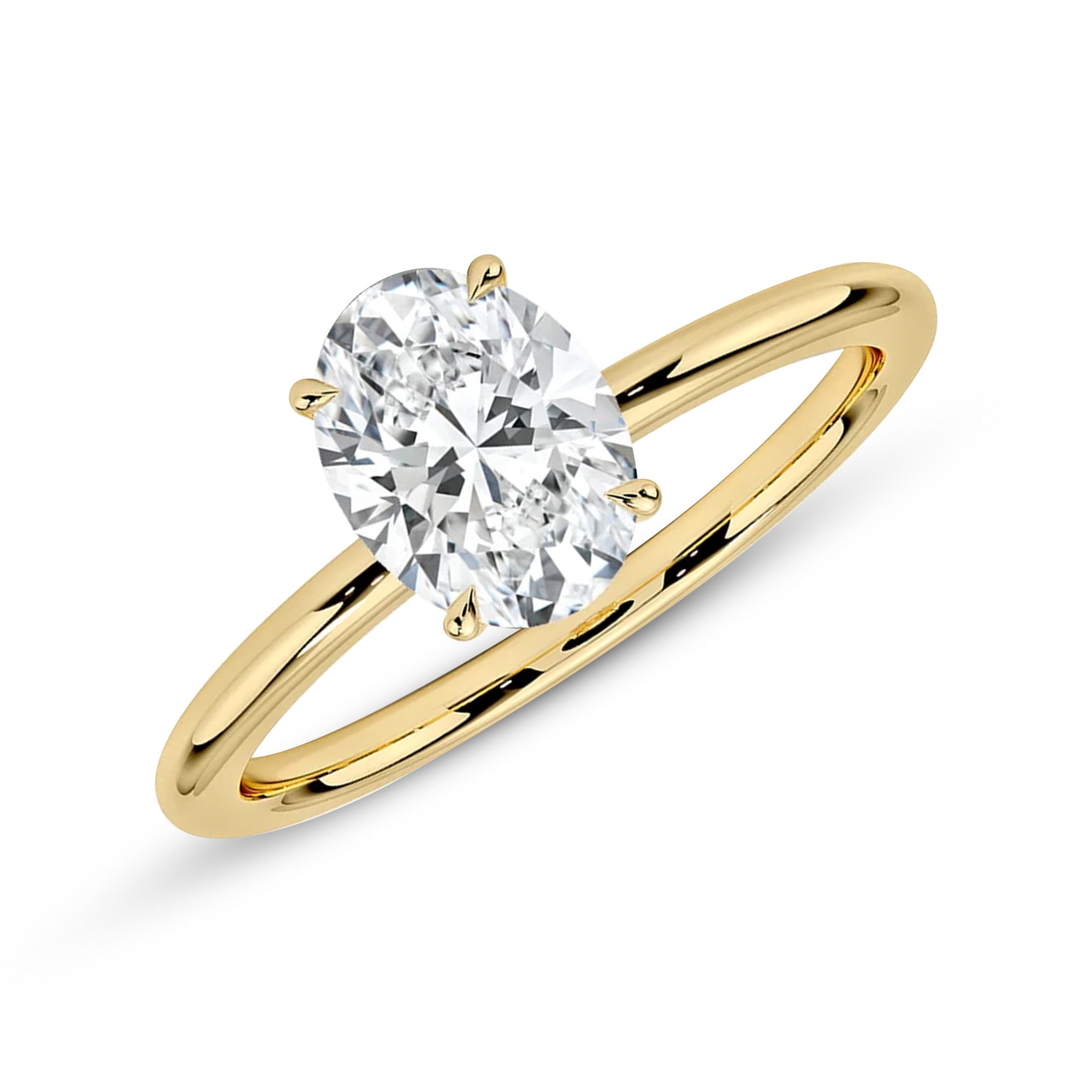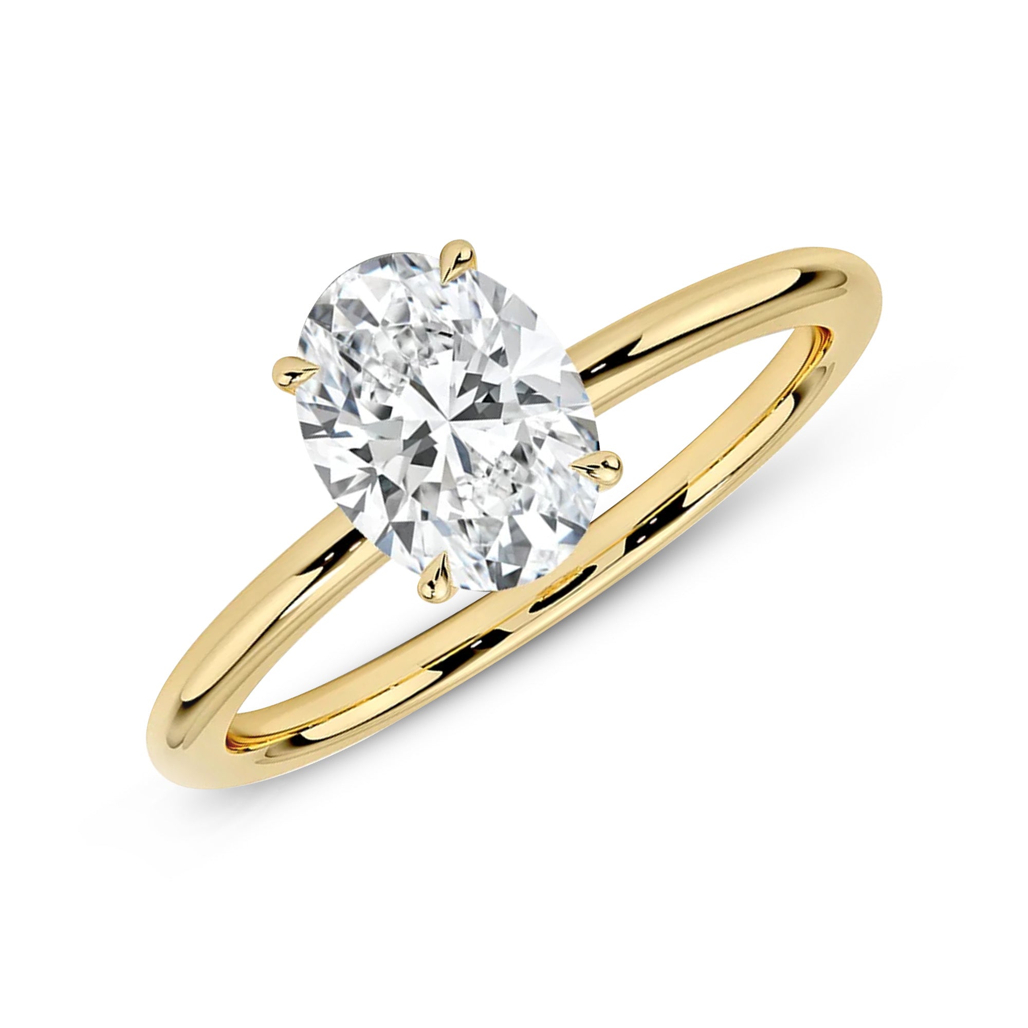 A love story set in 14k gold. This 3ct cubic zirconia oval solitaire engagement ring glimmers with timeless beauty on a sleek 2mm band, making every “yes” unforgettable.