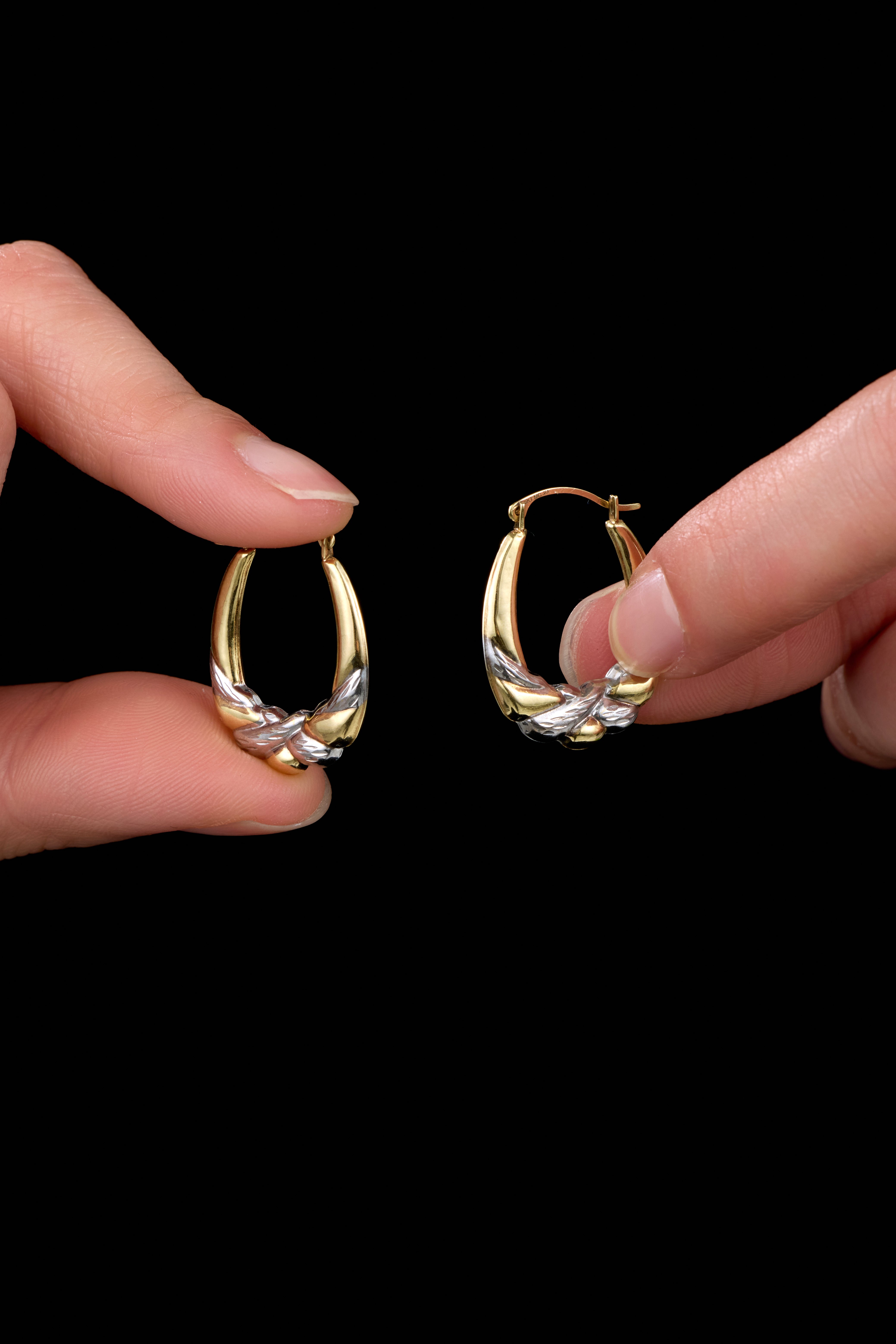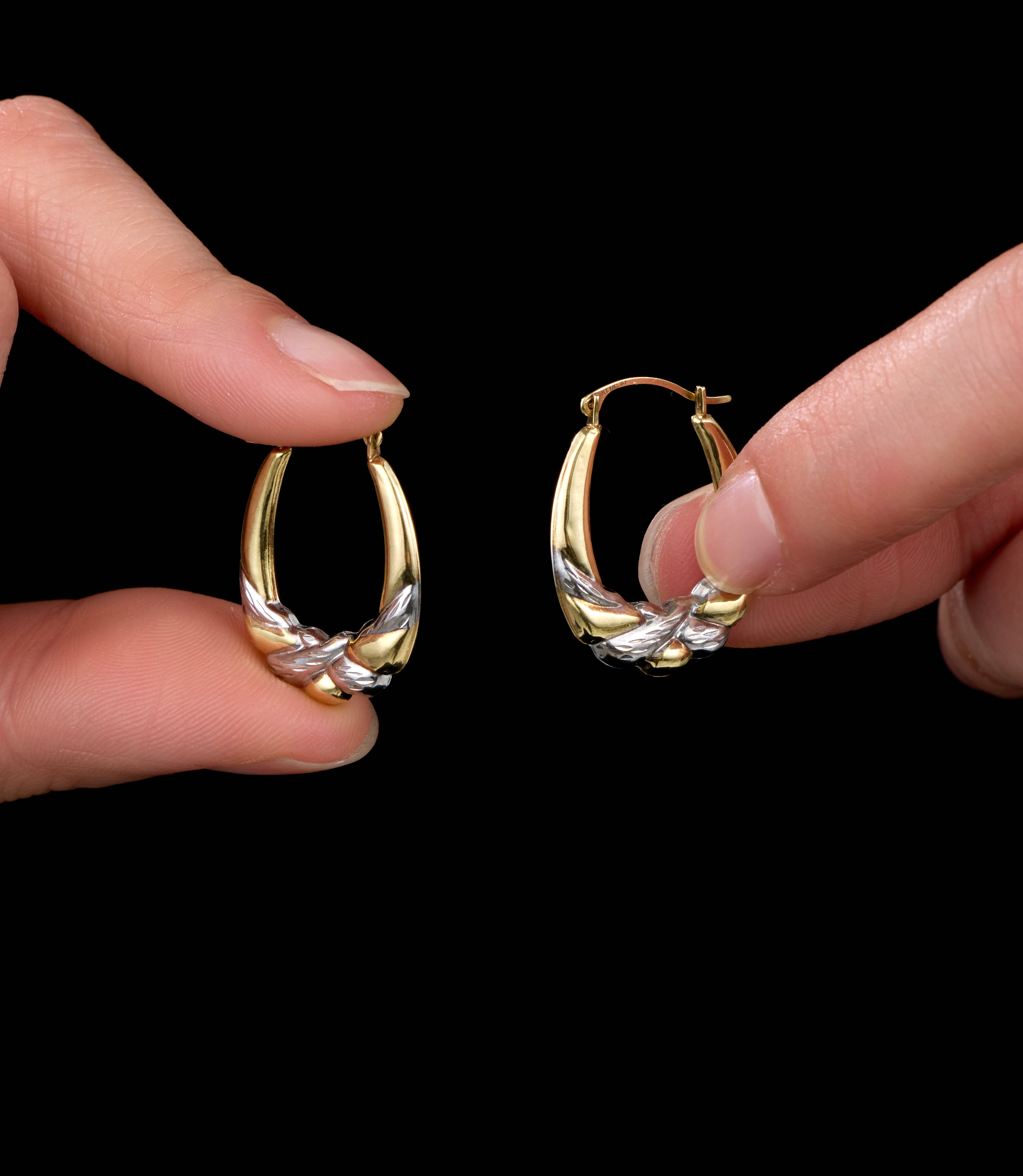 Clean lines, two tones, effortless shine. The Embrace Hoops in 14K gold and 20mm length are a lightweight essential made to elevate every day.