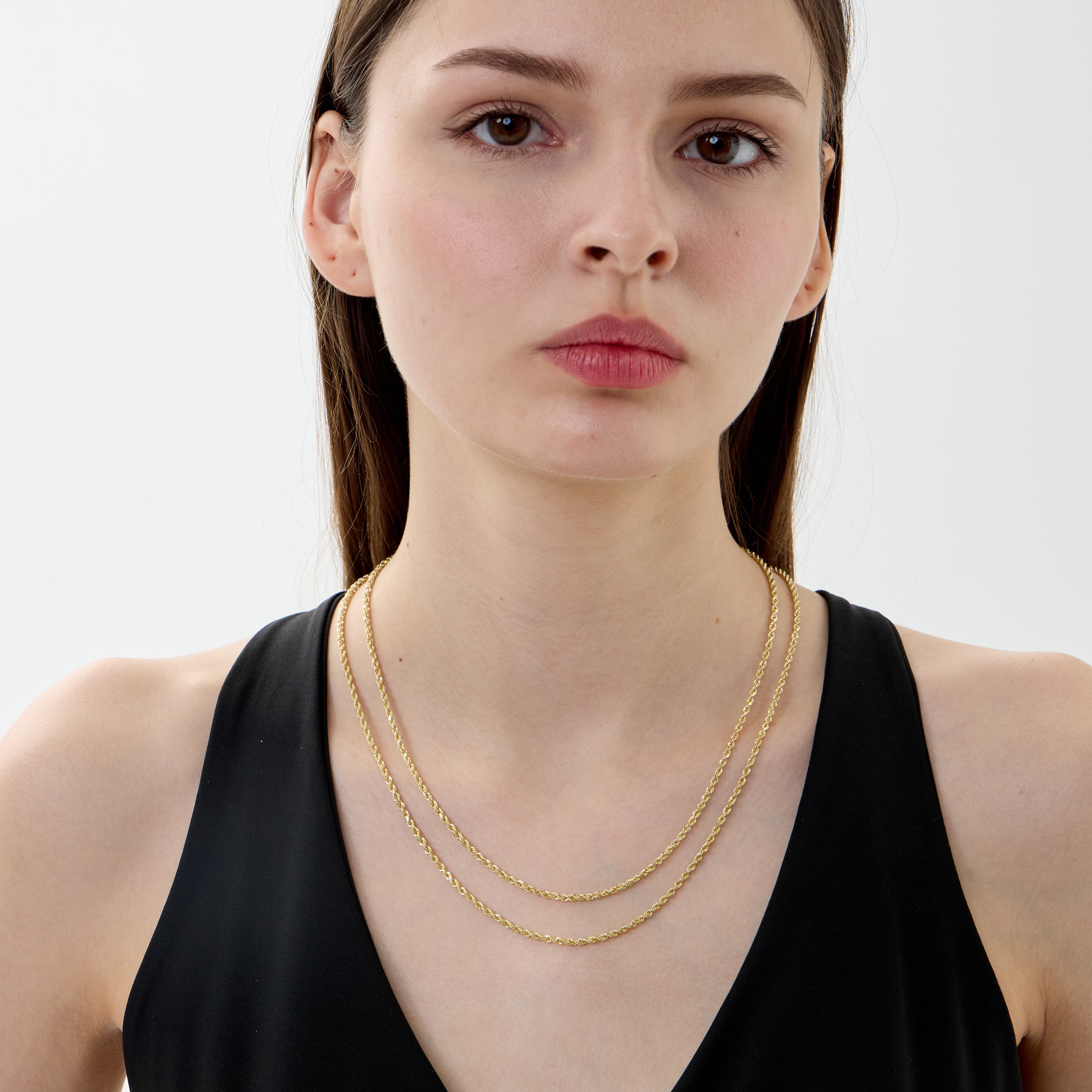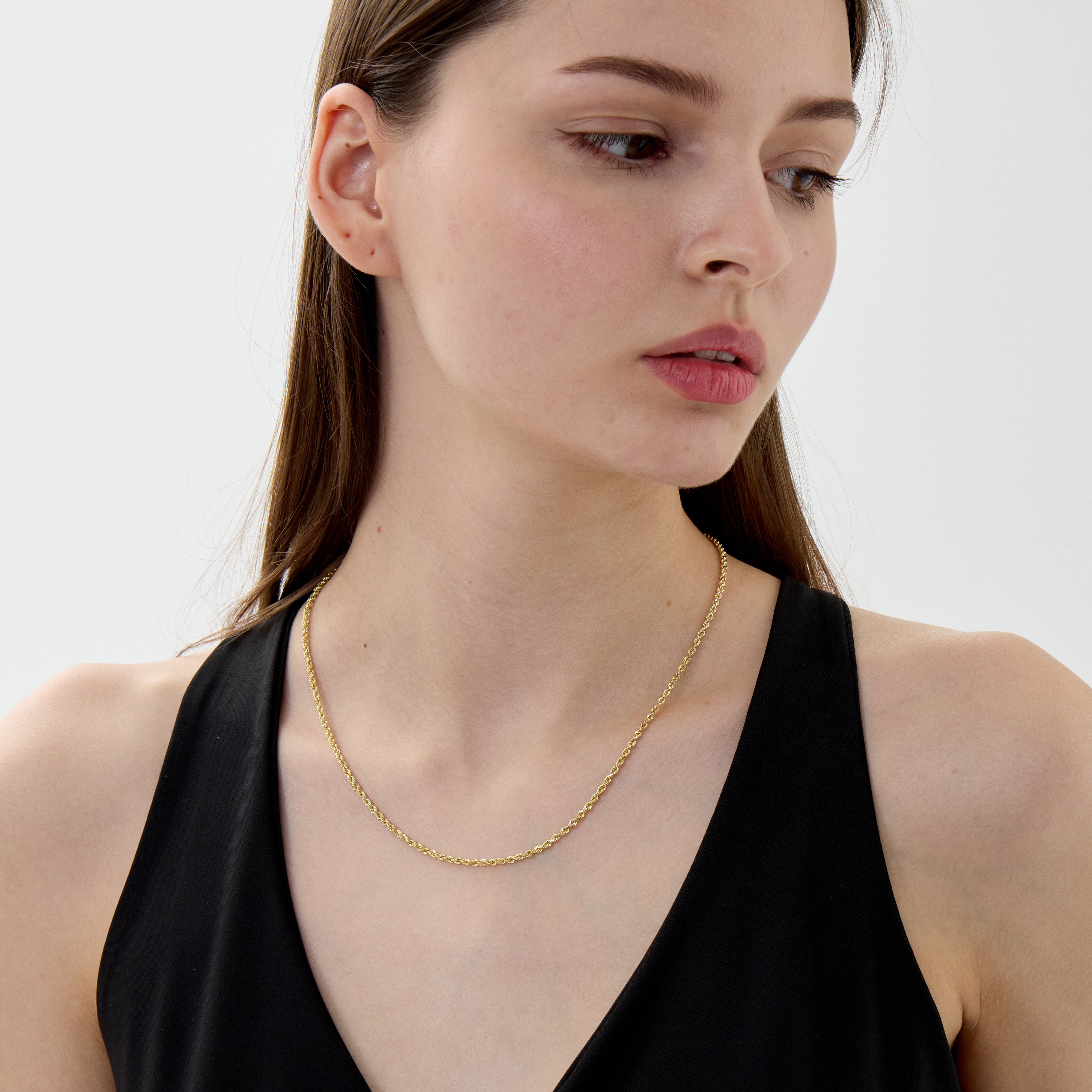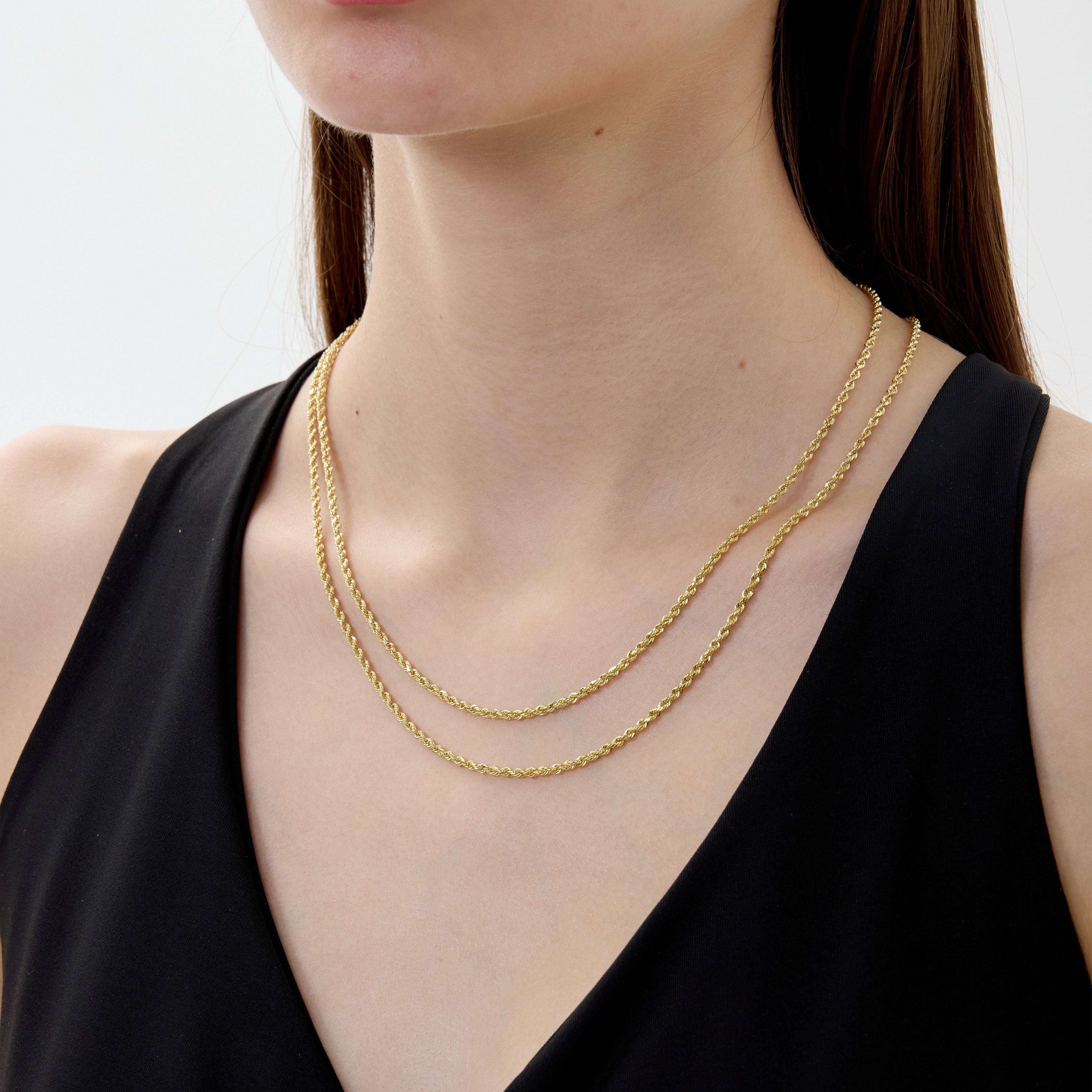 A twist on the timeless. The Cortona chain features a 2mm diamond-cut rope design in solid 14k gold — textured, unisex, and ready to tie every look together.