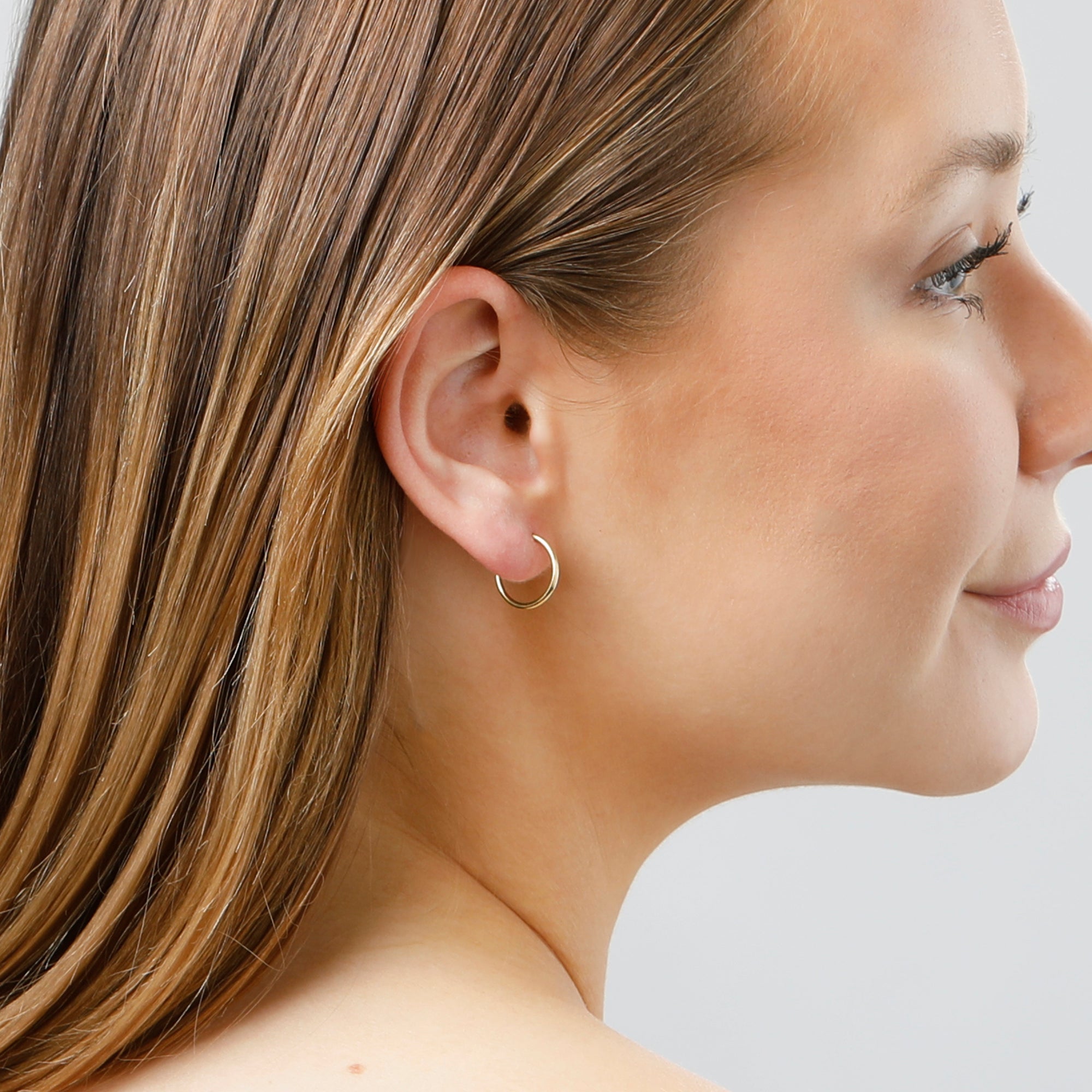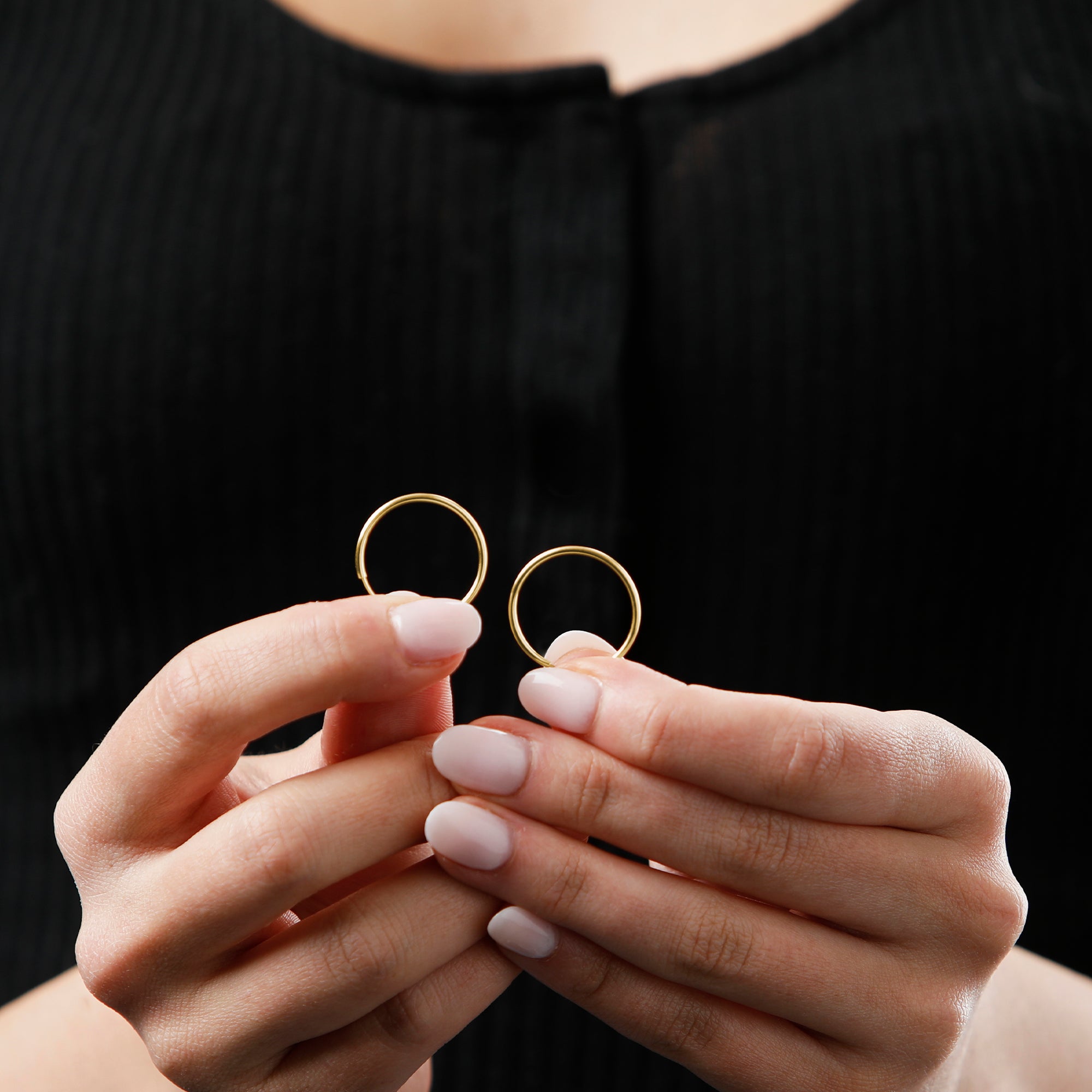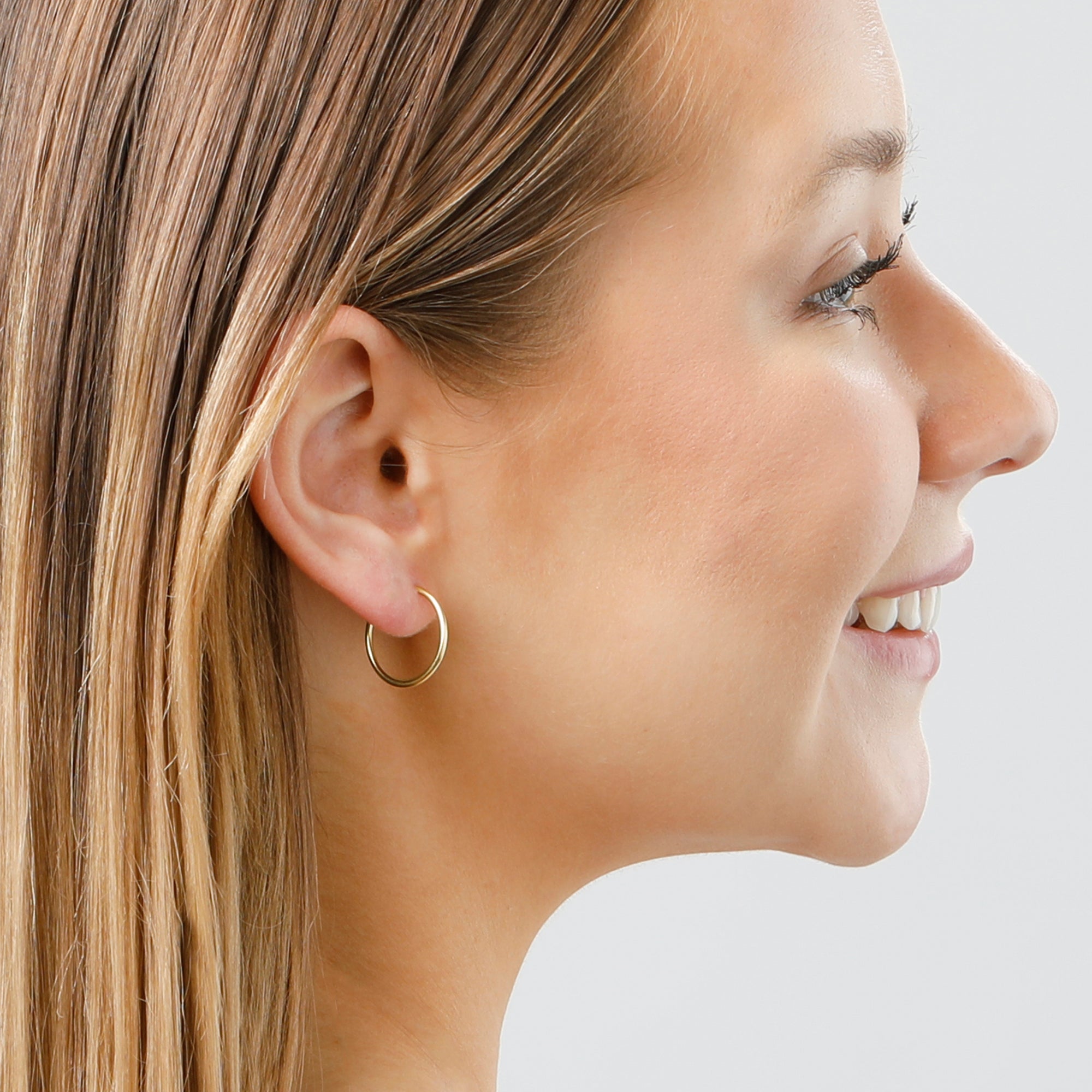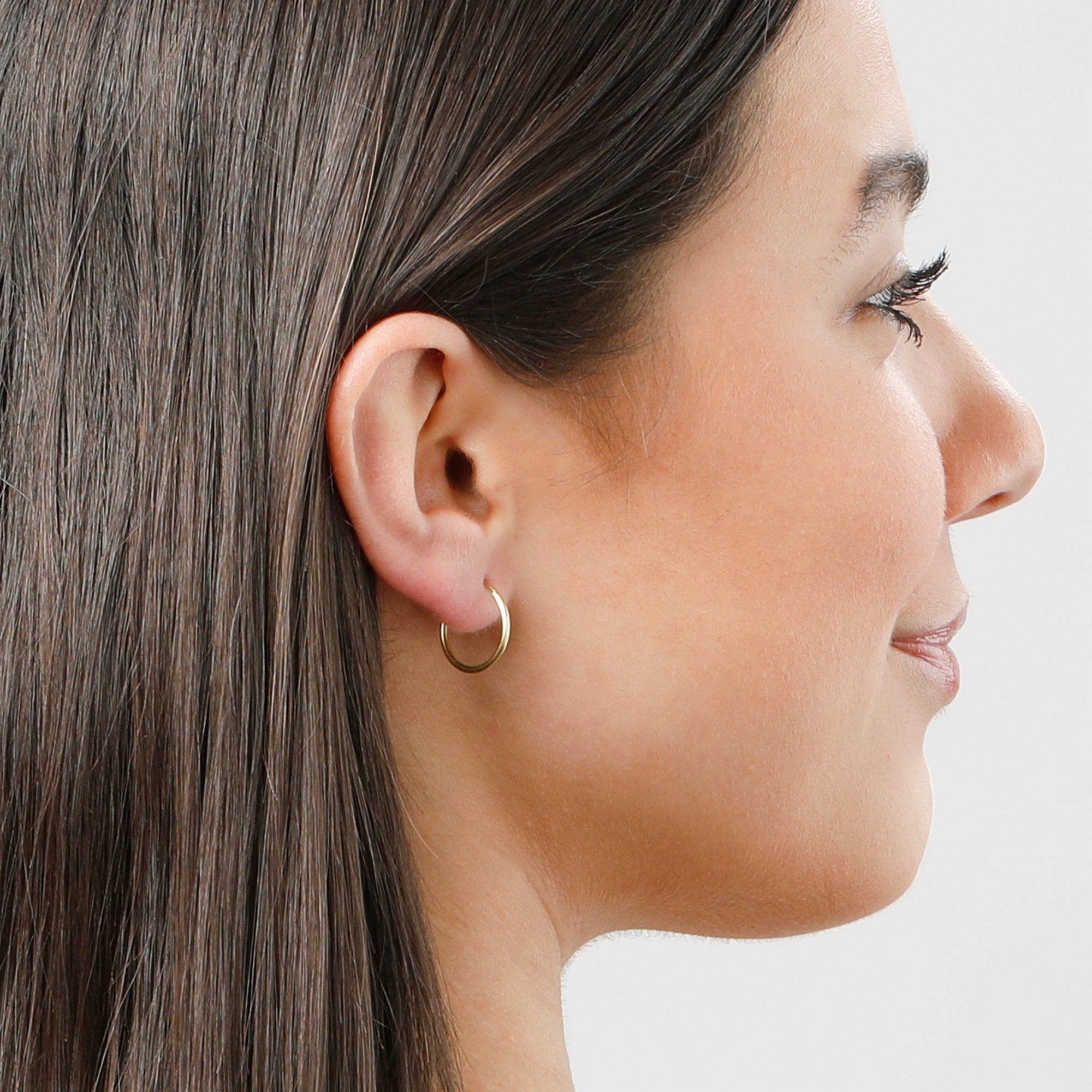 Effortless minimalism. These flexible 1.5mm continuous hoops in 14K yellow gold create a seamless finish offering a lightweight fit that feels barely there. A true jewelry essential — timeless, versatile, and made to move with you.