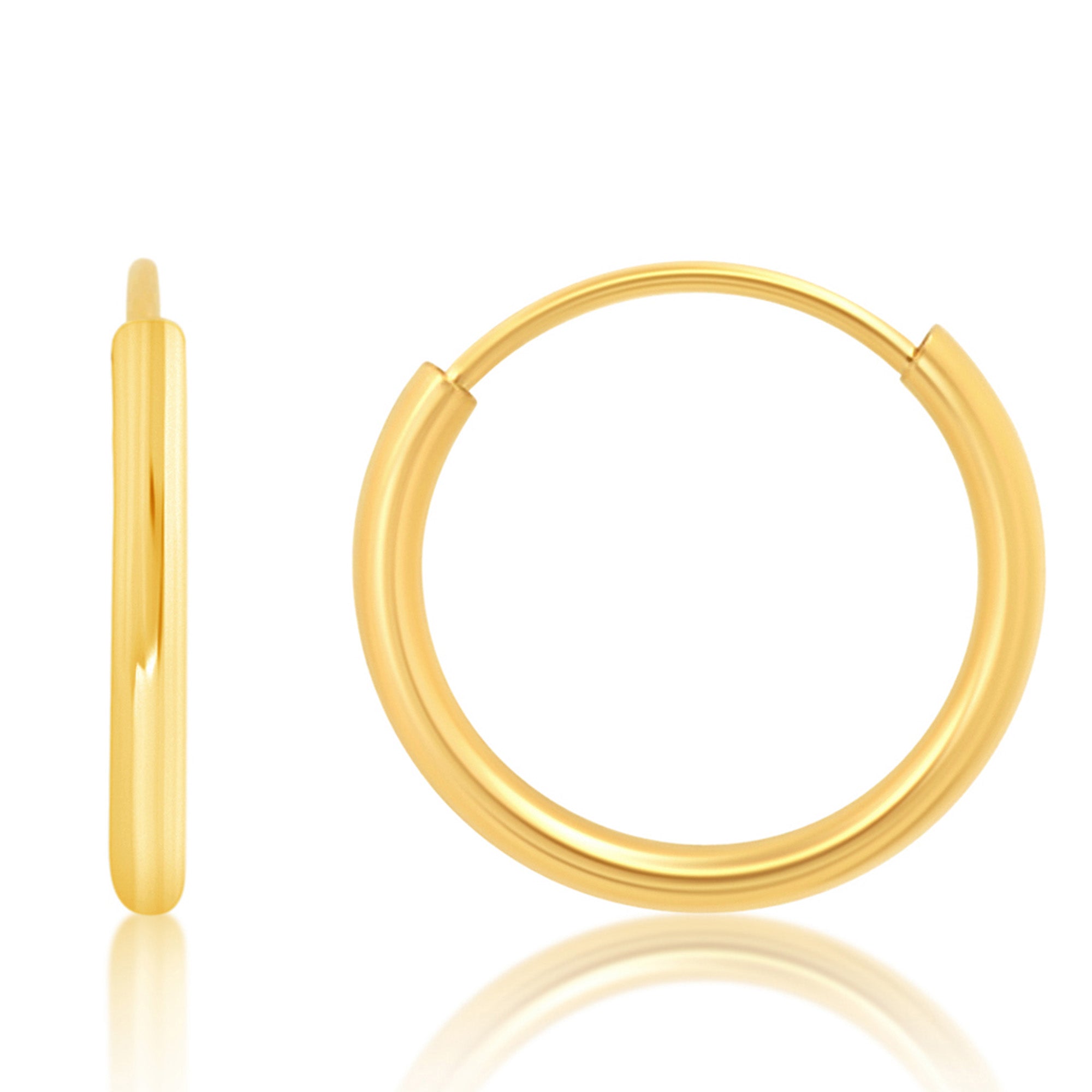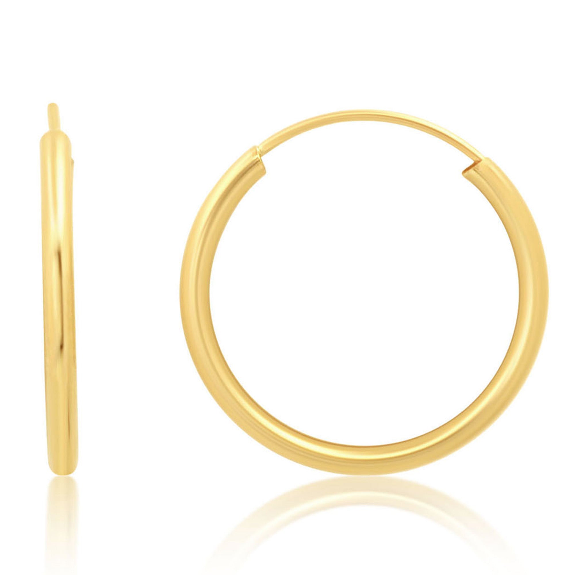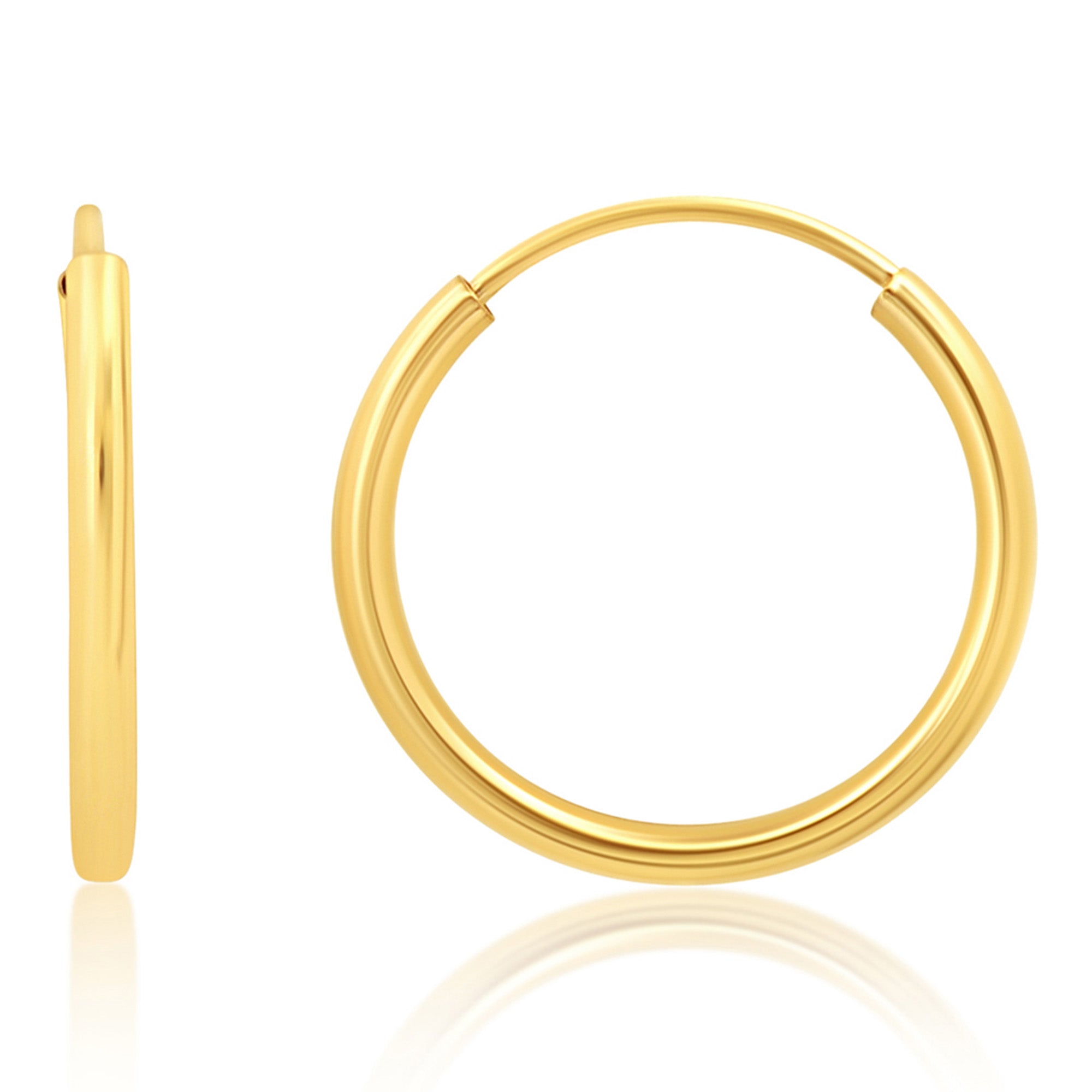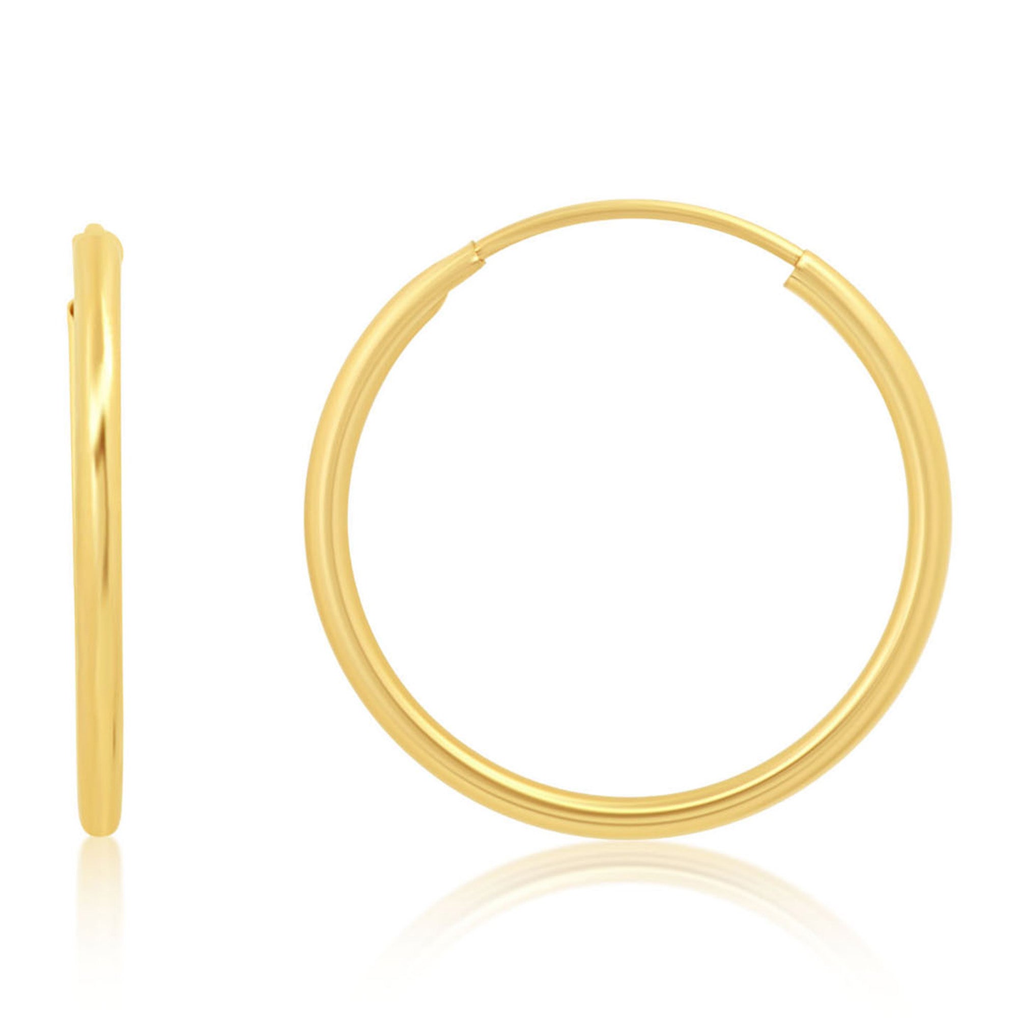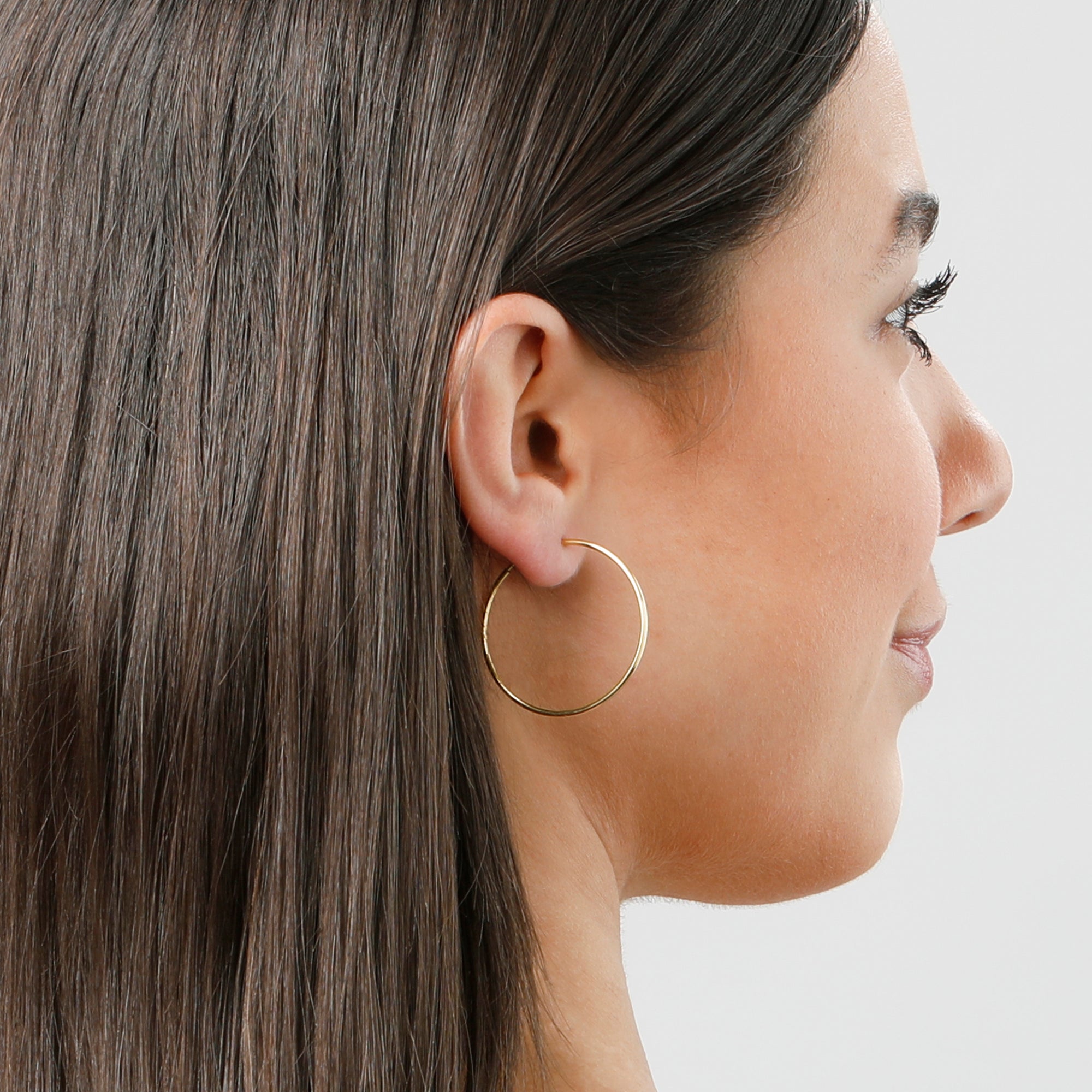 Effortless minimalism. These flexible 1.5mm continuous hoops in 14K yellow gold create a seamless finish offering a lightweight fit that feels barely there. A true jewelry essential — timeless, versatile, and made to move with you.
