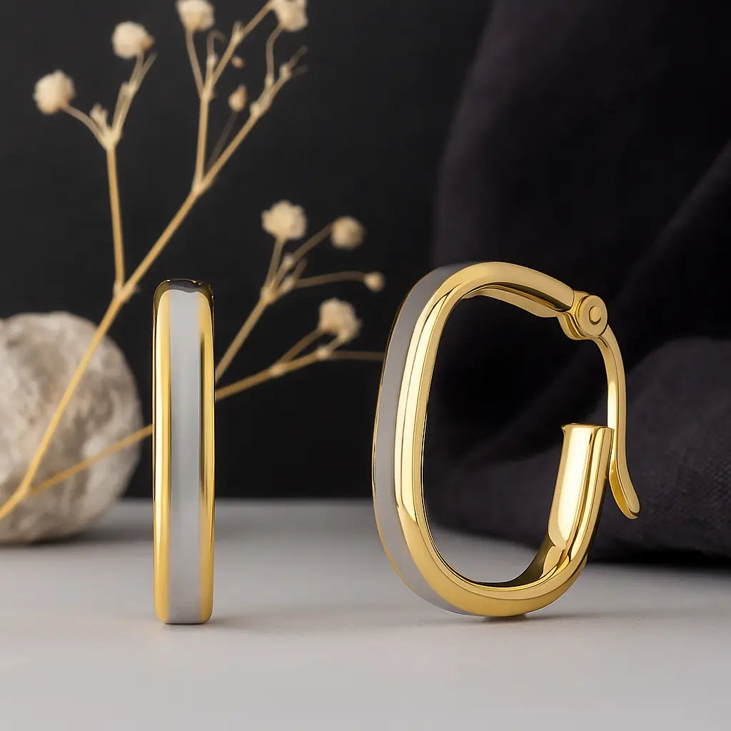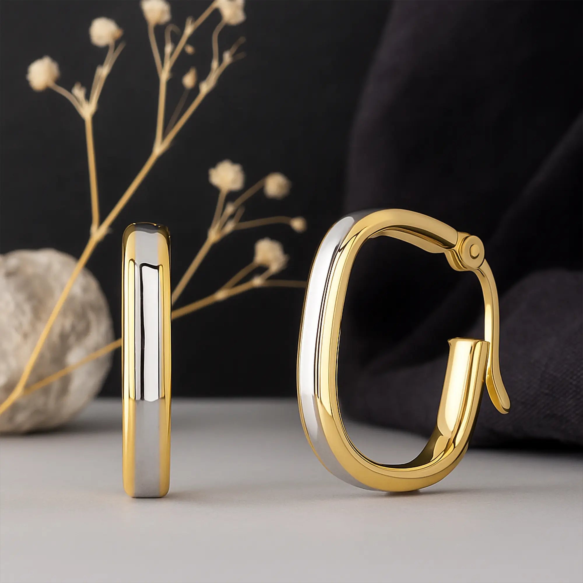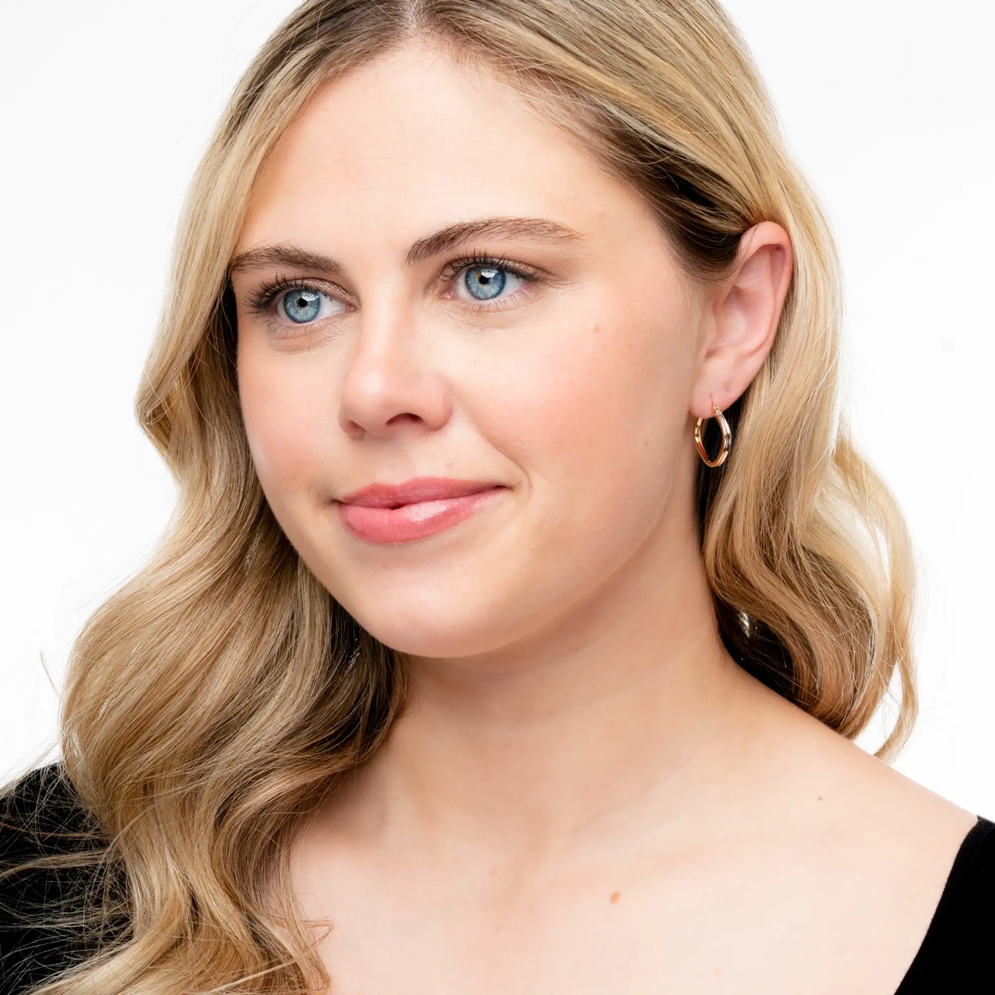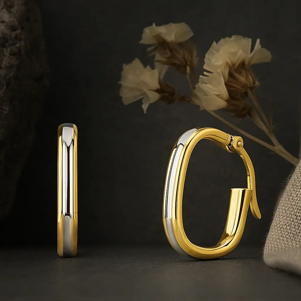 Classic but edgy. The Edge Hoops in 14K two-tone gold feature a 12mm square silhouette that’s lightweight, comfortable, and polished enough for every day.
