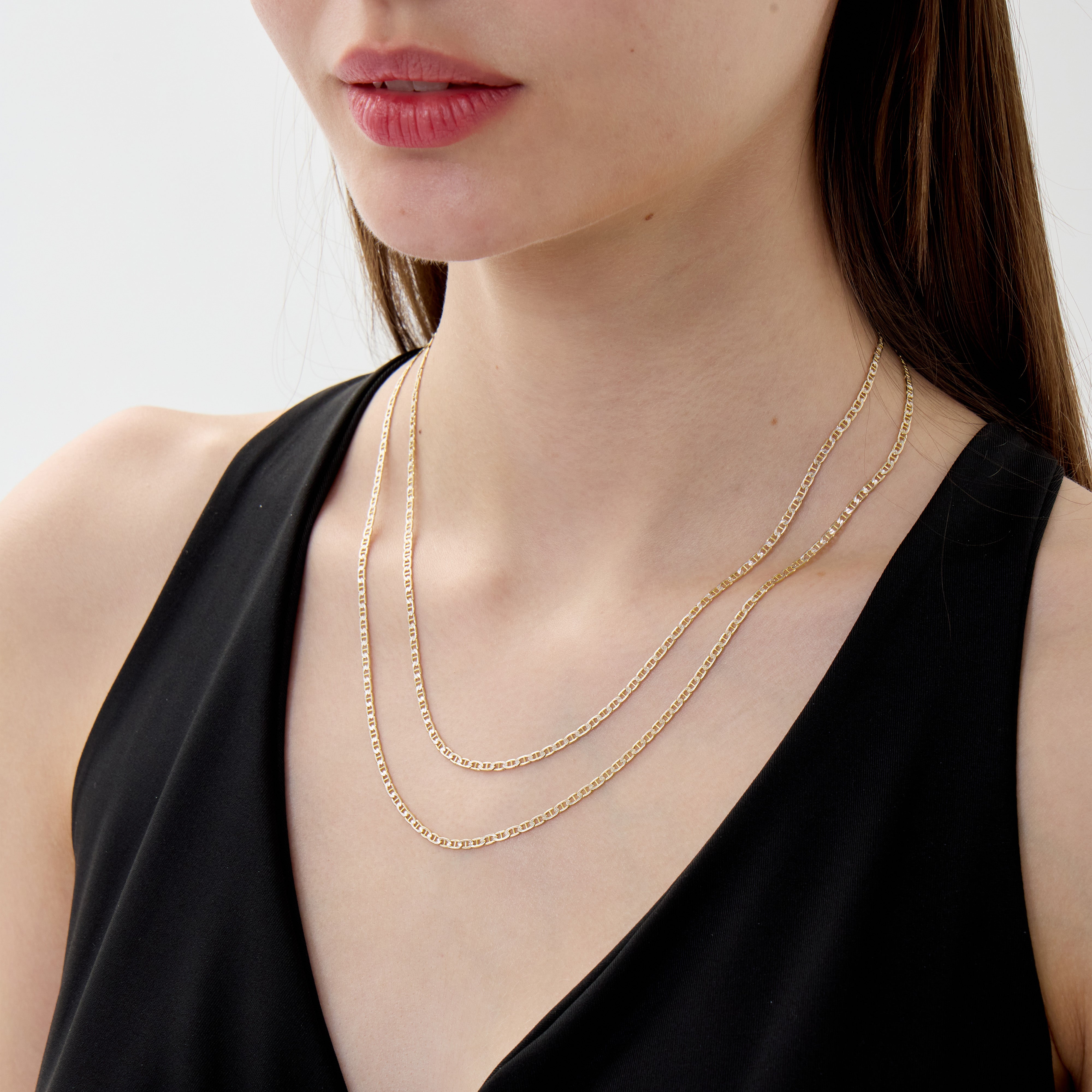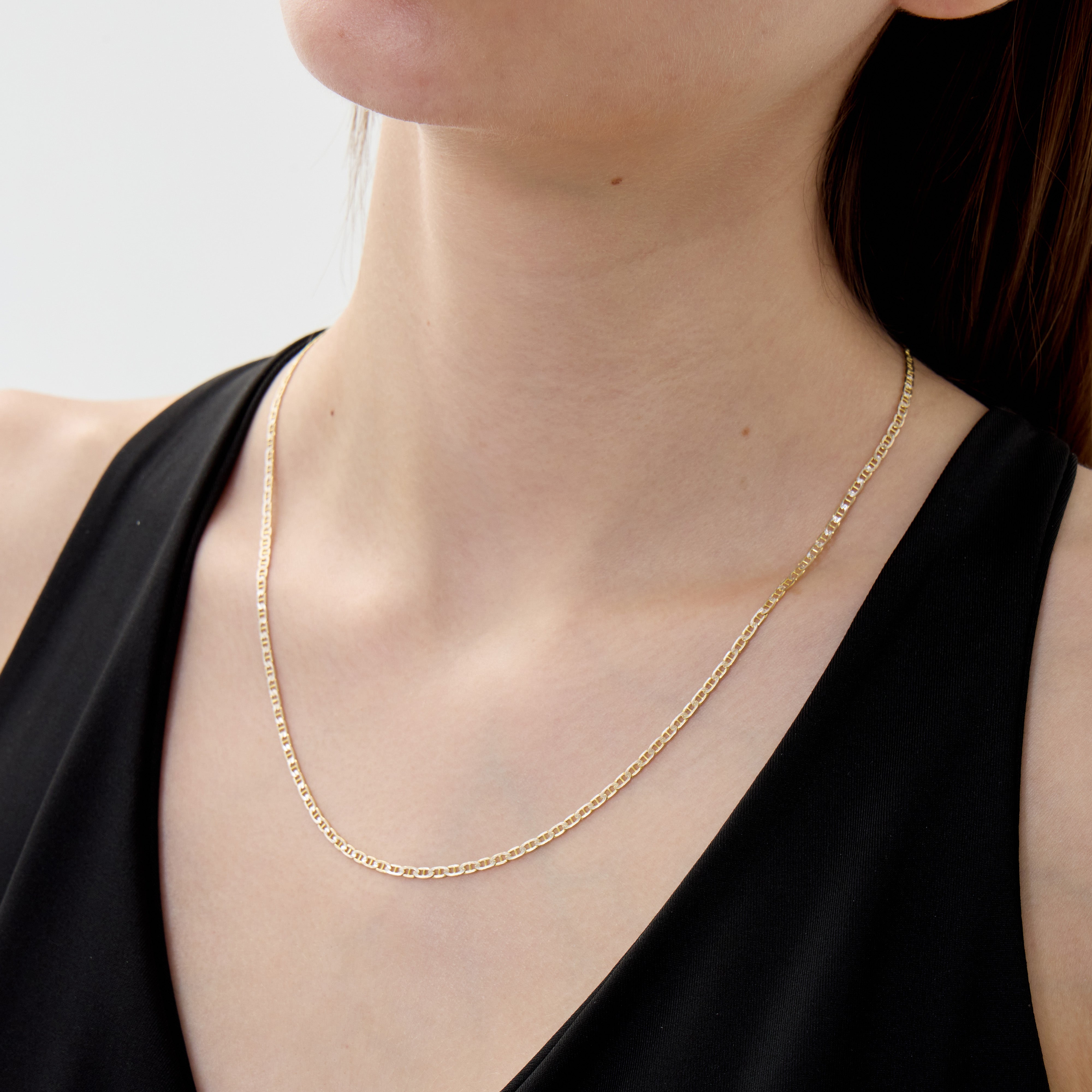 A bold nod to classic Italian design, the Siena chain blends soft contrast with sharp structure in a 2.3mm Gucci-style mariner link. Crafted in solid 14k gold, it’s unisex, polished, and built to stand out.